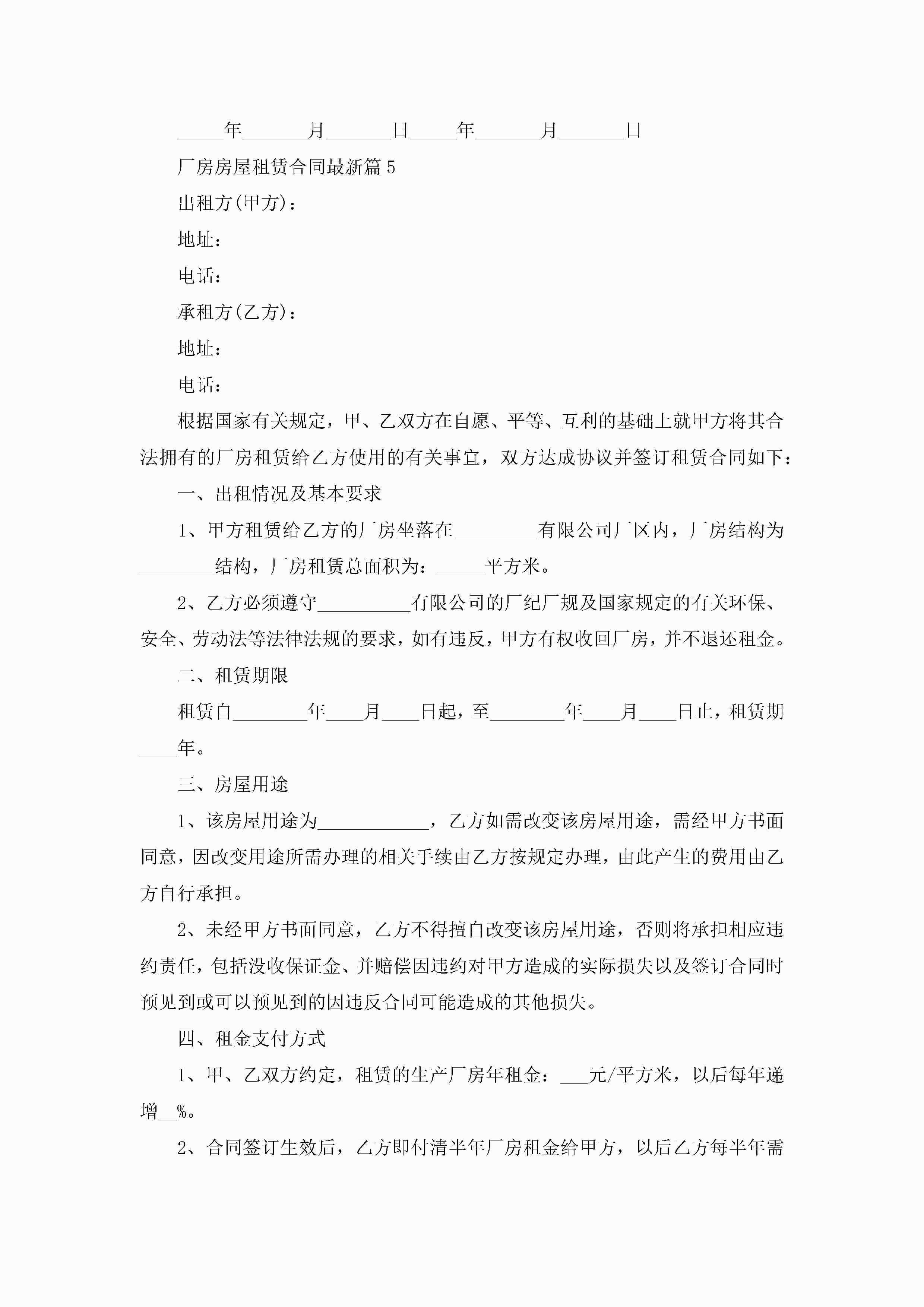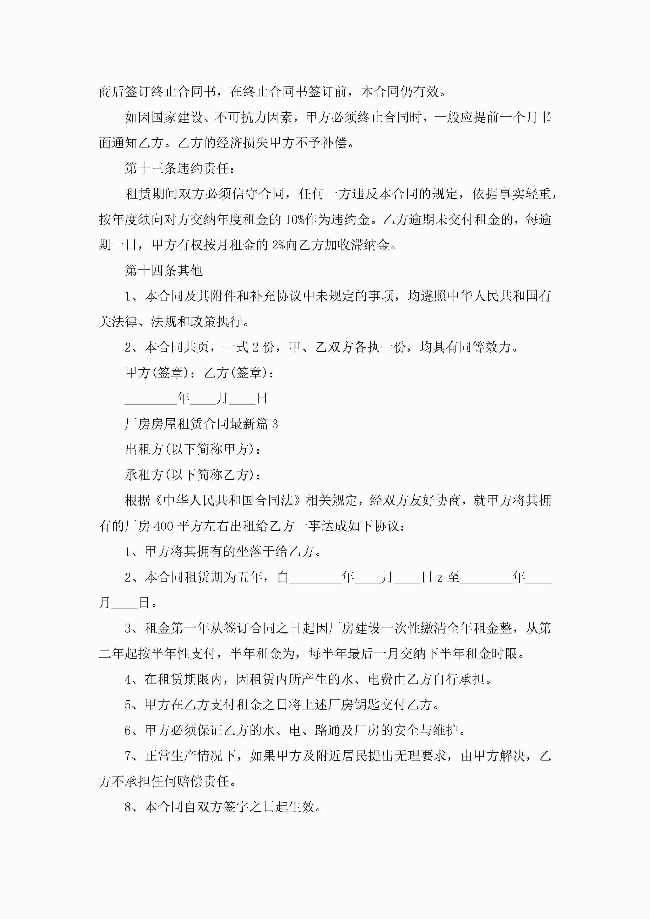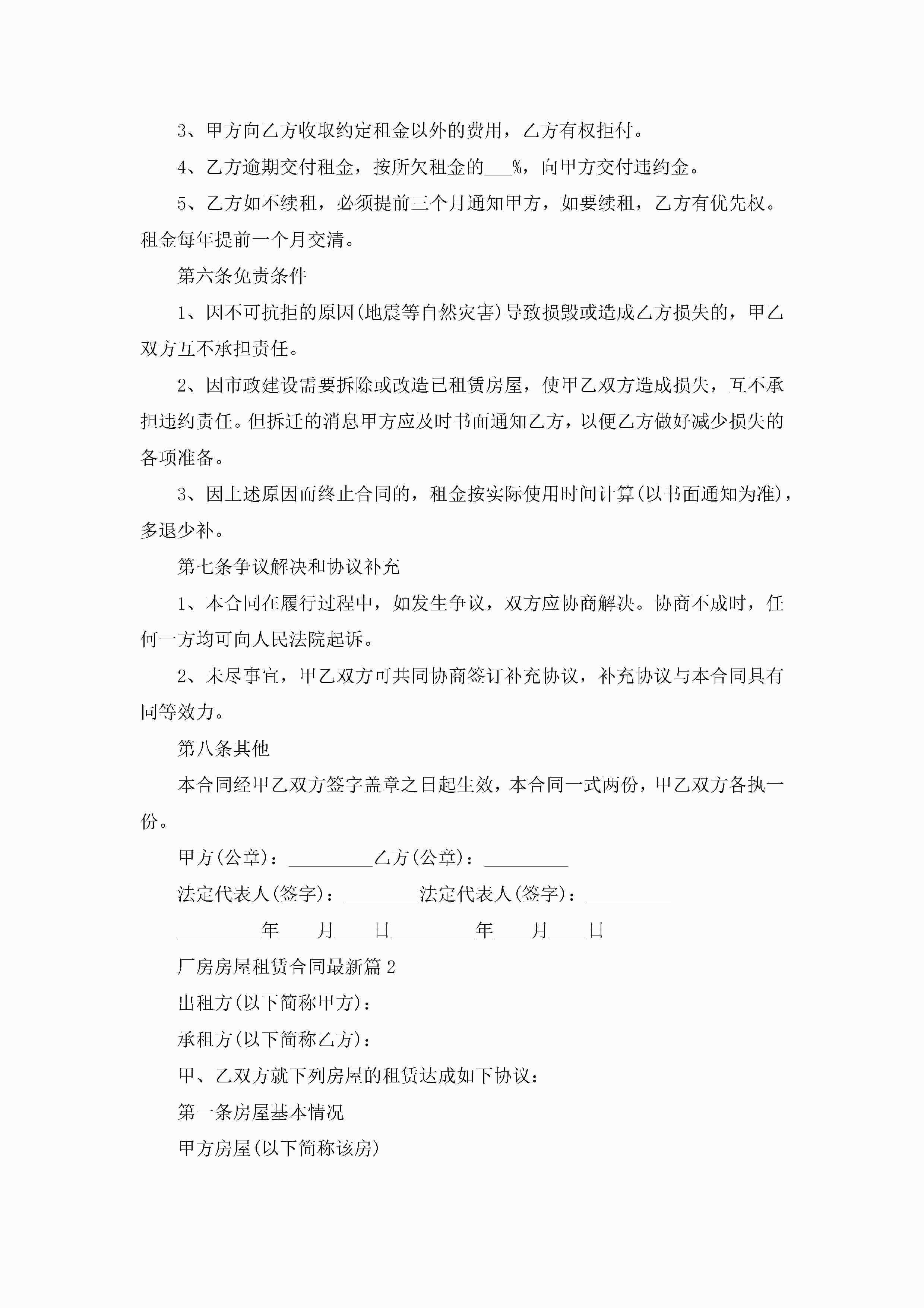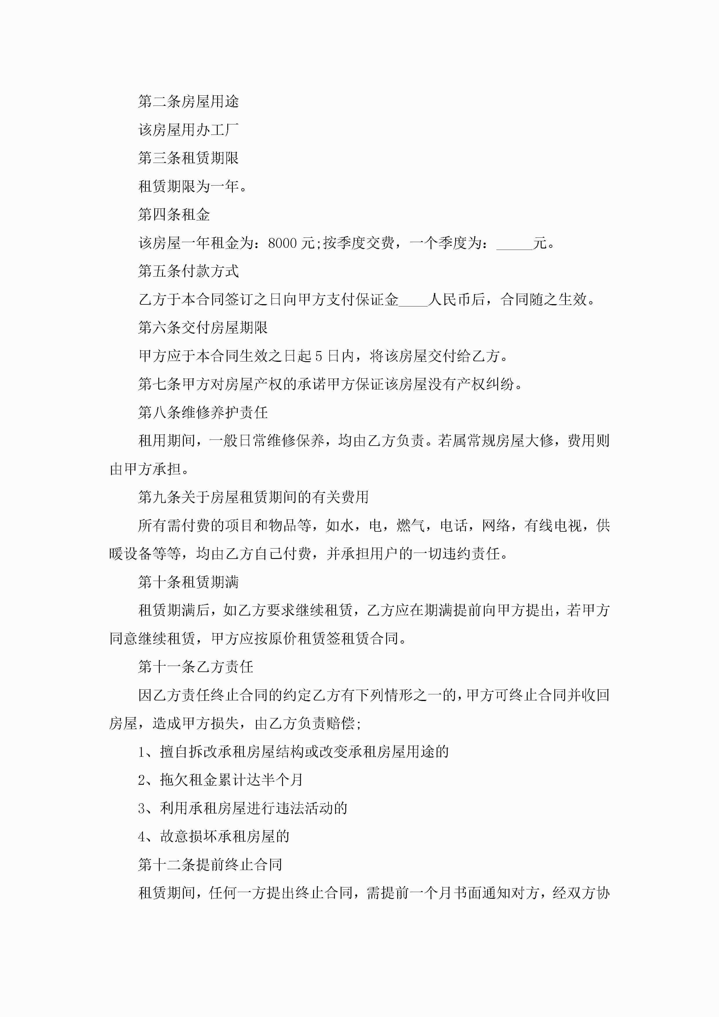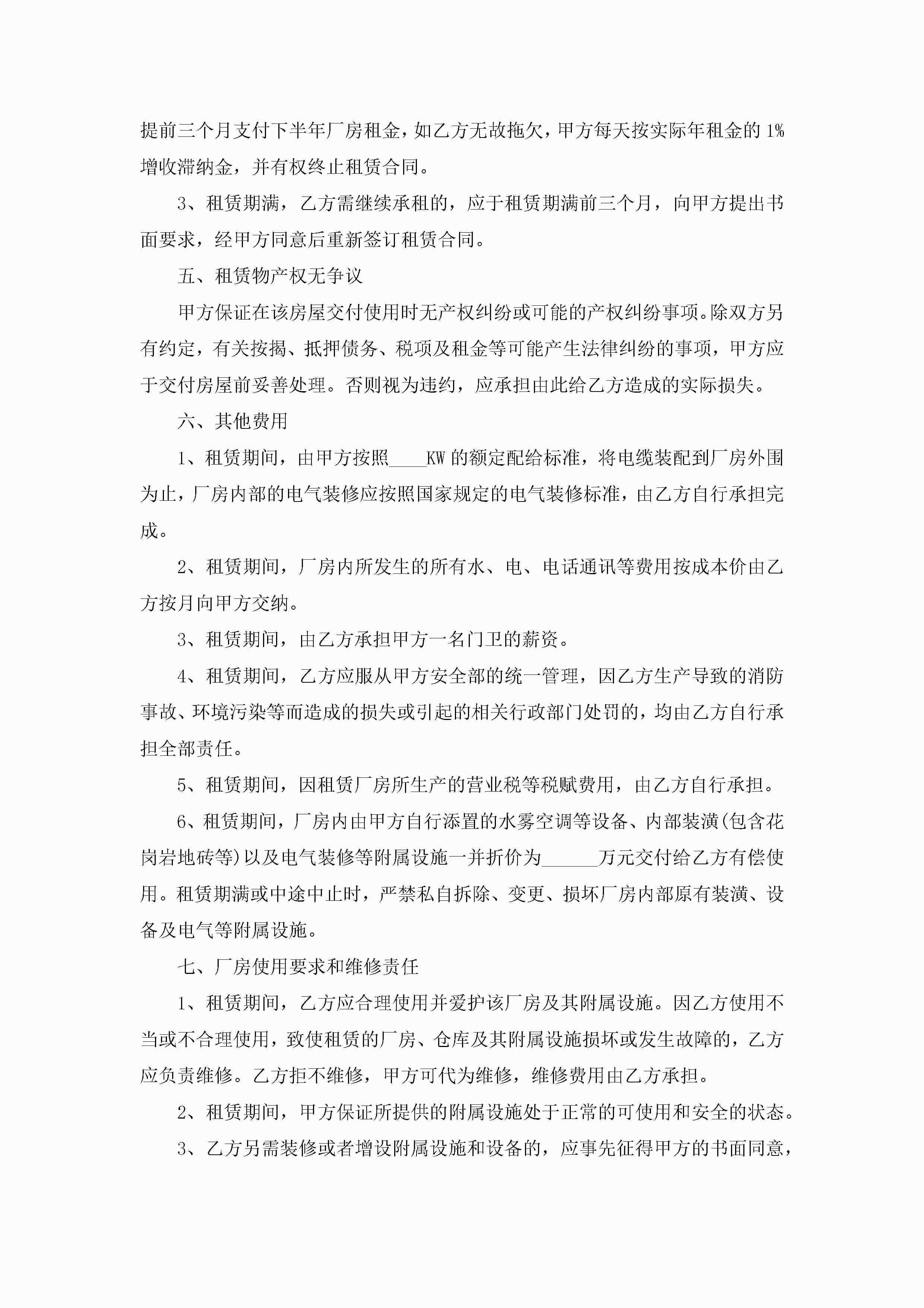 厂房房屋租赁合同最新范文jugei3月23日 01:36发布关注191 厂房房屋租赁合同最新范文此内容为付费资源,请付费后查看¥10.9 单篇文档限时特惠¥15个人会员开通企业会员开通立即下载无需登陆!可直接快捷下载单个模板付费资源© 版权声明THE ENDWord模板# 实用文档# 实用模板# 合同模板# 合同范本 如有问题,可点击最底部“联系我们”联系客服 分享QQ空间微博QQ好友海报分享复制链接收藏