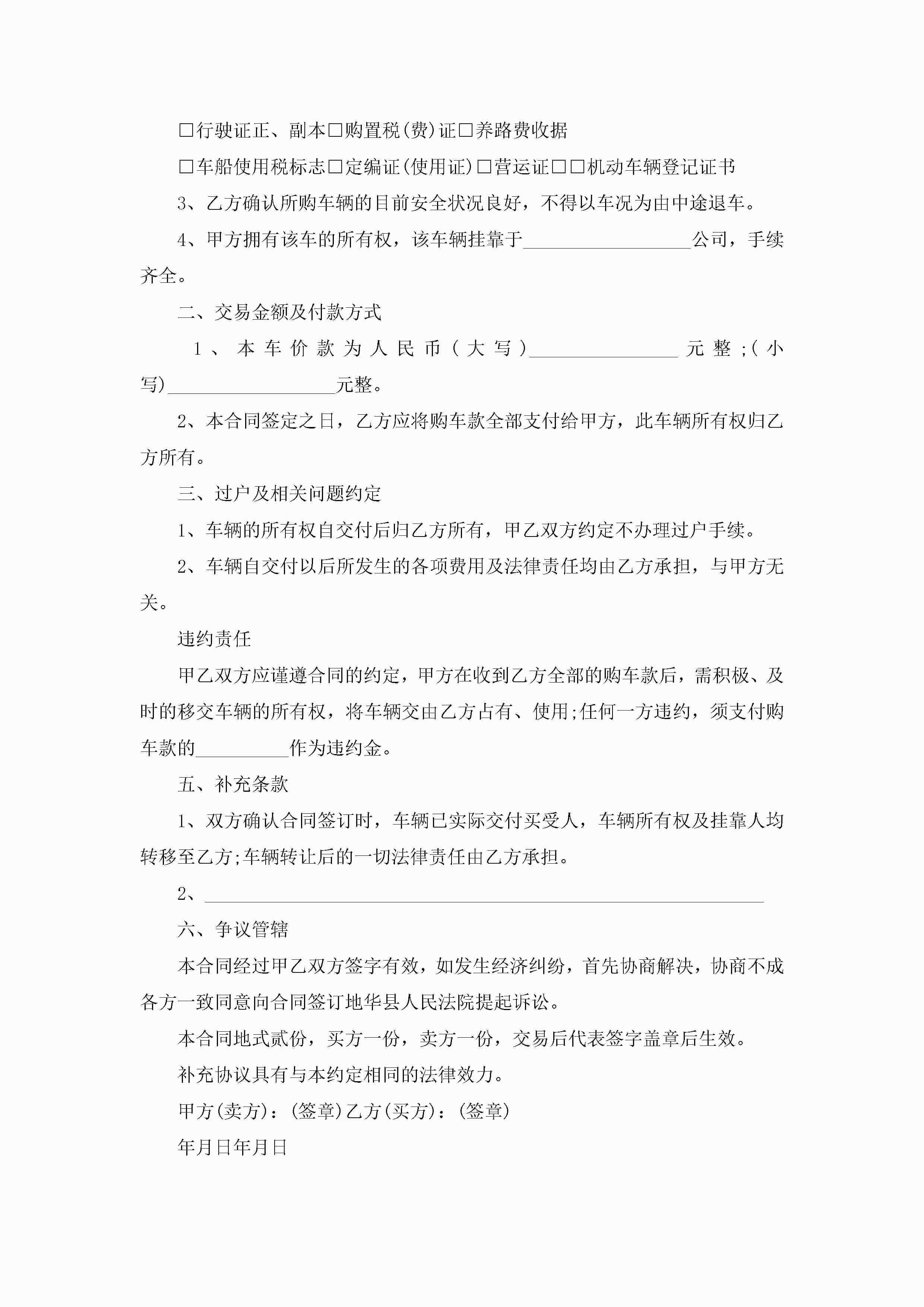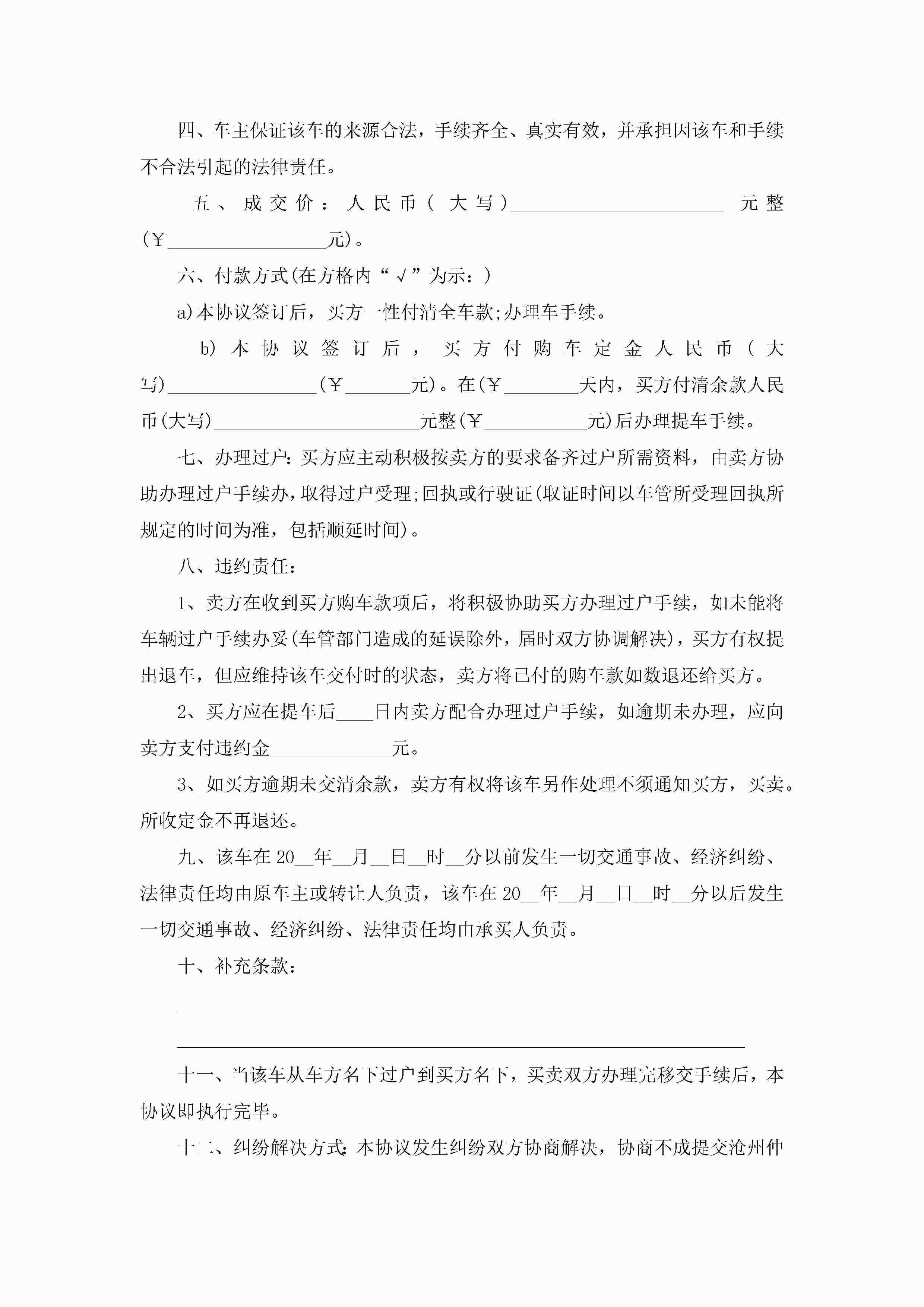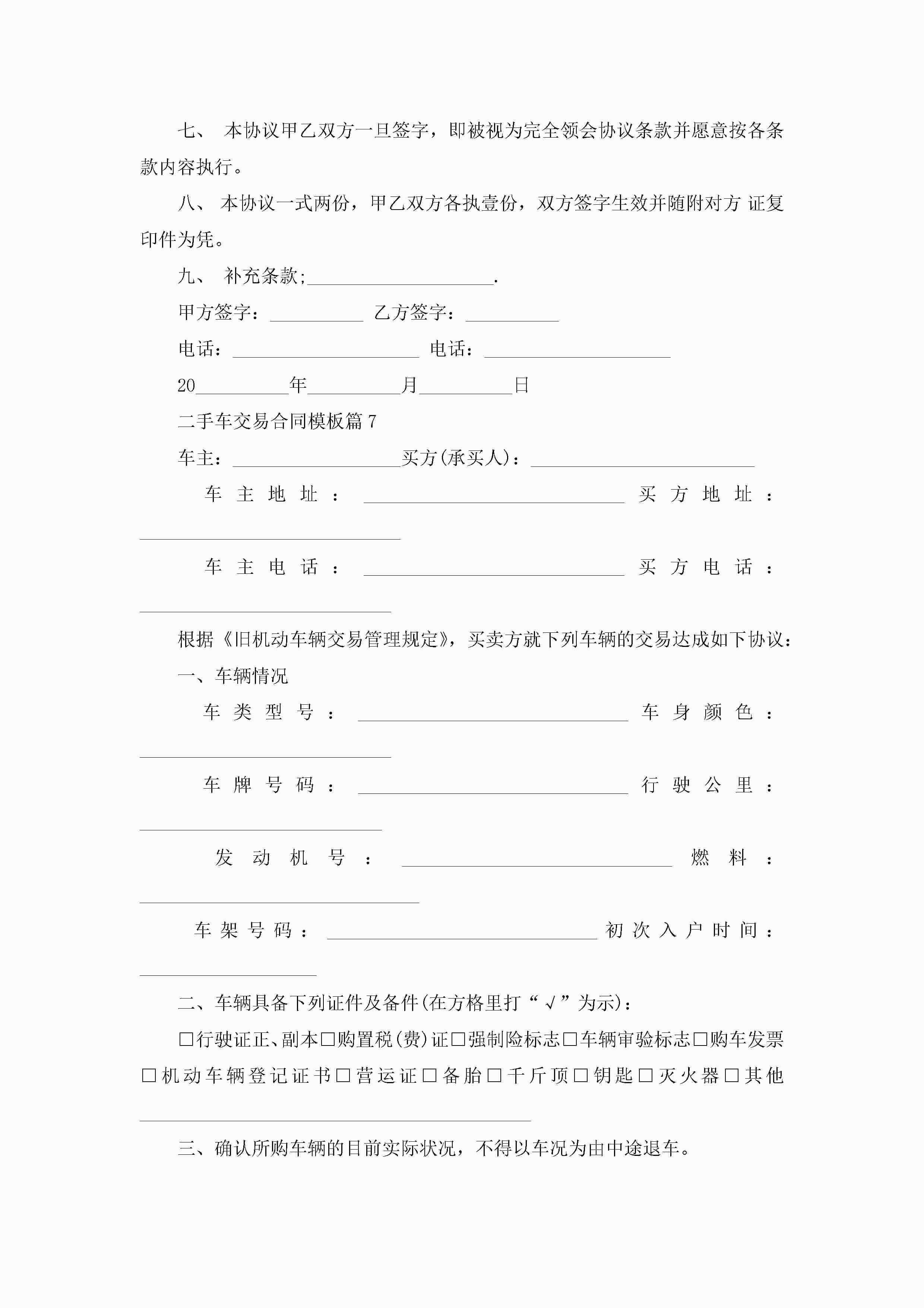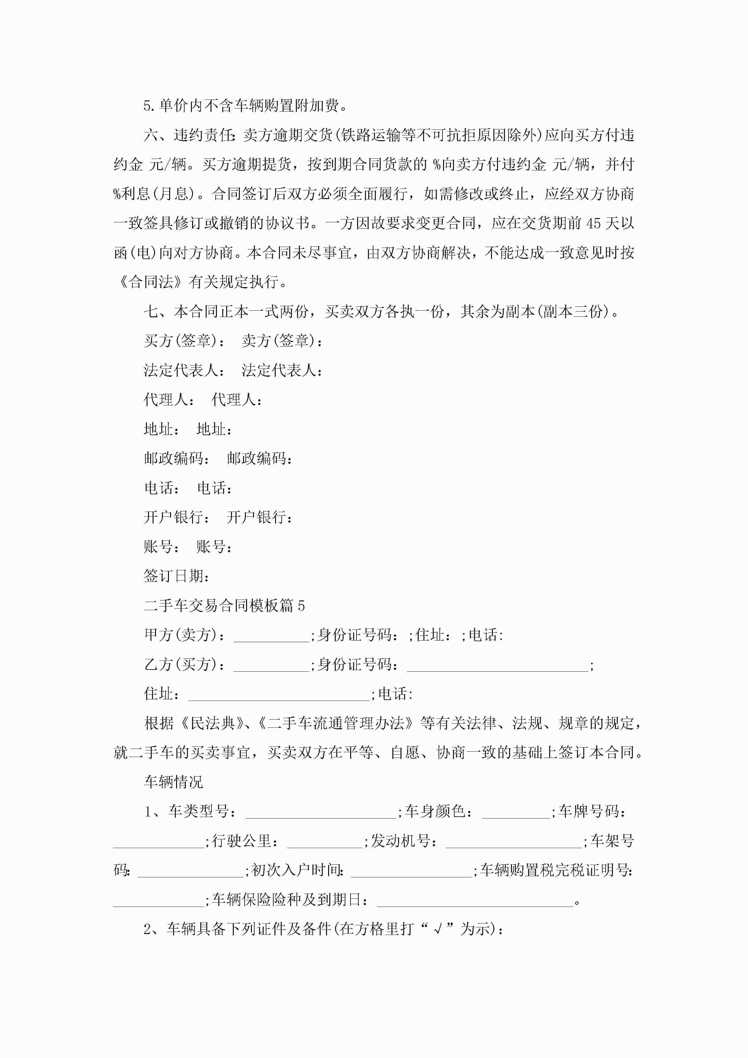 二手车交易合同最新模板jugei3月23日 01:36发布关注189 二手车交易合同最新模板此内容为付费资源,请付费后查看¥10.9 单篇文档限时特惠¥15个人会员开通企业会员开通立即下载无需登陆!可直接快捷下载单个模板付费资源© 版权声明THE ENDWord模板# 实用文档# 实用模板# 合同模板# 合同范本 如有问题,可点击最底部“联系我们”联系客服 分享QQ空间微博QQ好友海报分享复制链接收藏