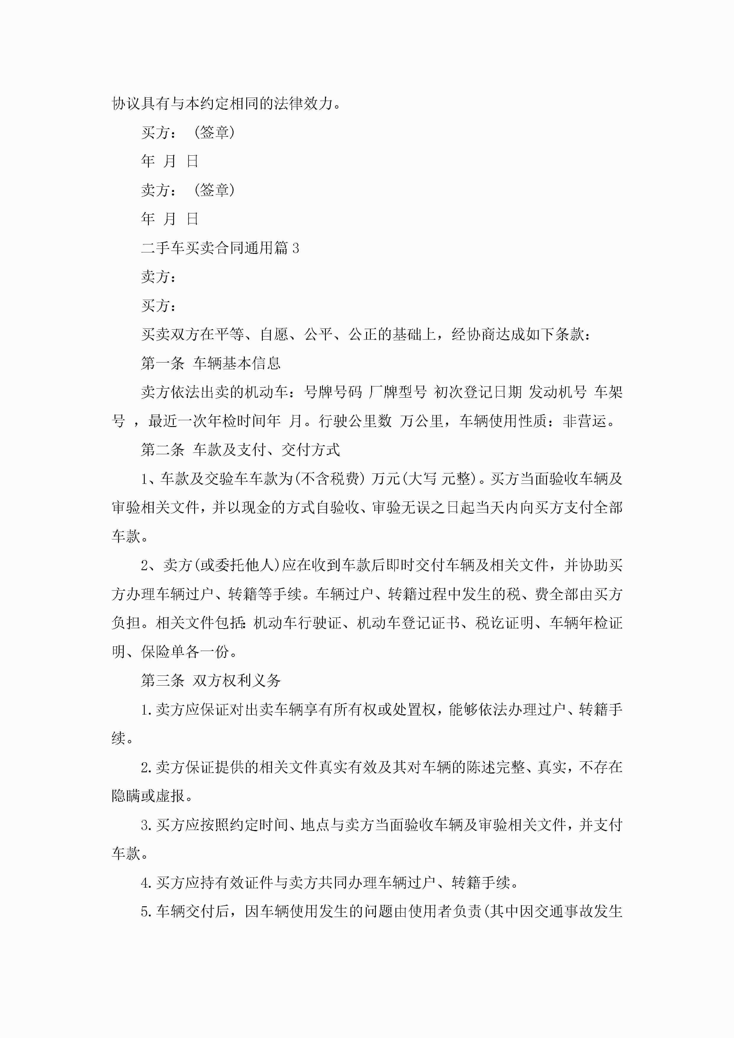 二手车买卖合同通用范文jugei3月23日 01:36发布关注193 二手车买卖合同通用范文此内容为付费资源,请付费后查看¥10.9 单篇文档限时特惠¥15个人会员开通企业会员开通立即下载无需登陆!可直接快捷下载单个模板付费资源© 版权声明THE ENDWord模板# 实用文档# 实用模板# 合同模板# 合同范本 如有问题,可点击最底部“联系我们”联系客服 分享QQ空间微博QQ好友海报分享复制链接收藏