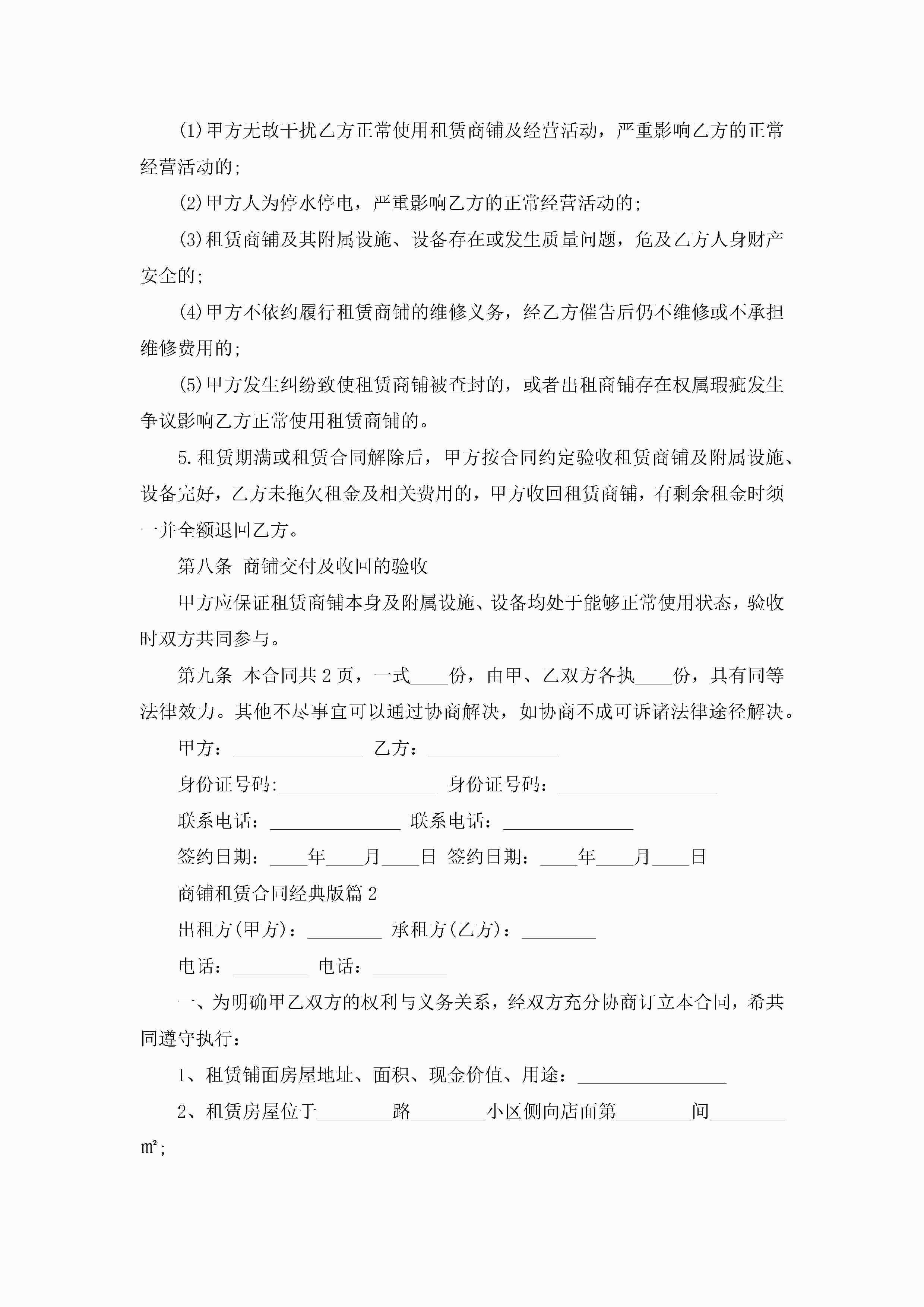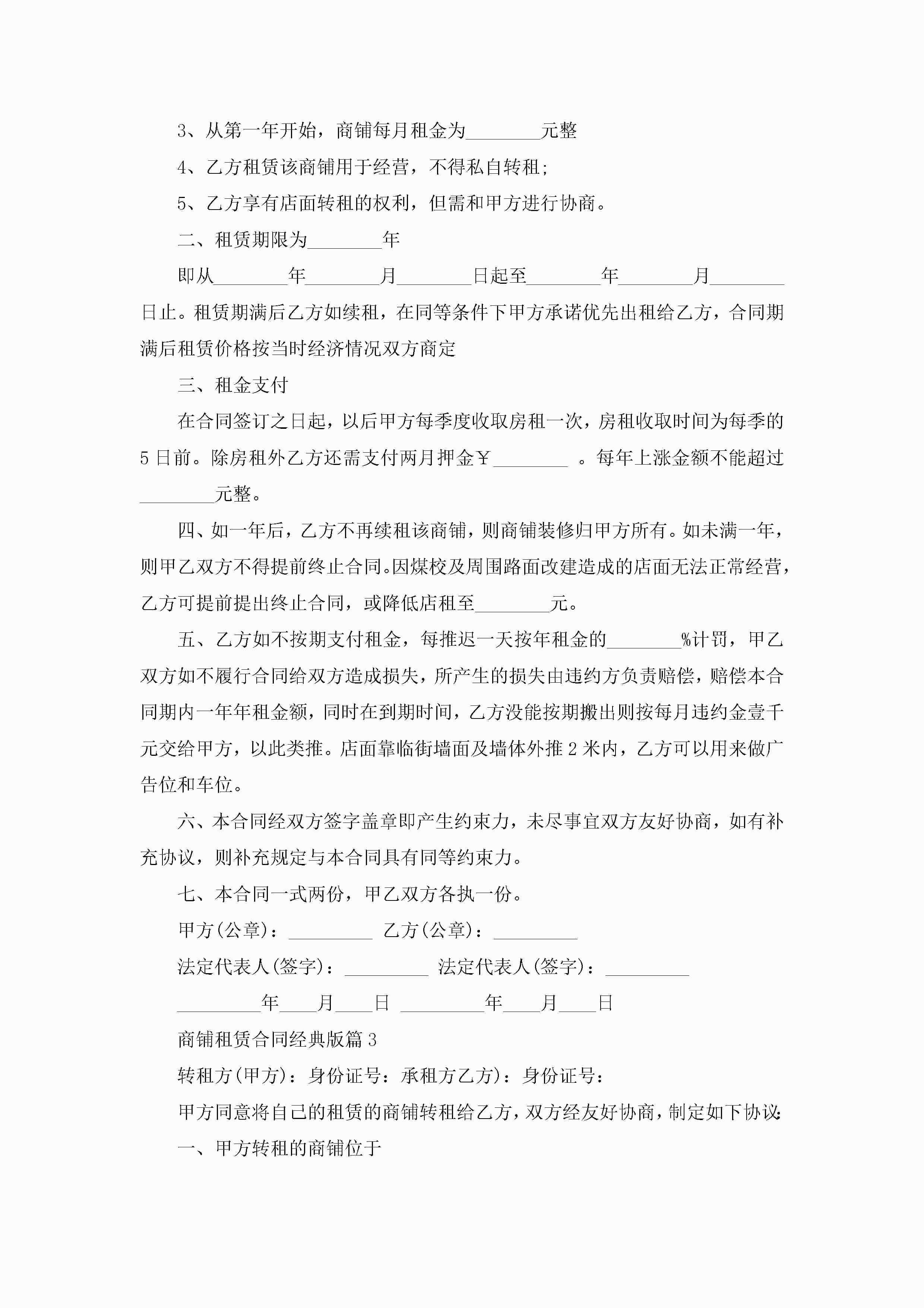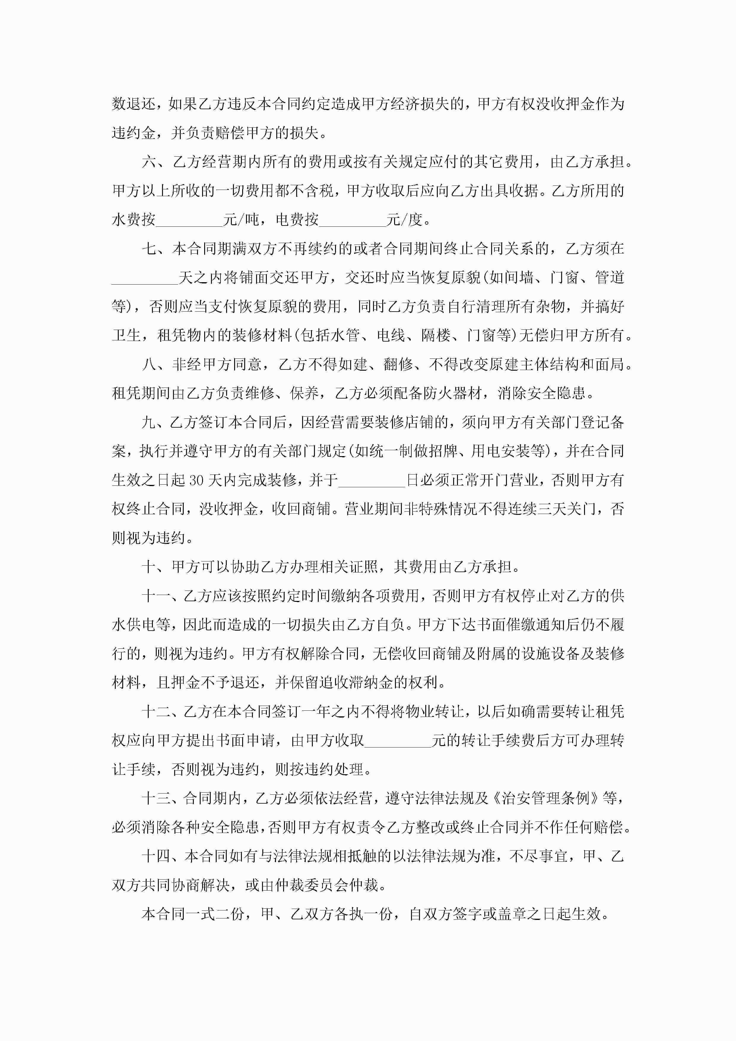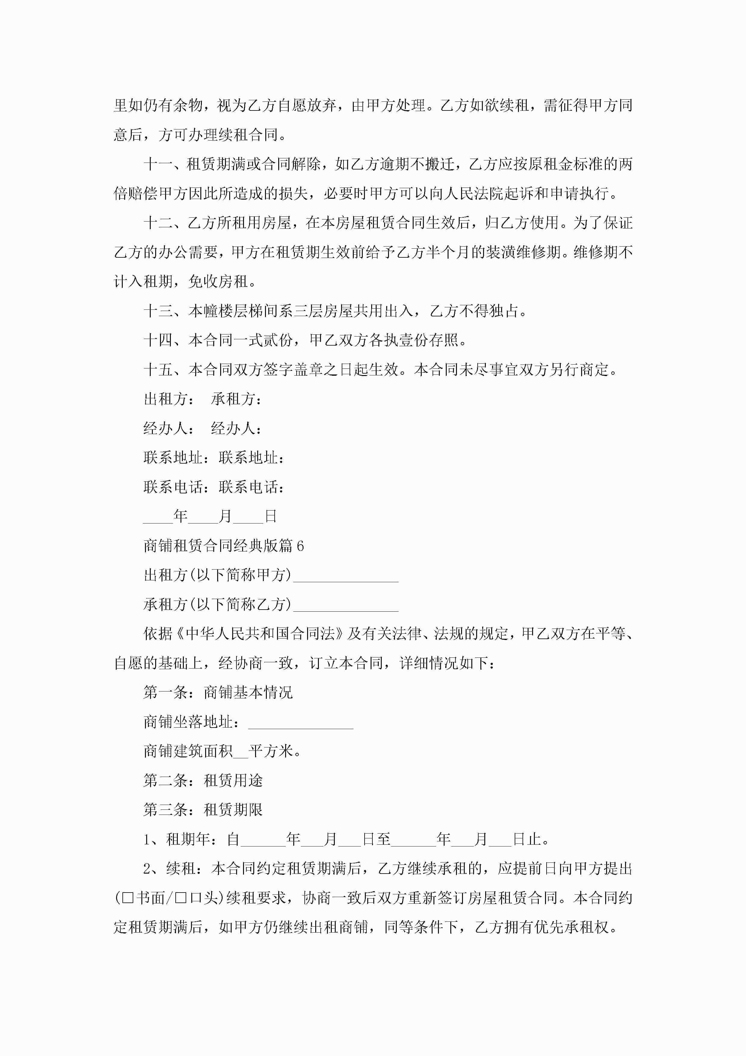 商铺租赁合同范文经典版jugei3月23日 01:36发布关注190 商铺租赁合同范文经典版此内容为付费资源,请付费后查看¥10.9 单篇文档限时特惠¥15个人会员开通企业会员开通立即下载无需登陆!可直接快捷下载单个模板付费资源© 版权声明THE ENDWord模板# 实用文档# 实用模板# 合同模板# 合同范本 如有问题,可点击最底部“联系我们”联系客服 分享QQ空间微博QQ好友海报分享复制链接收藏