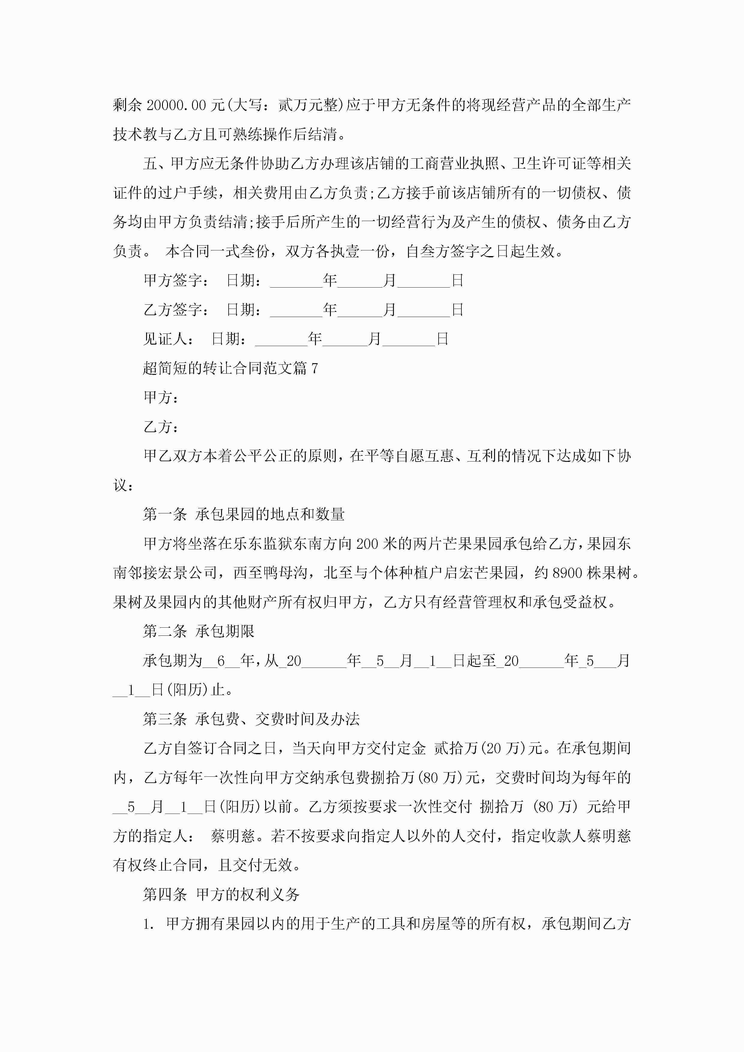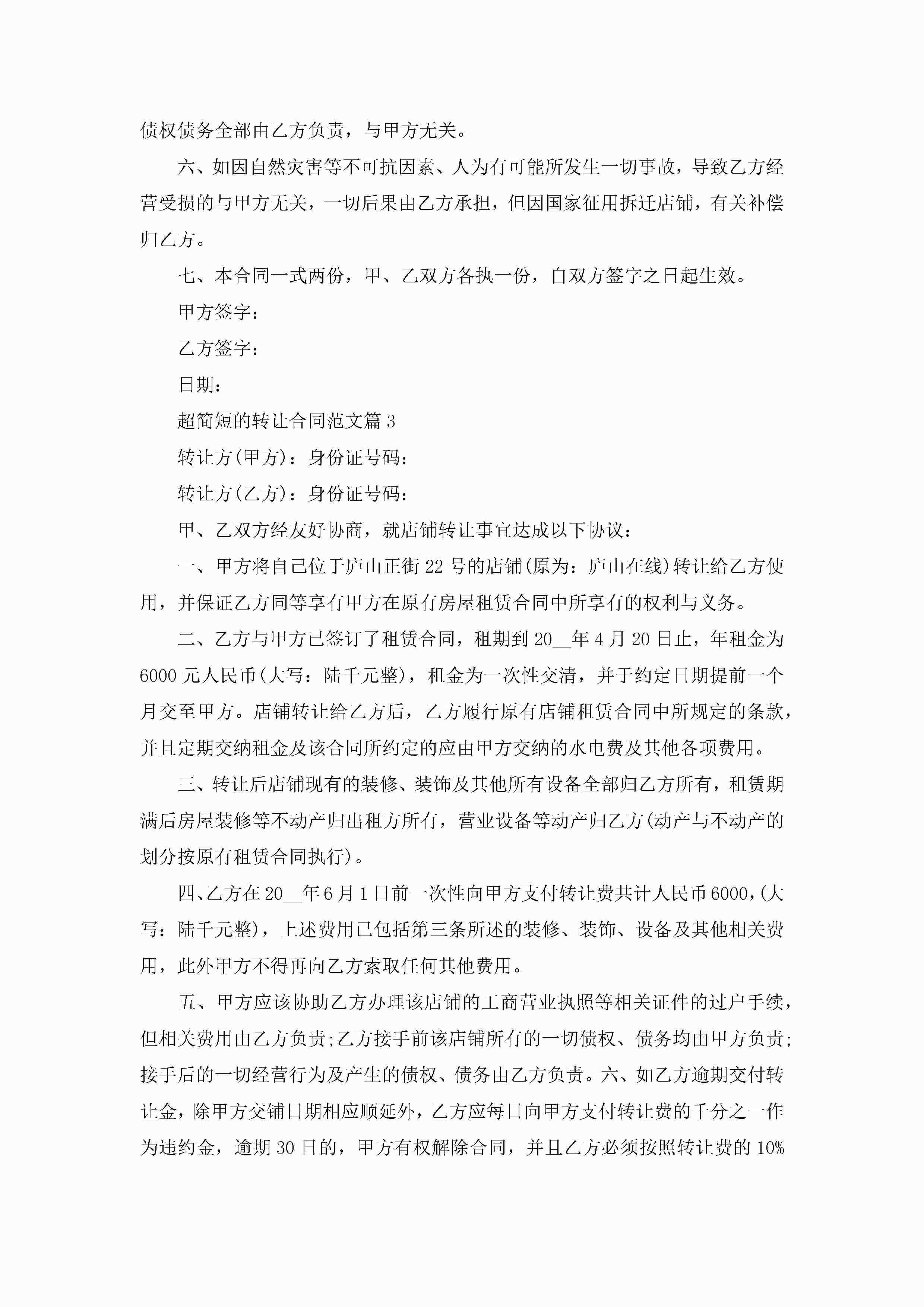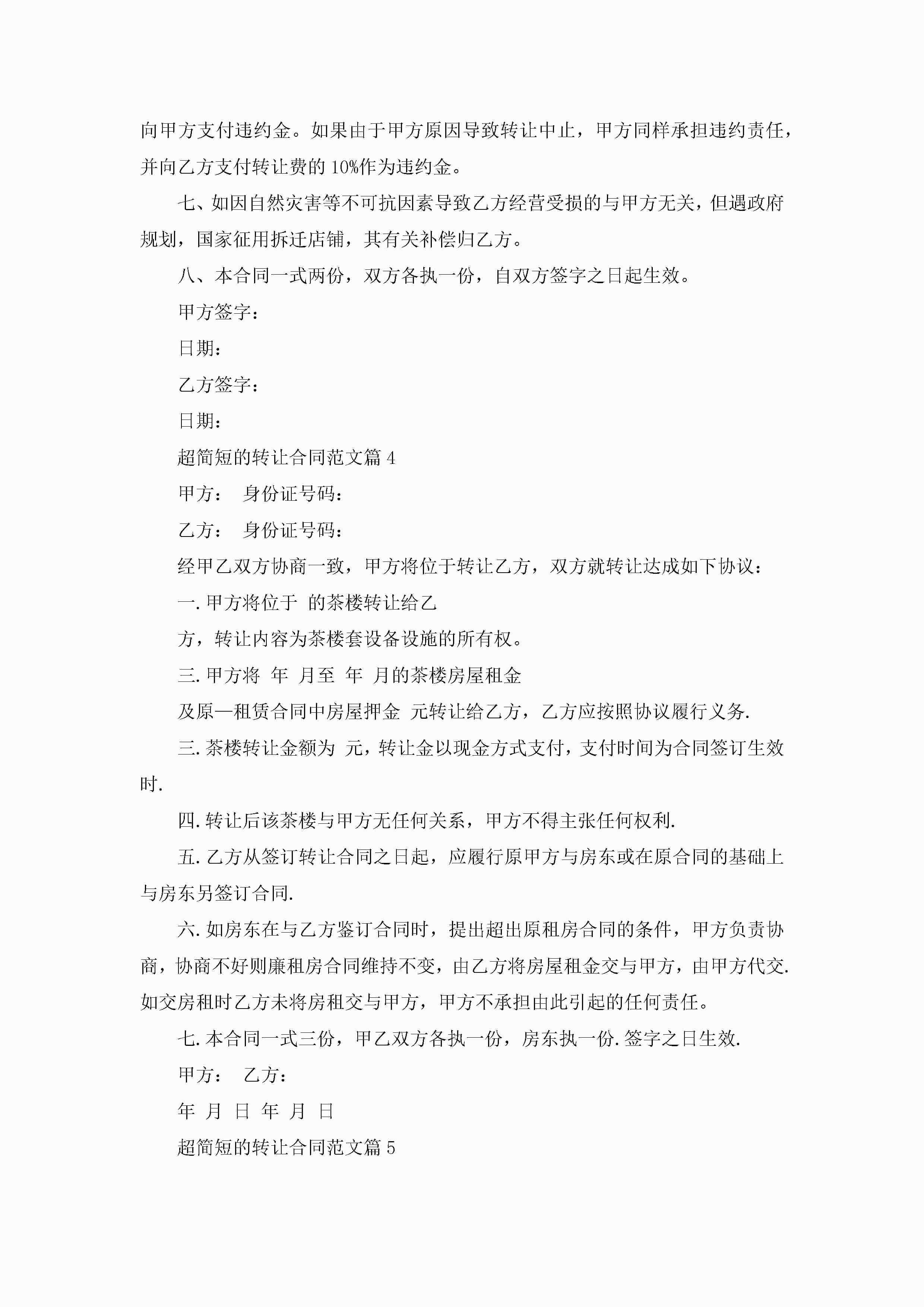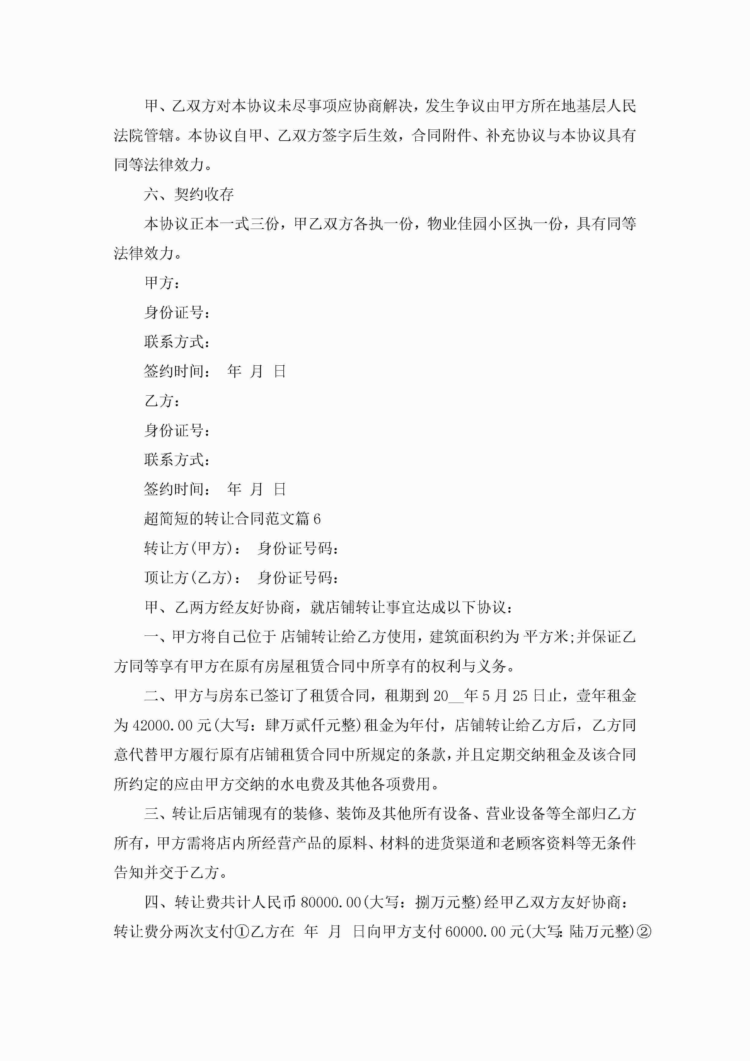 超简短的转让合同范文模板jugei3月23日 01:36发布关注254 超简短的转让合同范文模板此内容为付费资源,请付费后查看¥10.9 单篇文档限时特惠¥15个人会员开通企业会员开通立即下载无需登陆!可直接快捷下载单个模板付费资源© 版权声明THE ENDWord模板# 实用文档# 实用模板# 合同模板# 合同范本 如有问题,可点击最底部“联系我们”联系客服 分享QQ空间微博QQ好友海报分享复制链接收藏