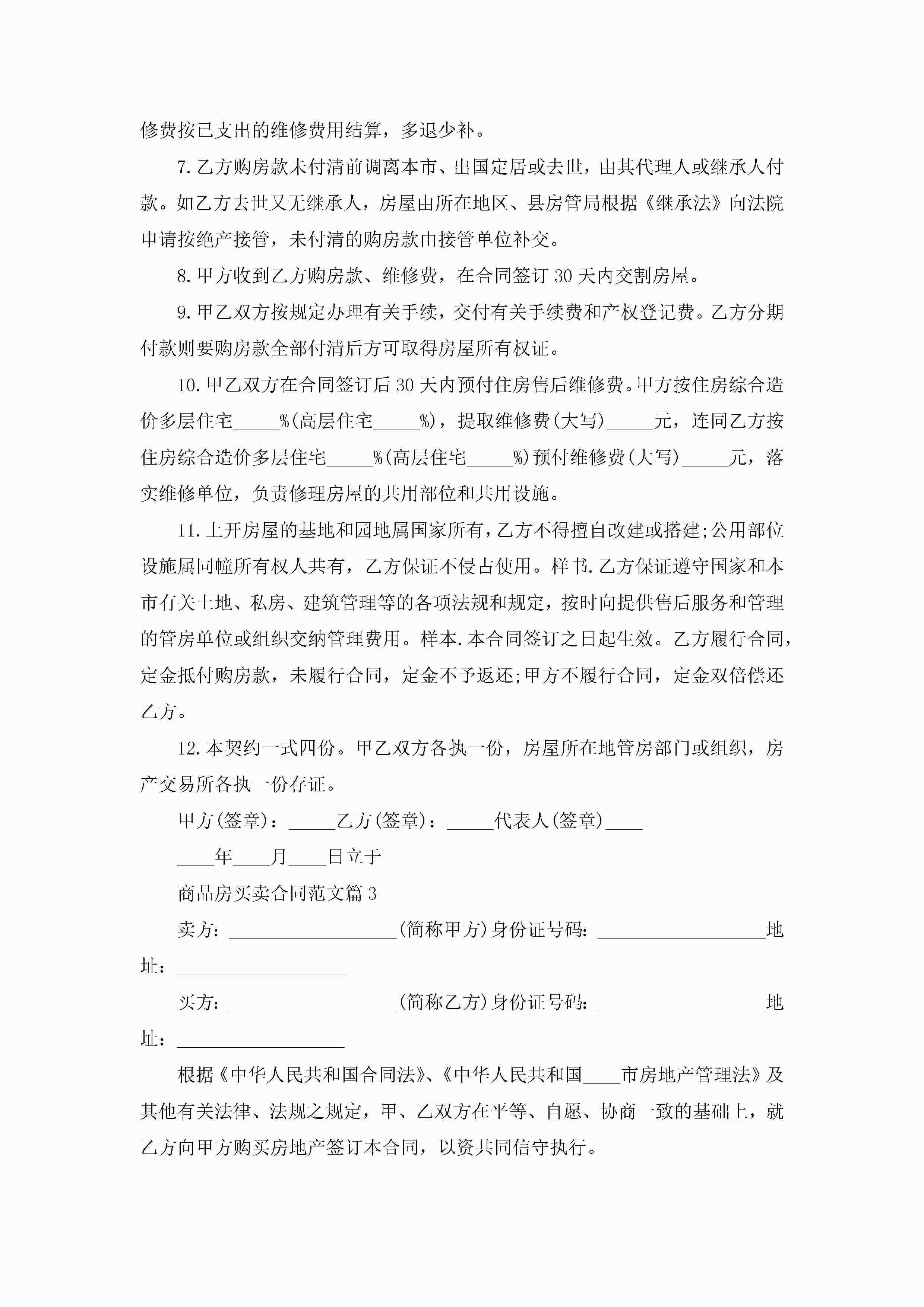 商品房买卖合同范文模板jugei3月23日 01:36发布关注264 商品房买卖合同范文模板此内容为付费资源,请付费后查看¥10.9 单篇文档限时特惠¥15个人会员开通企业会员开通立即下载无需登陆!可直接快捷下载单个模板付费资源© 版权声明THE ENDWord模板# 实用文档# 实用模板# 合同模板# 合同范本 如有问题,可点击最底部“联系我们”联系客服 分享QQ空间微博QQ好友海报分享复制链接收藏