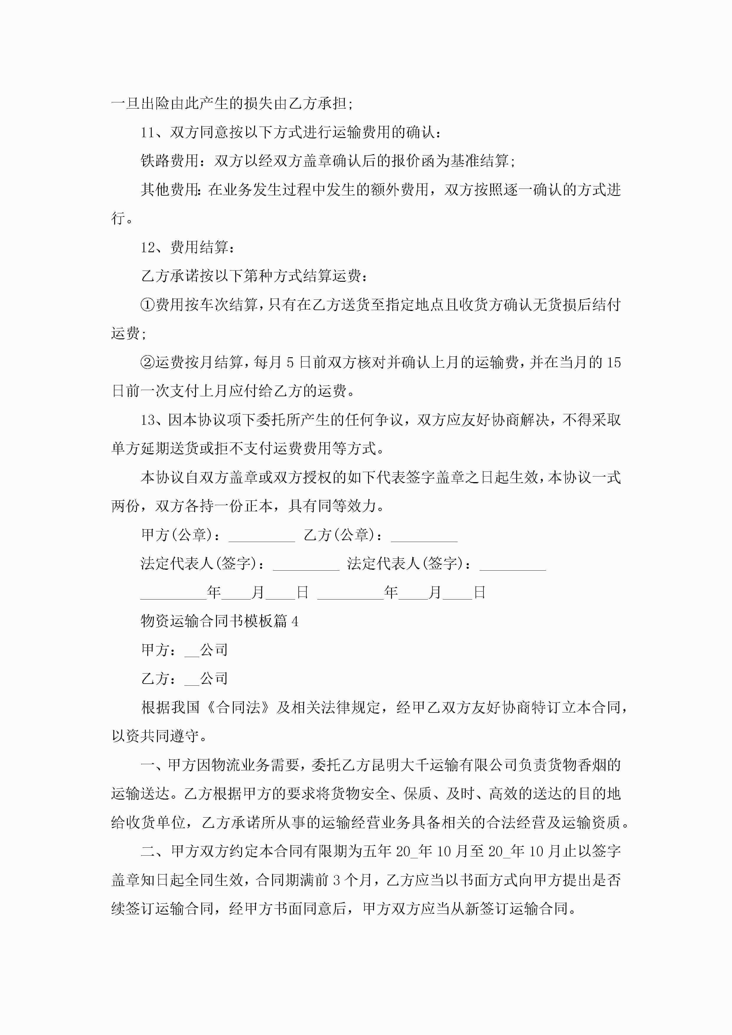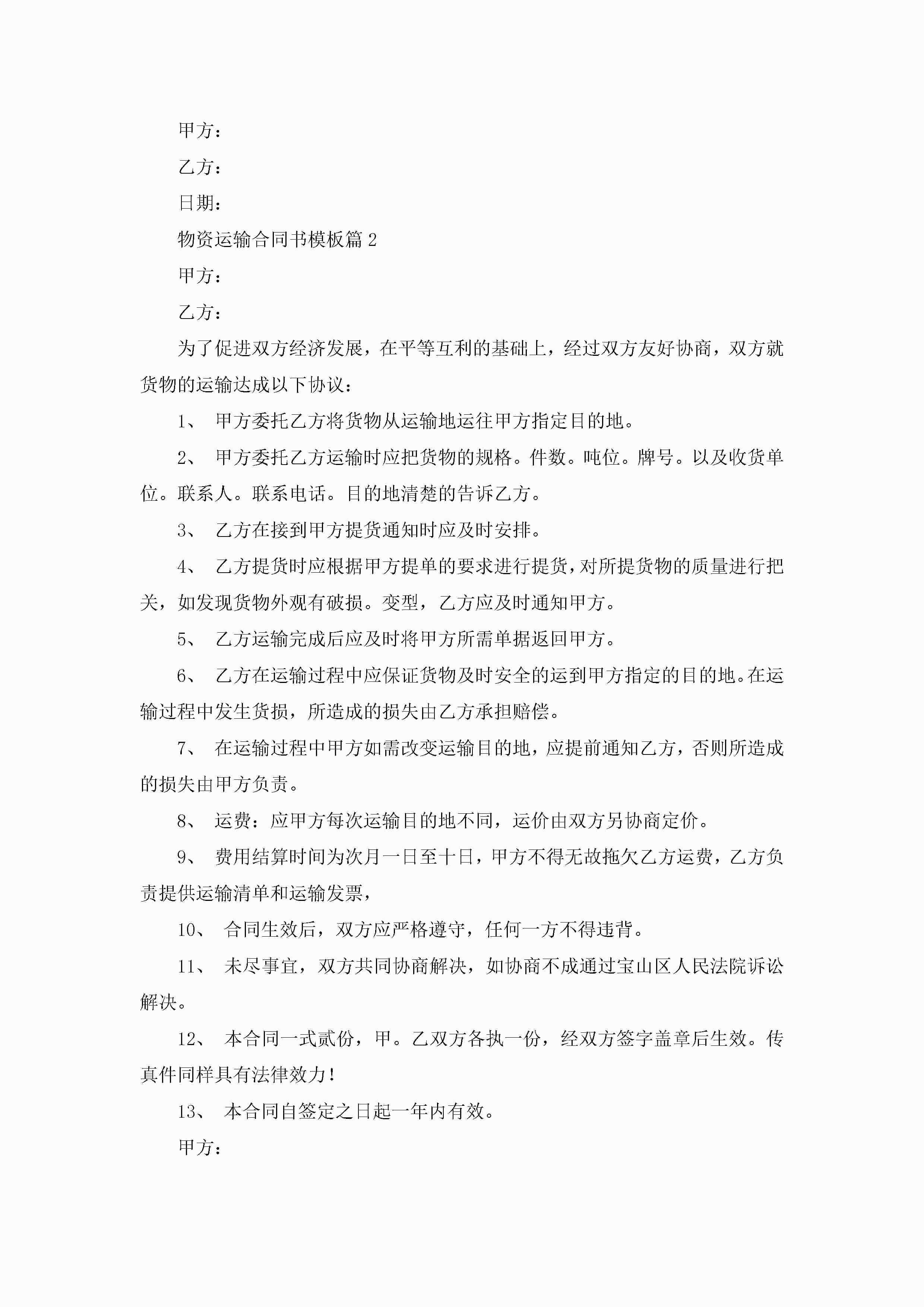 物资运输合同书模板(7篇)jugei3月23日 01:36发布关注208 物资运输合同书模板(7篇)此内容为付费资源,请付费后查看¥10.9 单篇文档限时特惠¥15个人会员开通企业会员开通立即下载无需登陆!可直接快捷下载单个模板付费资源© 版权声明THE ENDWord模板# 实用文档# 实用模板# 合同模板# 合同范本 如有问题,可点击最底部“联系我们”联系客服 分享QQ空间微博QQ好友海报分享复制链接收藏