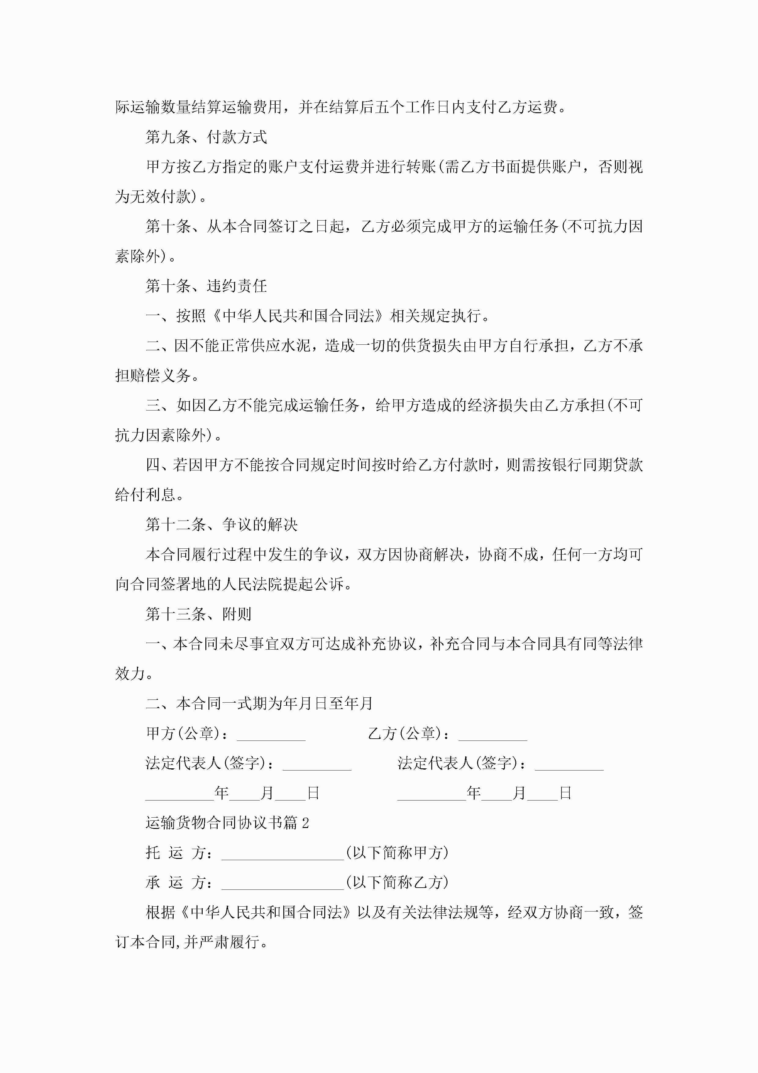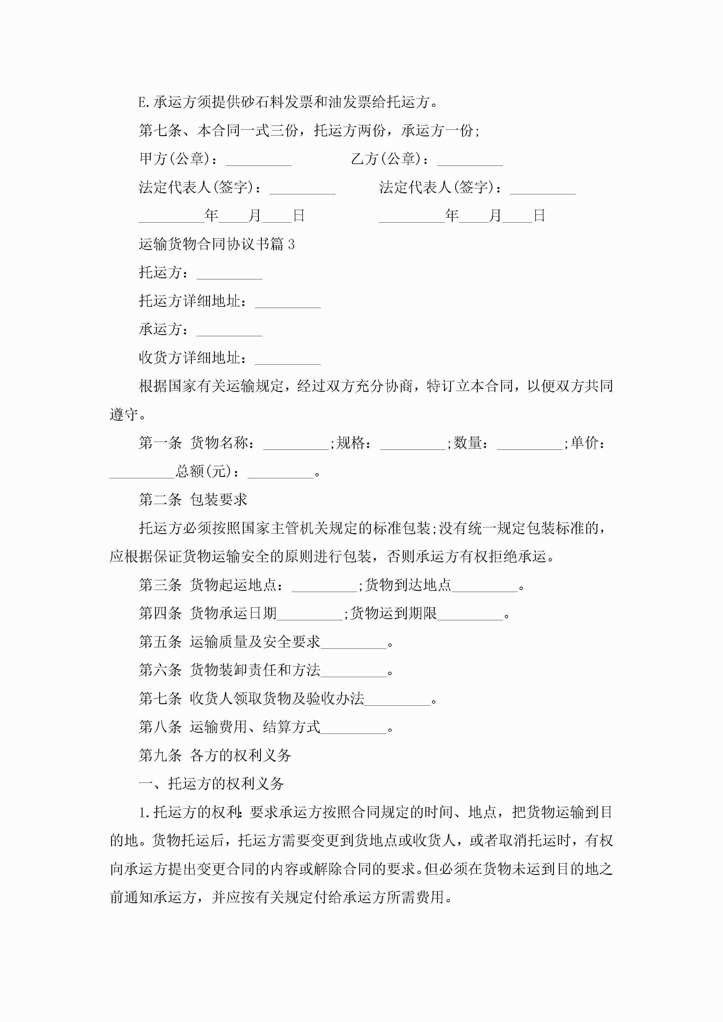2022运输货物合同协议书7篇jugei3月23日 01:36发布关注277 2022运输货物合同协议书7篇此内容为付费资源,请付费后查看¥10.9 单篇文档限时特惠¥15个人会员开通企业会员开通立即下载无需登陆!可直接快捷下载单个模板付费资源© 版权声明THE ENDWord模板# 实用文档# 实用模板# 合同模板# 合同范本 如有问题,可点击最底部“联系我们”联系客服 分享QQ空间微博QQ好友海报分享复制链接收藏