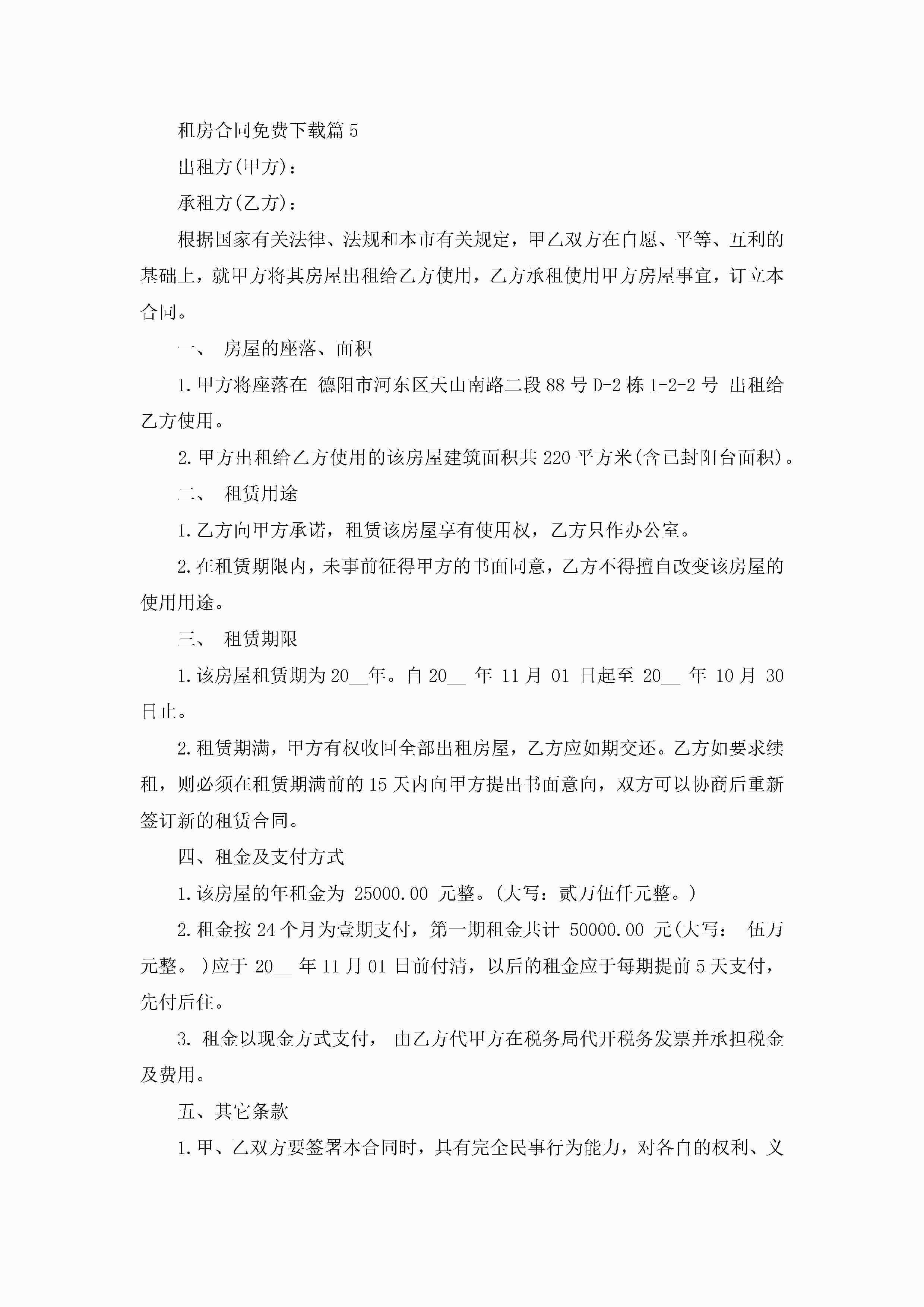租房合同最新免费下载jugei3月23日 01:36发布关注200 租房合同最新免费下载此内容为付费资源,请付费后查看¥10.9 单篇文档限时特惠¥15个人会员开通企业会员开通立即下载无需登陆!可直接快捷下载单个模板付费资源© 版权声明THE ENDWord模板# 实用文档# 实用模板# 合同模板# 合同范本 如有问题,可点击最底部“联系我们”联系客服 分享QQ空间微博QQ好友海报分享复制链接收藏