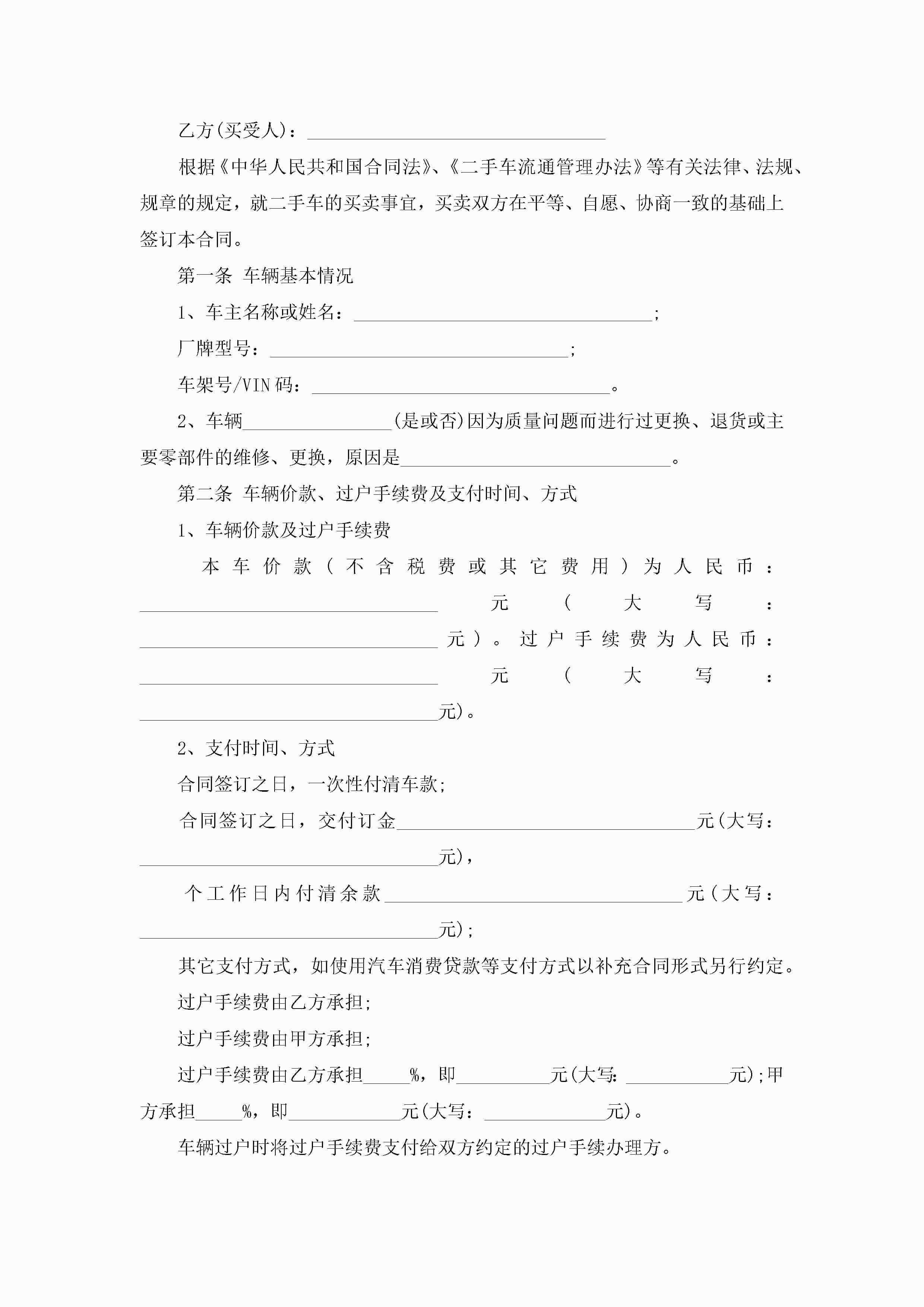 二手车买卖协议书最新范文jugei3月23日 01:36发布关注278 二手车买卖协议书最新范文此内容为付费资源,请付费后查看¥10.9 单篇文档限时特惠¥15个人会员开通企业会员开通立即下载无需登陆!可直接快捷下载单个模板付费资源© 版权声明THE ENDWord模板# 实用文档# 实用模板# 合同模板# 合同范本 如有问题,可点击最底部“联系我们”联系客服 分享QQ空间微博QQ好友海报分享复制链接收藏