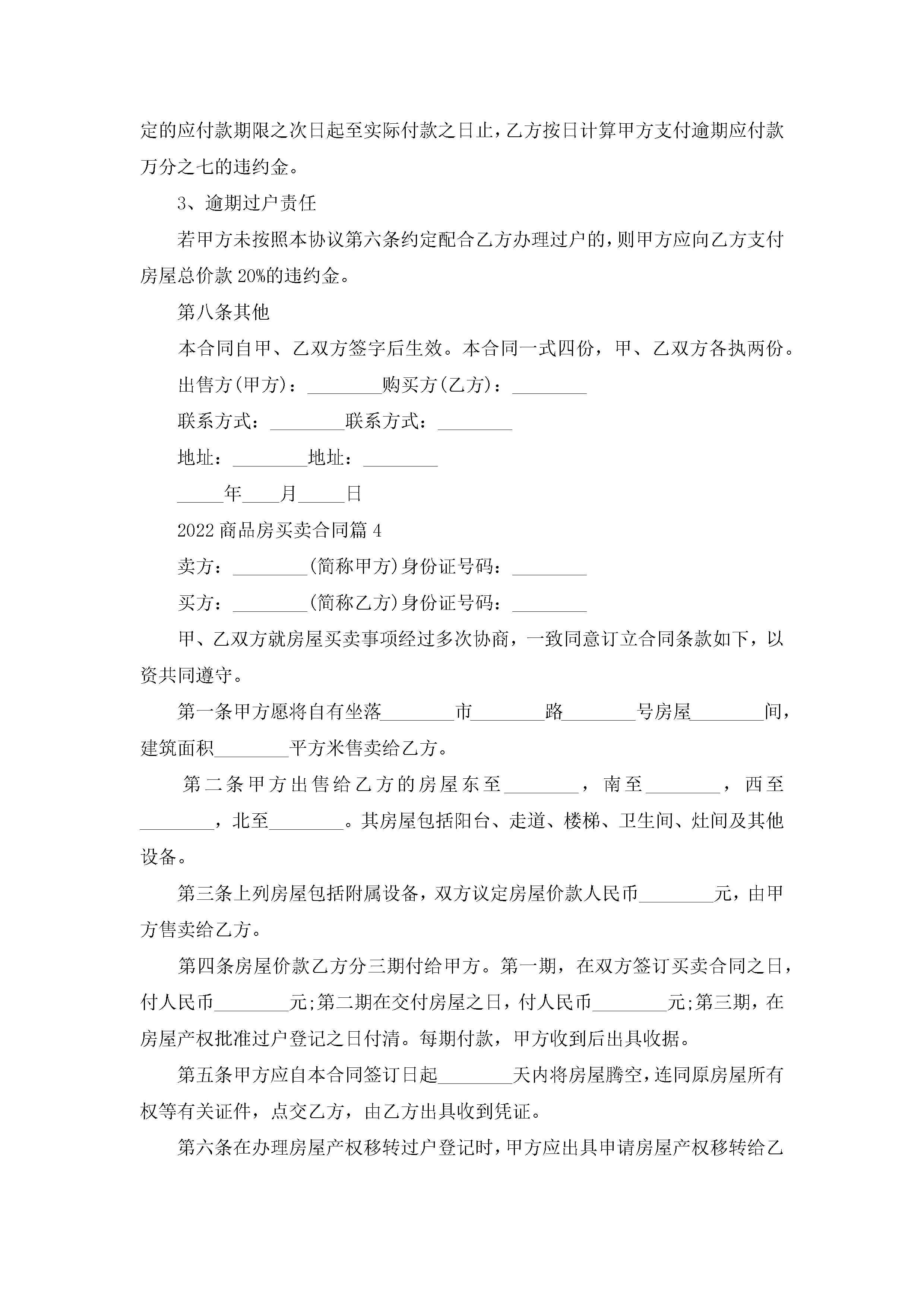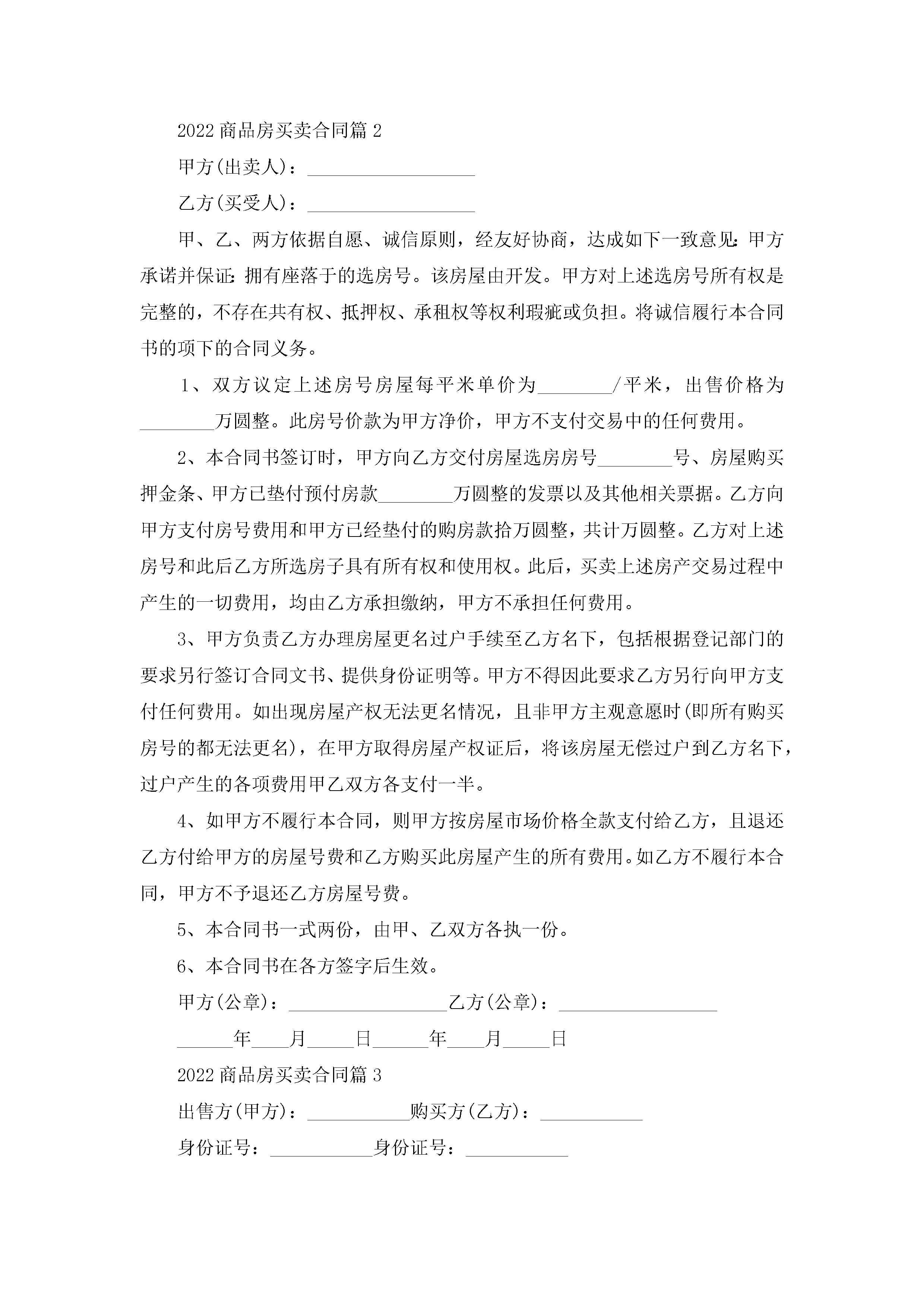 2022商品房买卖合同范文jugei3月23日 01:36发布关注199 2022商品房买卖合同范文此内容为付费资源,请付费后查看¥10.9 单篇文档限时特惠¥15个人会员开通企业会员开通立即下载无需登陆!可直接快捷下载单个模板付费资源© 版权声明THE ENDWord模板# 实用文档# 实用模板# 合同模板# 合同范本 如有问题,可点击最底部“联系我们”联系客服 分享QQ空间微博QQ好友海报分享复制链接收藏