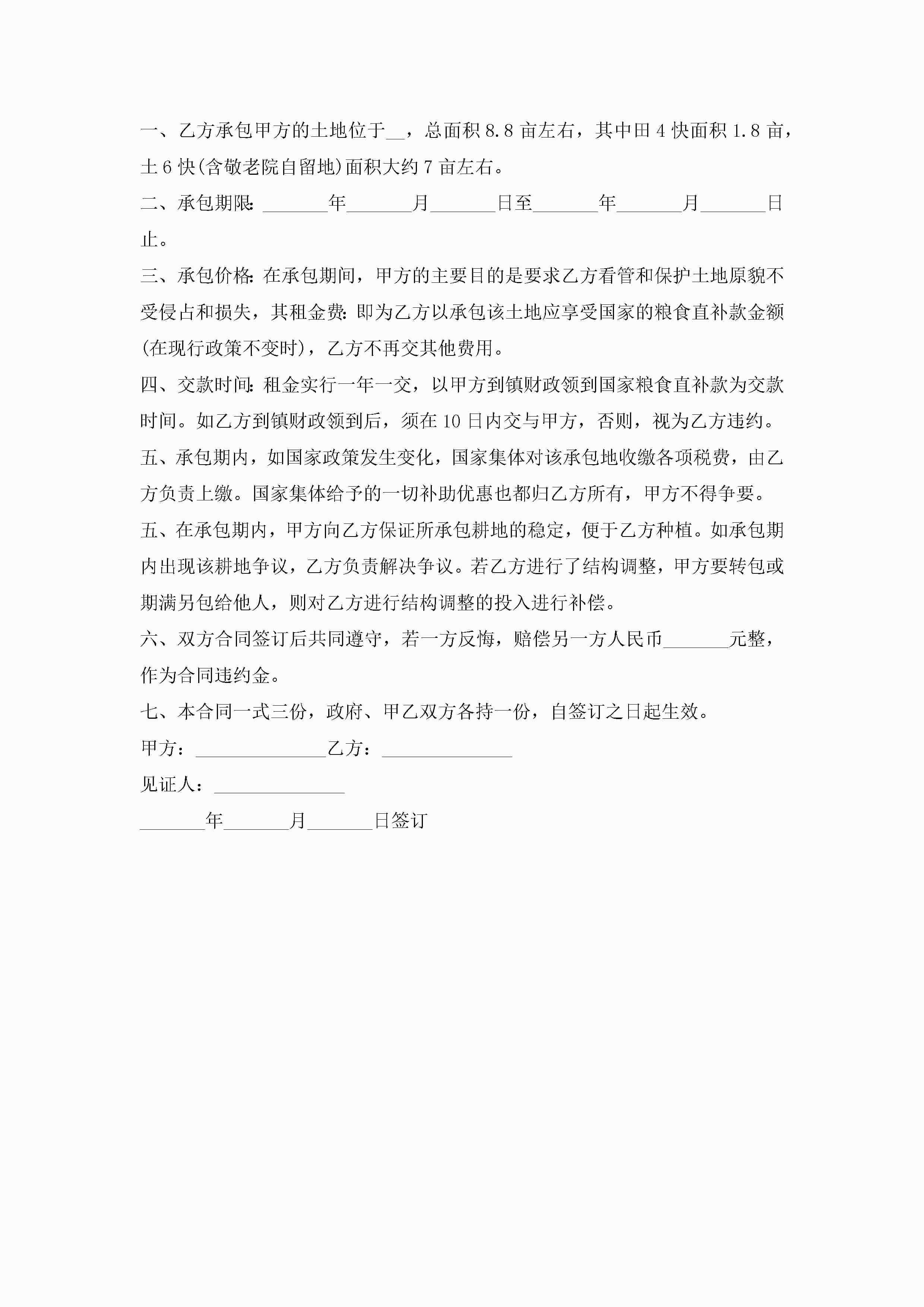农村土地承包合同范本jugei3月23日 01:36发布关注189 农村土地承包合同范本此内容为付费资源,请付费后查看¥10.9 单篇文档限时特惠¥15个人会员开通企业会员开通立即下载无需登陆!可直接快捷下载单个模板付费资源© 版权声明THE ENDWord模板# 实用文档# 实用模板# 合同模板# 合同范本 如有问题,可点击最底部“联系我们”联系客服 分享QQ空间微博QQ好友海报分享复制链接收藏