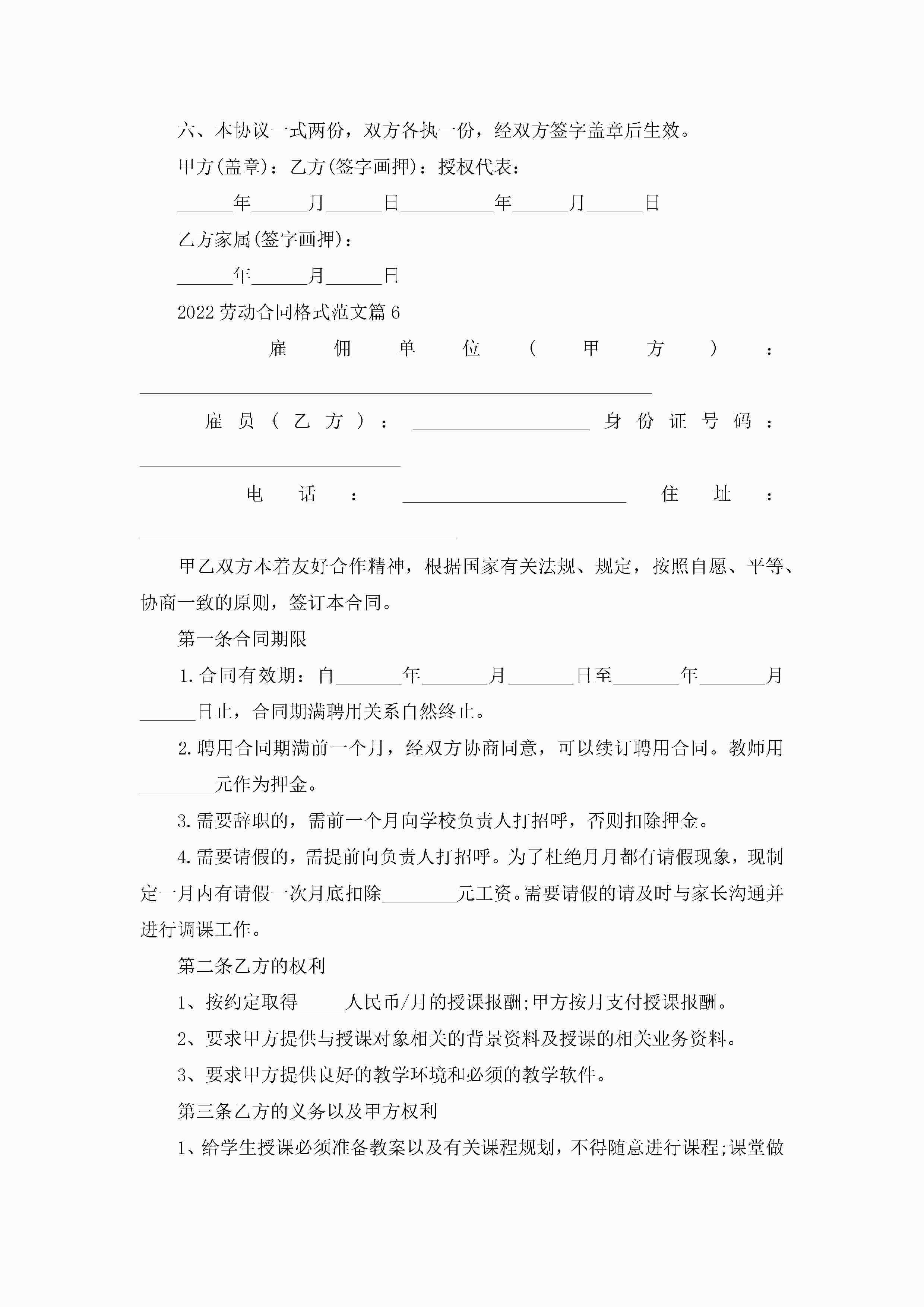 2022劳动合同最新格式范文jugei3月23日 01:36发布关注192 2022劳动合同最新格式范文此内容为付费资源,请付费后查看¥10.9 单篇文档限时特惠¥15个人会员开通企业会员开通立即下载无需登陆!可直接快捷下载单个模板付费资源© 版权声明THE ENDWord模板# 实用文档# 实用模板# 合同模板# 合同范本 如有问题,可点击最底部“联系我们”联系客服 分享QQ空间微博QQ好友海报分享复制链接收藏
