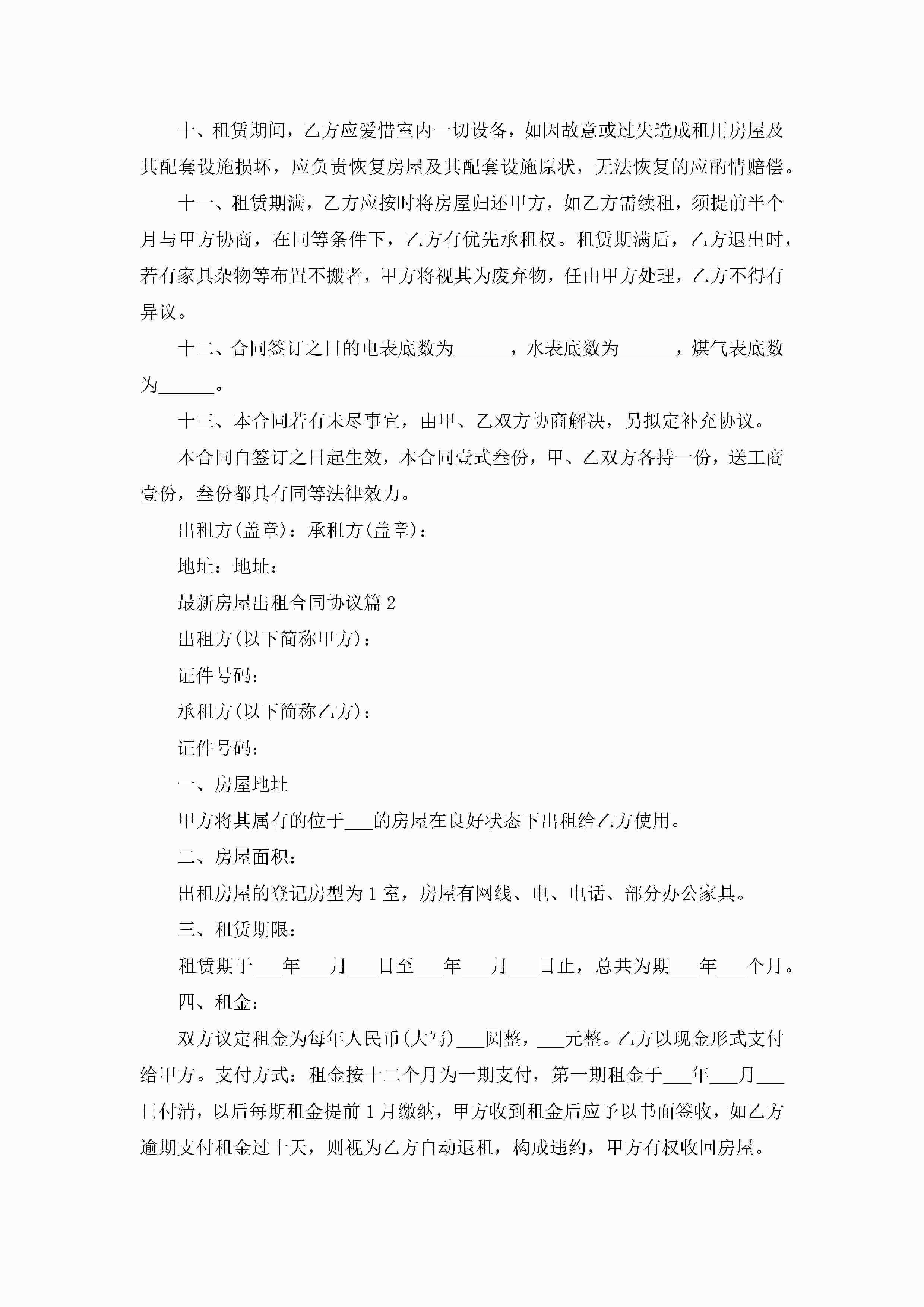 最新房屋出租合同协议范文jugei3月23日 01:36发布关注182 最新房屋出租合同协议范文此内容为付费资源,请付费后查看¥10.9 单篇文档限时特惠¥15个人会员开通企业会员开通立即下载无需登陆!可直接快捷下载单个模板付费资源© 版权声明THE ENDWord模板# 实用文档# 实用模板# 合同模板# 合同范本 如有问题,可点击最底部“联系我们”联系客服 分享QQ空间微博QQ好友海报分享复制链接收藏