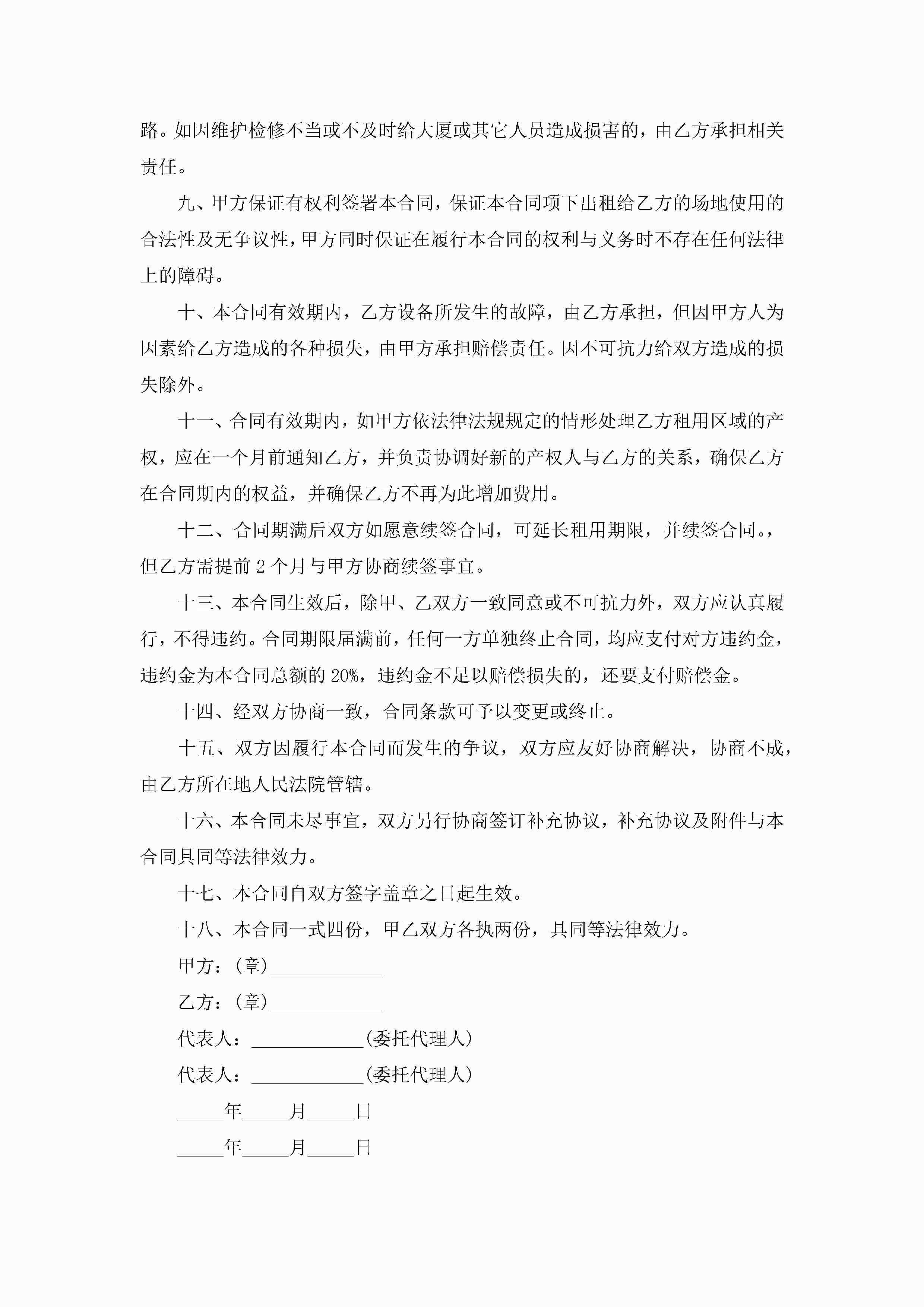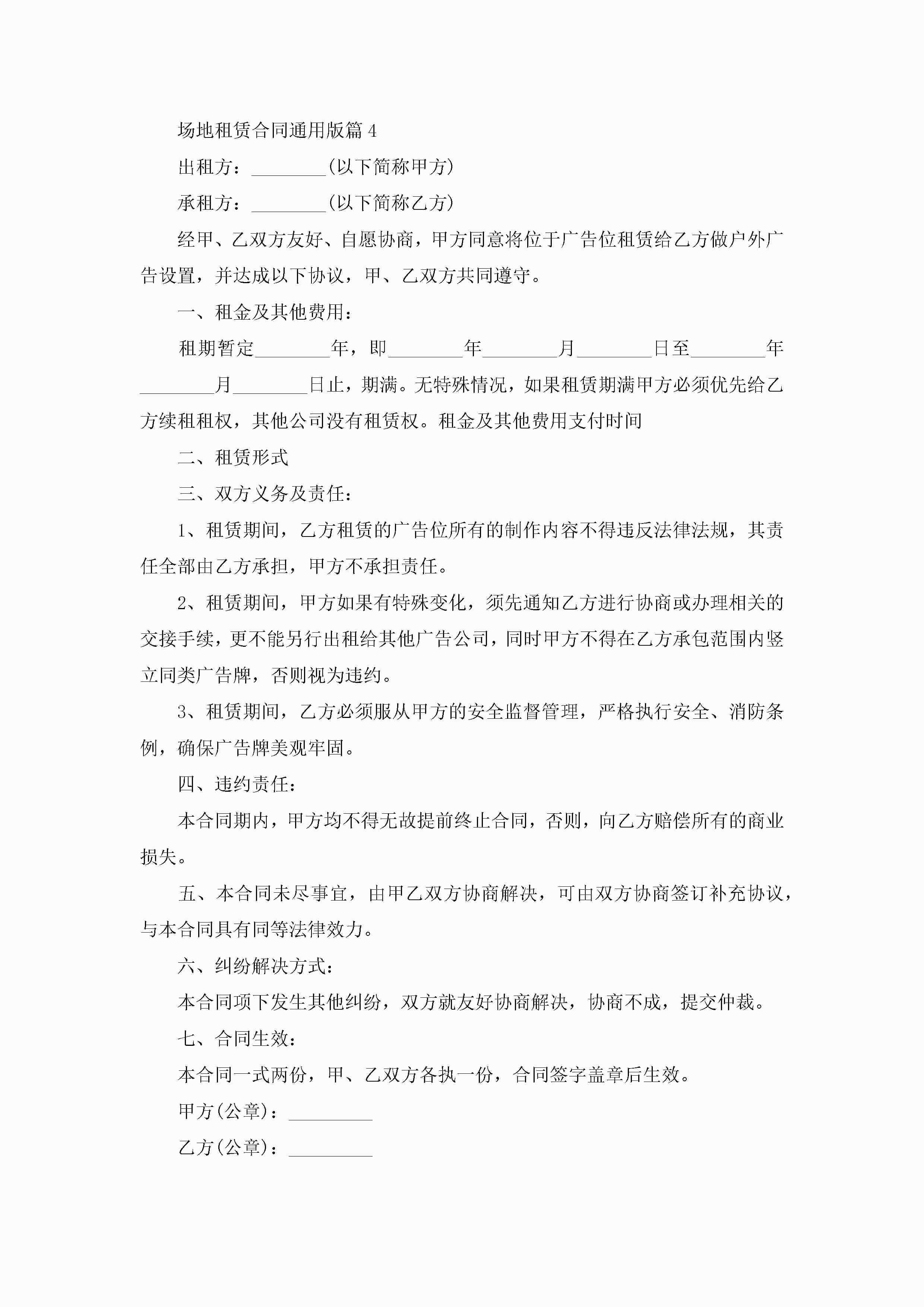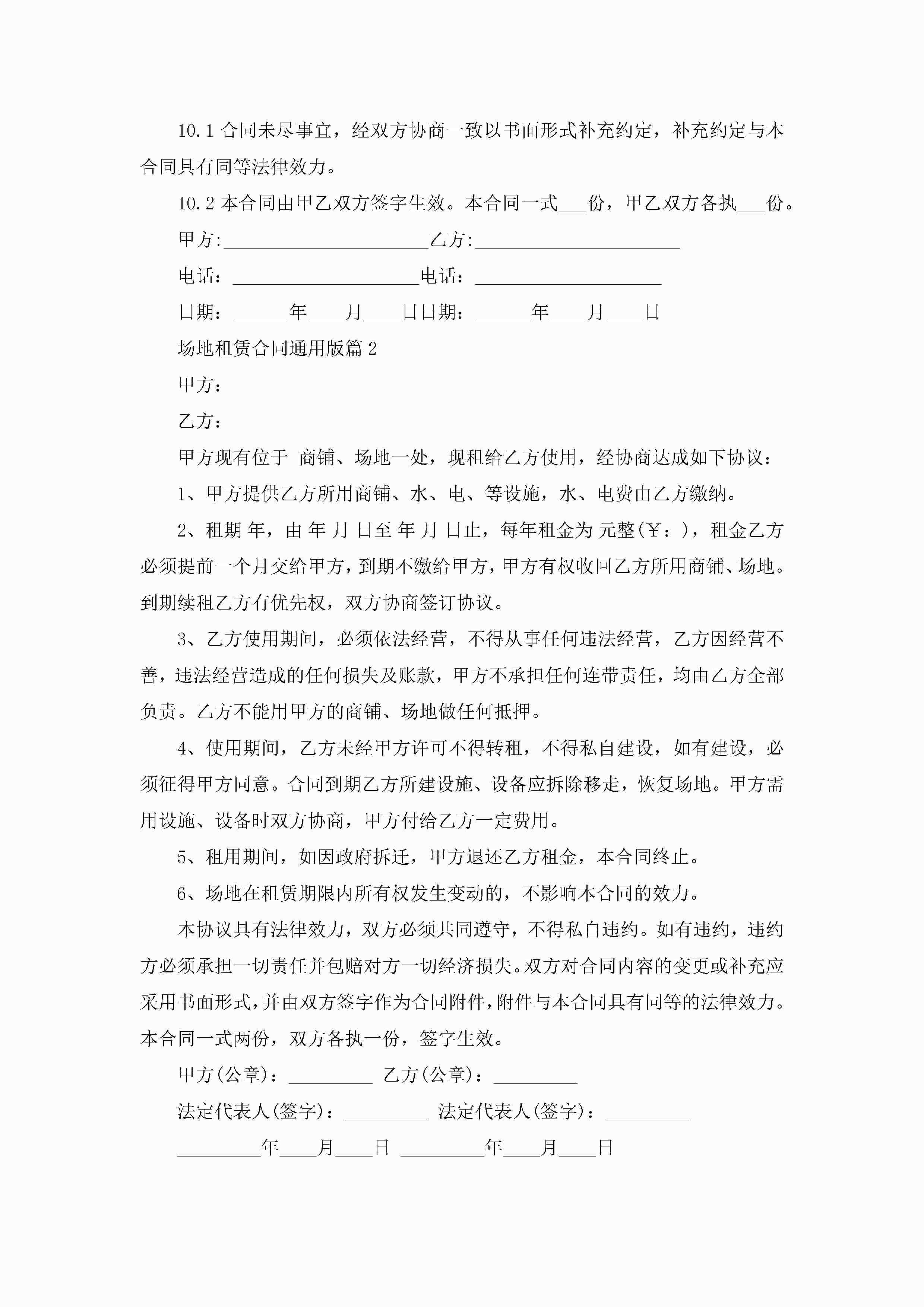 场地租赁合同通用版范文jugei3月23日 01:36发布关注193 场地租赁合同通用版范文此内容为付费资源,请付费后查看¥10.9 单篇文档限时特惠¥15个人会员开通企业会员开通立即下载无需登陆!可直接快捷下载单个模板付费资源© 版权声明THE ENDWord模板# 实用文档# 实用模板# 合同模板# 合同范本 如有问题,可点击最底部“联系我们”联系客服 分享QQ空间微博QQ好友海报分享复制链接收藏