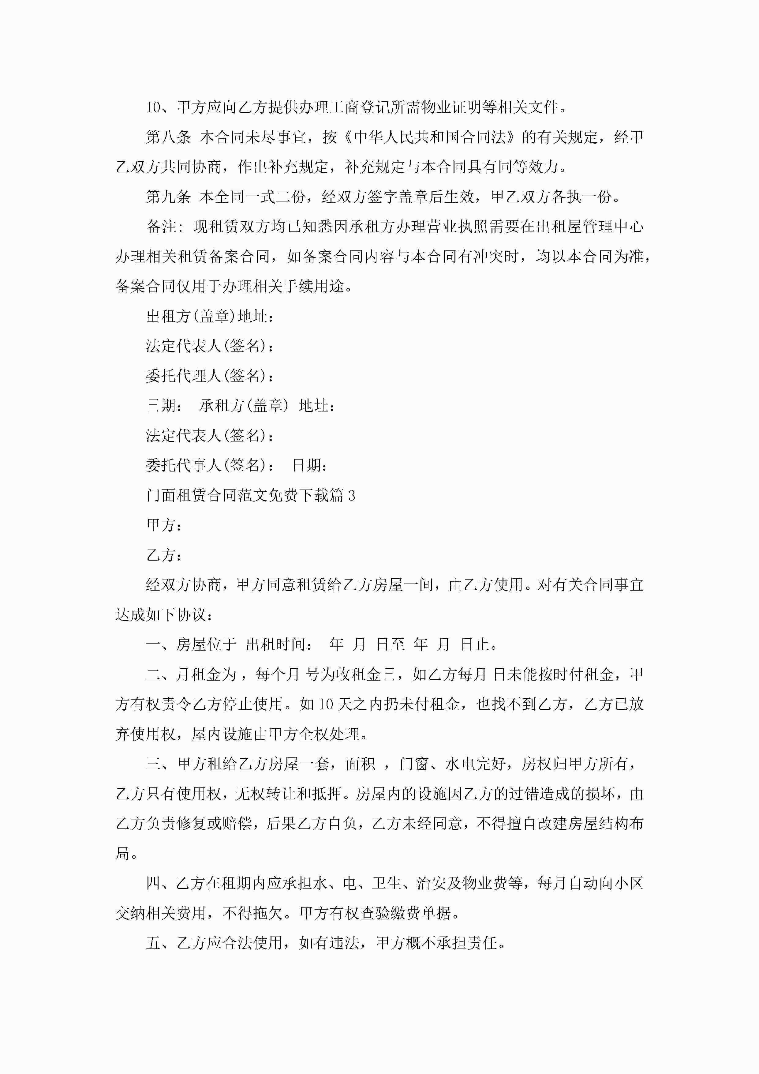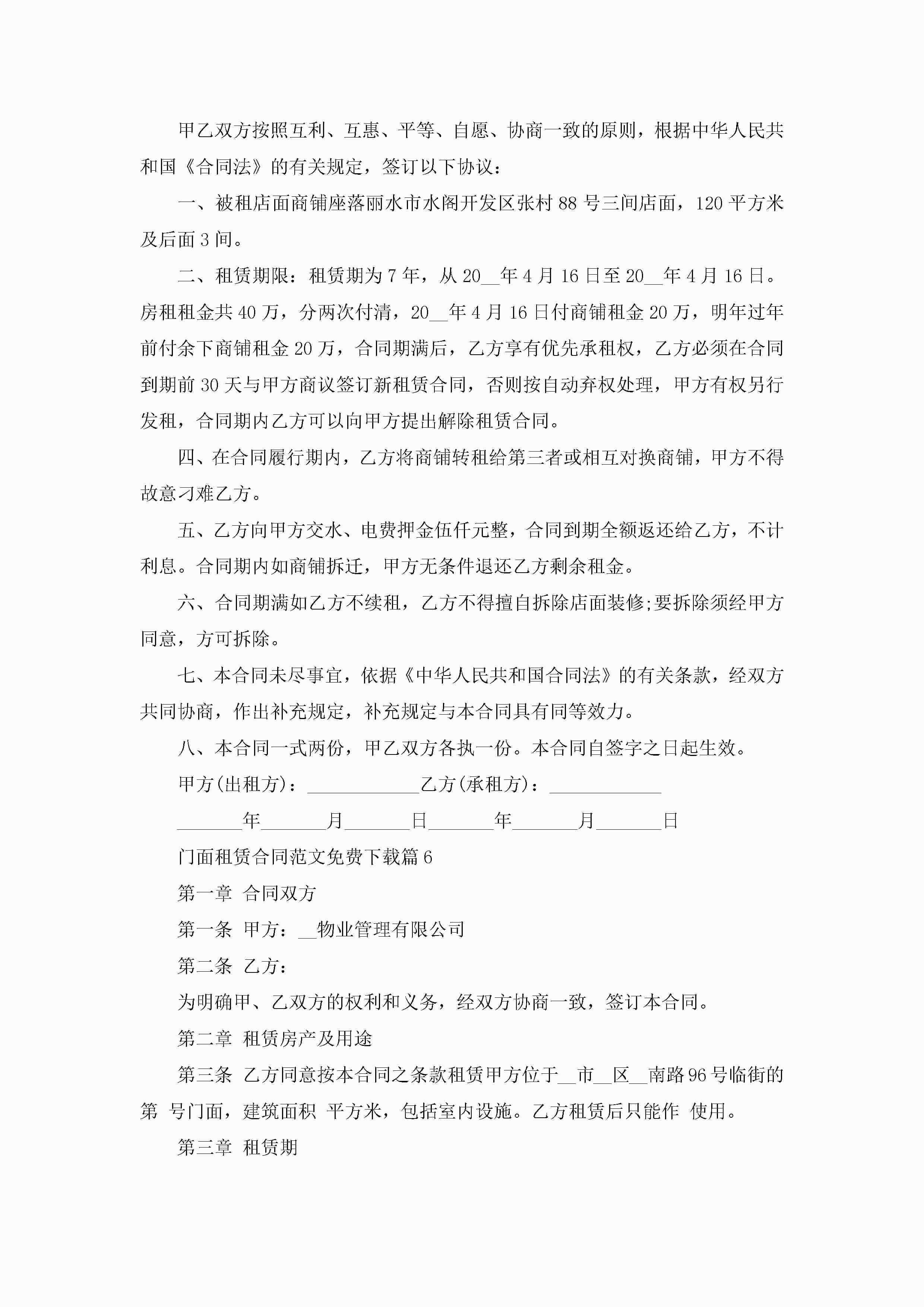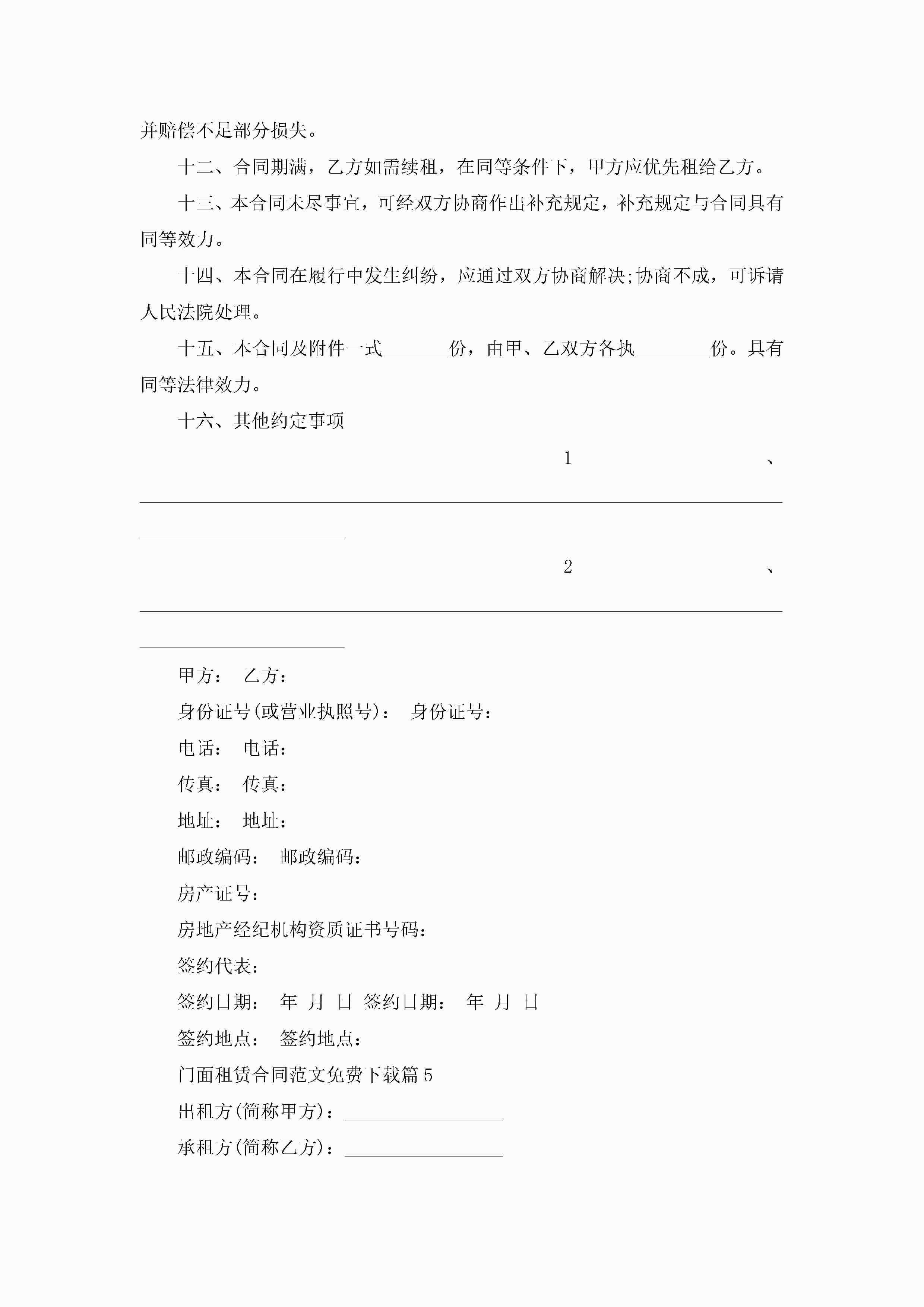 门面租赁合同最新范文免费下载jugei3月23日 01:36发布关注207 门面租赁合同最新范文免费下载此内容为付费资源,请付费后查看¥10.9 单篇文档限时特惠¥15个人会员开通企业会员开通立即下载无需登陆!可直接快捷下载单个模板付费资源© 版权声明THE ENDWord模板# 实用文档# 实用模板# 合同模板# 合同范本 如有问题,可点击最底部“联系我们”联系客服 分享QQ空间微博QQ好友海报分享复制链接收藏