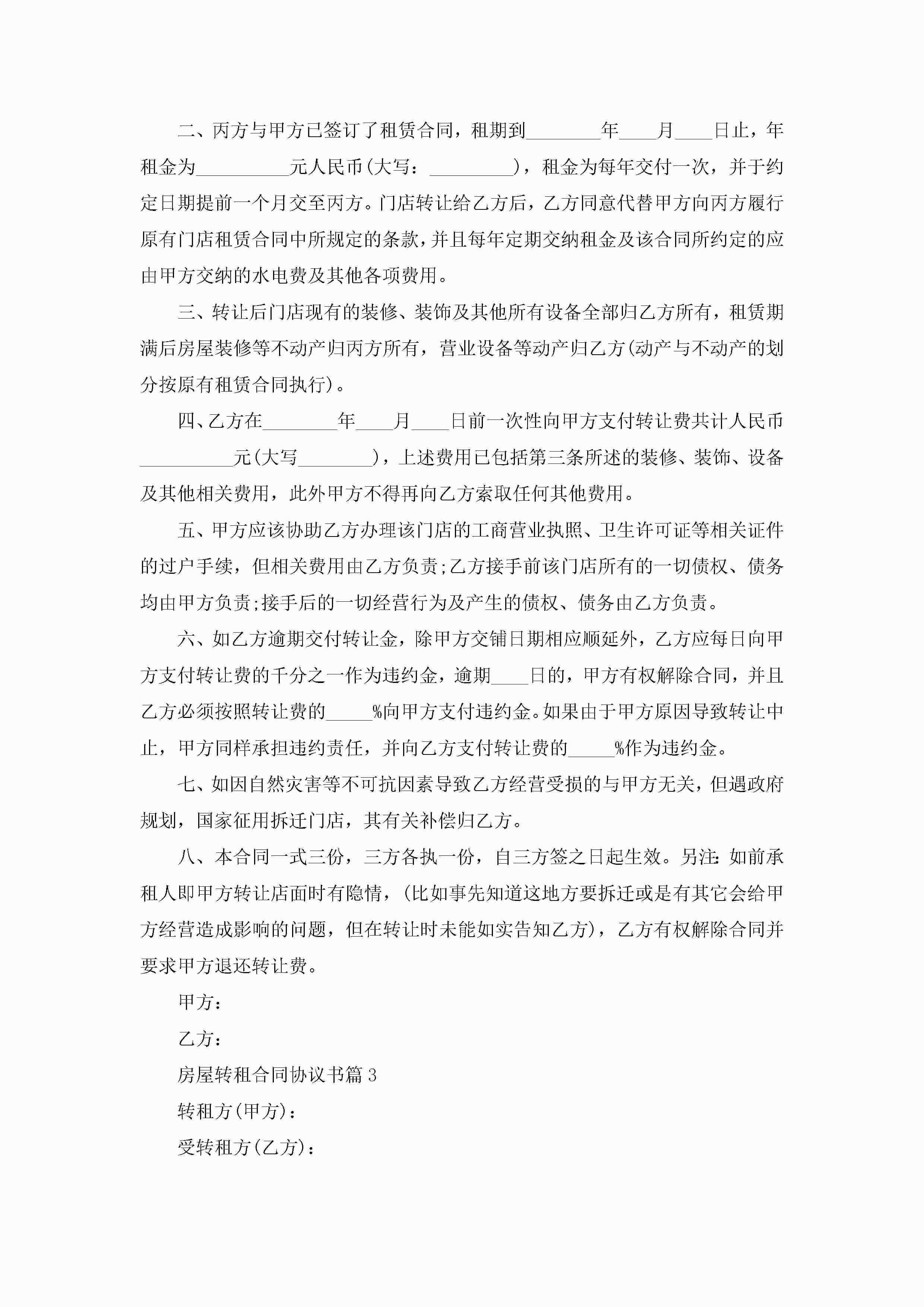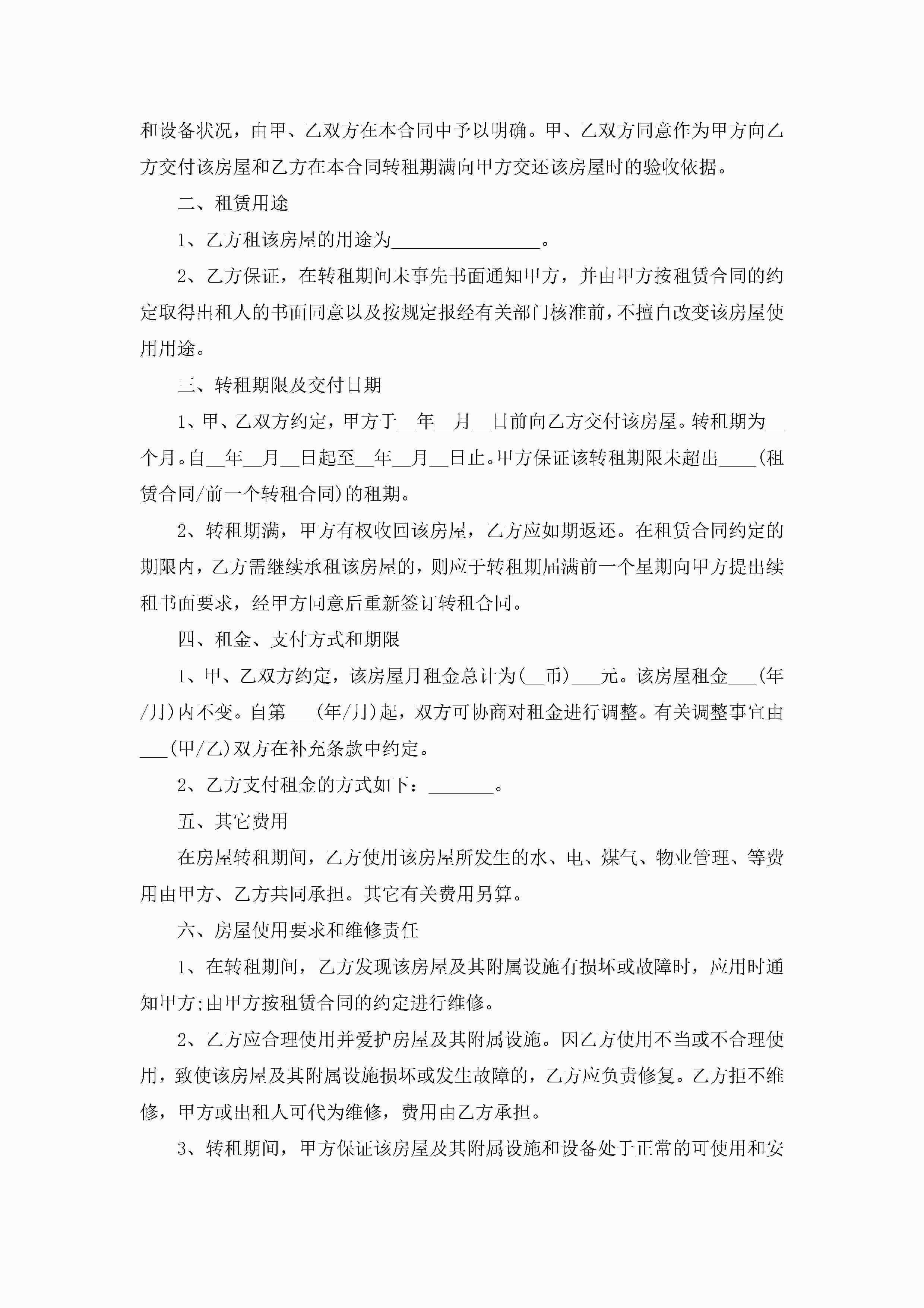 房屋转租合同协议书范文jugei3月23日 01:36发布关注209 房屋转租合同协议书范文此内容为付费资源,请付费后查看¥10.9 单篇文档限时特惠¥15个人会员开通企业会员开通立即下载无需登陆!可直接快捷下载单个模板付费资源© 版权声明THE ENDWord模板# 实用文档# 实用模板# 合同模板# 合同范本 如有问题,可点击最底部“联系我们”联系客服 分享QQ空间微博QQ好友海报分享复制链接收藏