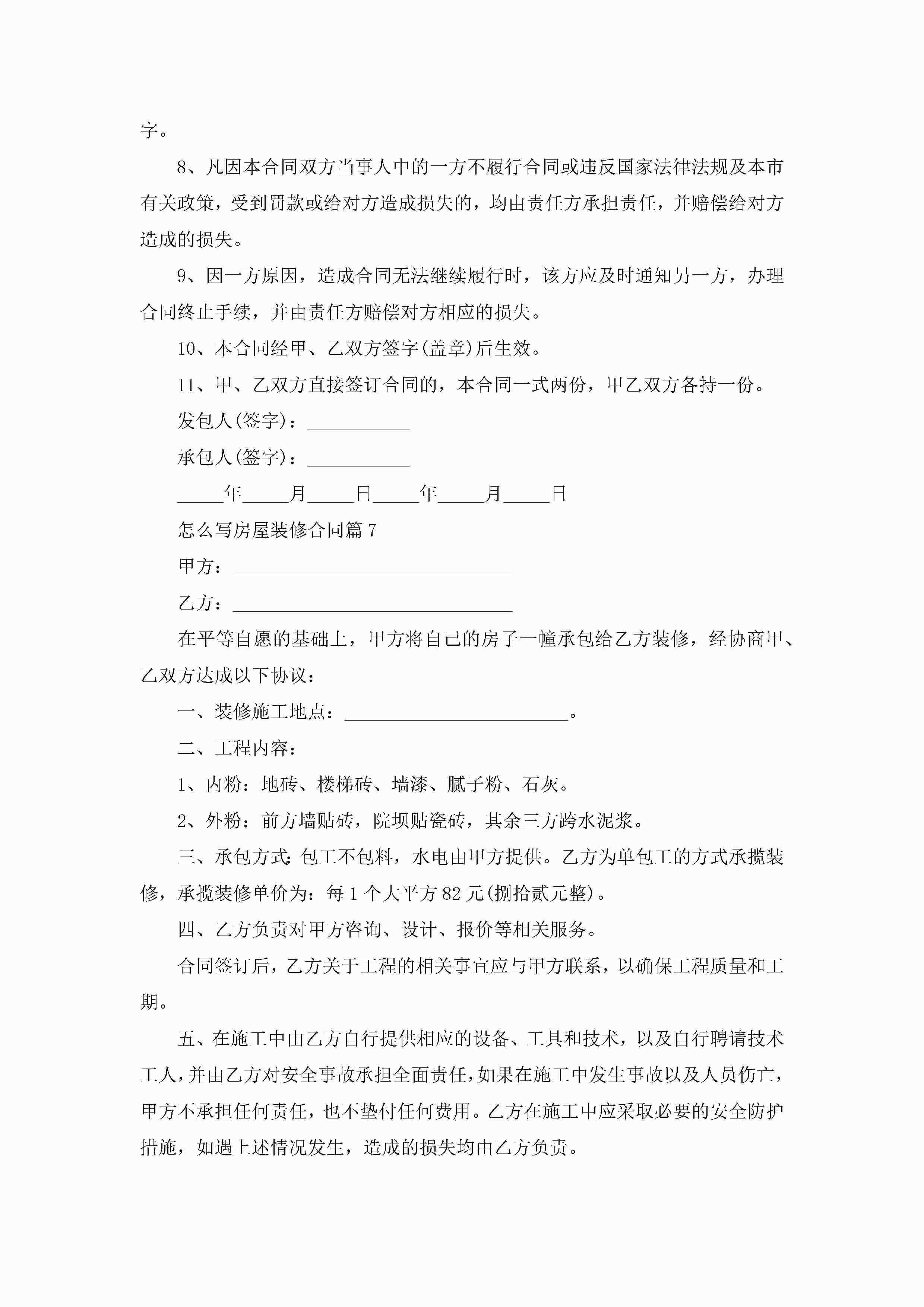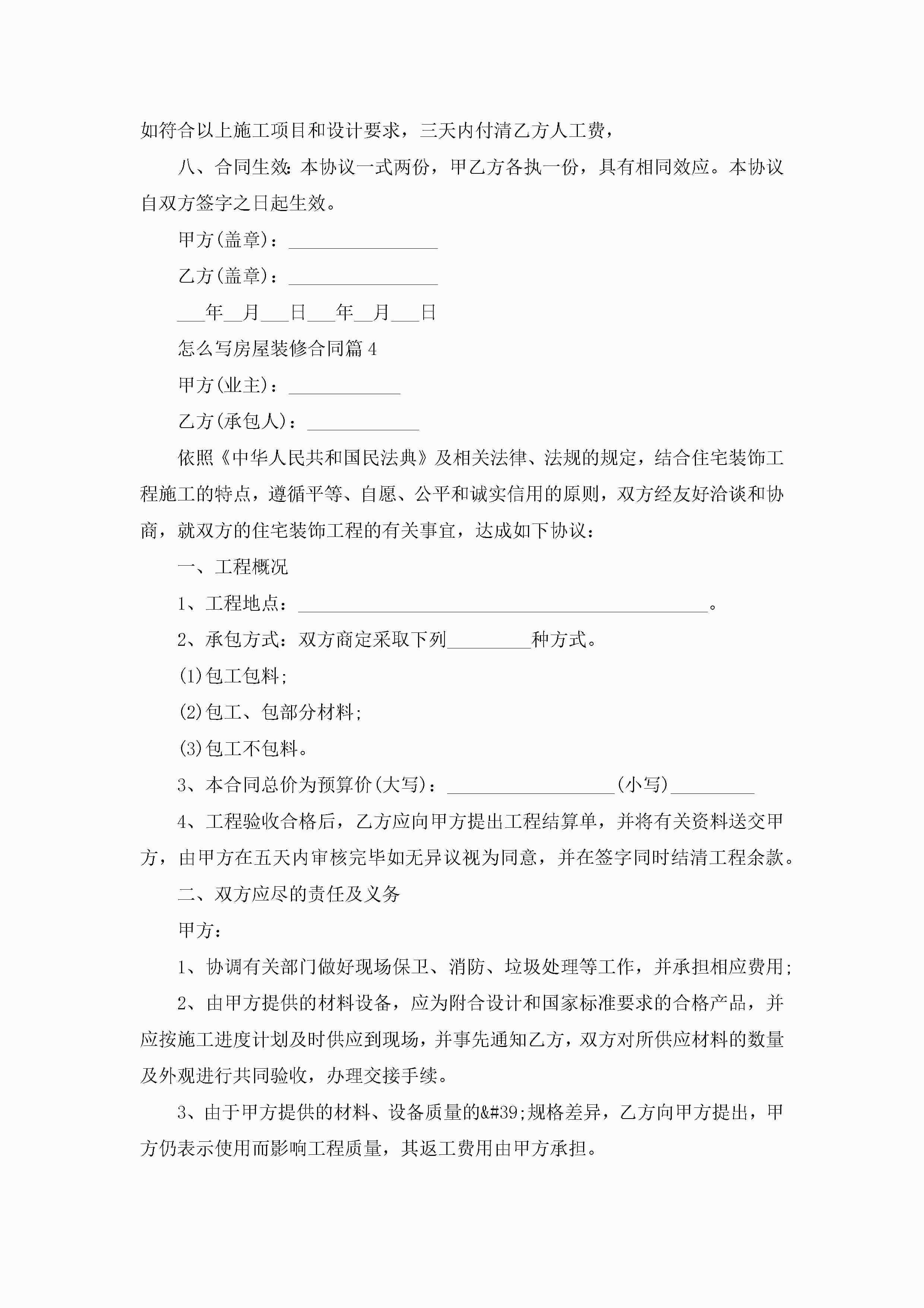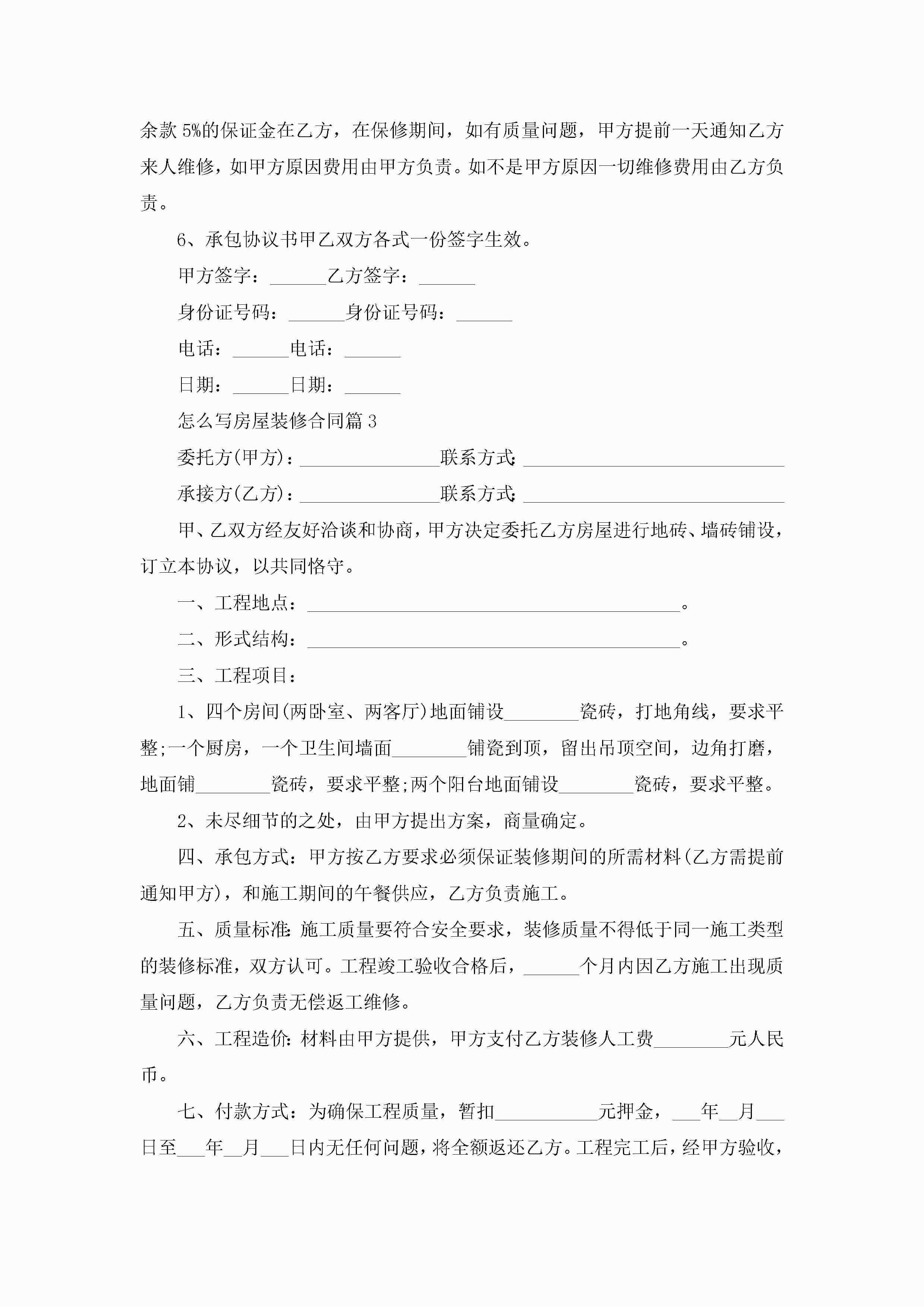 怎么写房屋装修合同范文jugei3月23日 01:36发布关注187 怎么写房屋装修合同范文此内容为付费资源,请付费后查看¥10.9 单篇文档限时特惠¥15个人会员开通企业会员开通立即下载无需登陆!可直接快捷下载单个模板付费资源© 版权声明THE ENDWord模板# 实用文档# 实用模板# 合同模板# 合同范本 如有问题,可点击最底部“联系我们”联系客服 分享QQ空间微博QQ好友海报分享复制链接收藏