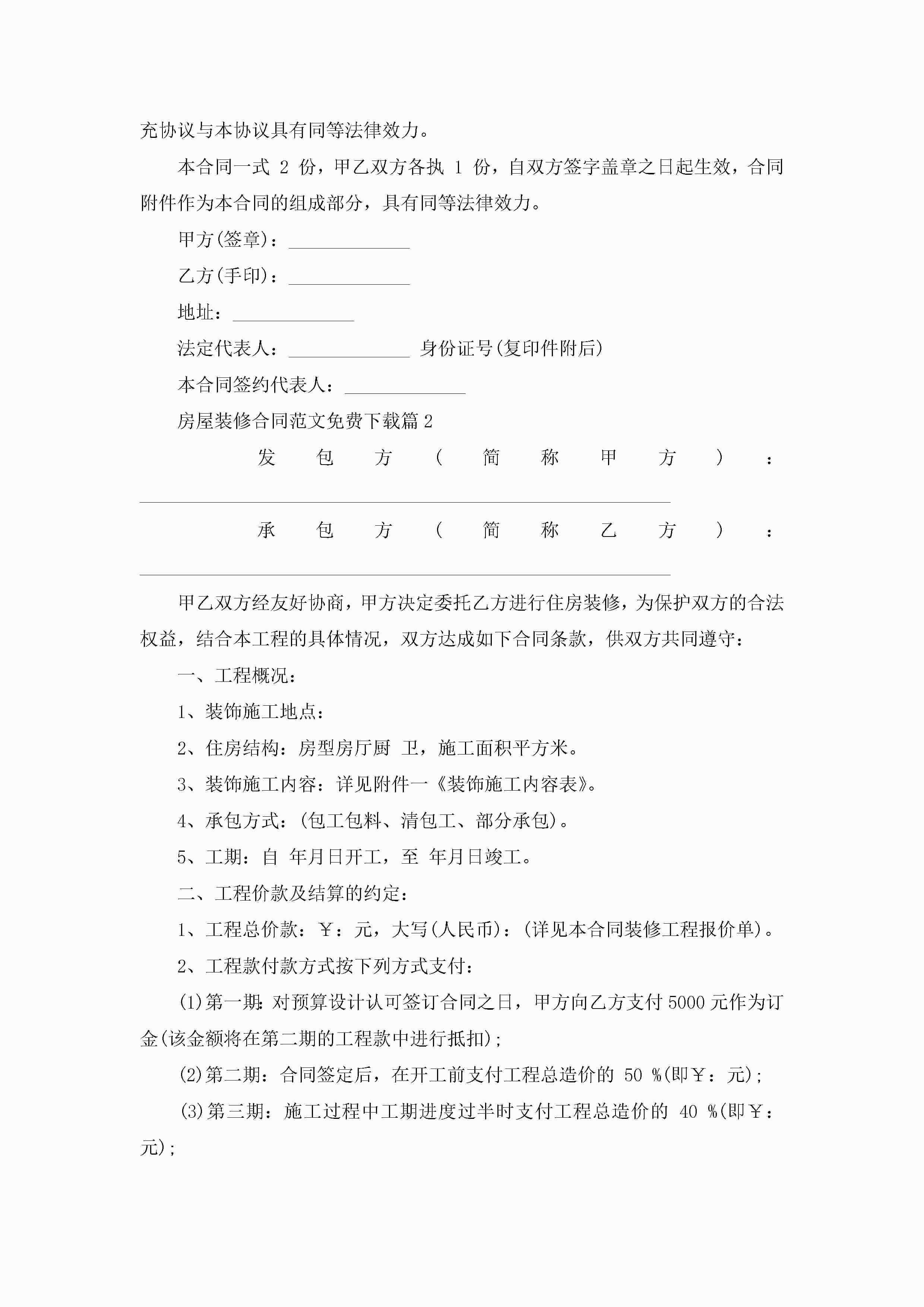 房屋装修合同最新范文免费下载jugei3月23日 01:36发布关注271 房屋装修合同最新范文免费下载此内容为付费资源,请付费后查看¥10.9 单篇文档限时特惠¥15个人会员开通企业会员开通立即下载无需登陆!可直接快捷下载单个模板付费资源© 版权声明THE ENDWord模板# 实用文档# 实用模板# 合同模板# 合同范本 如有问题,可点击最底部“联系我们”联系客服 分享QQ空间微博QQ好友海报分享复制链接收藏