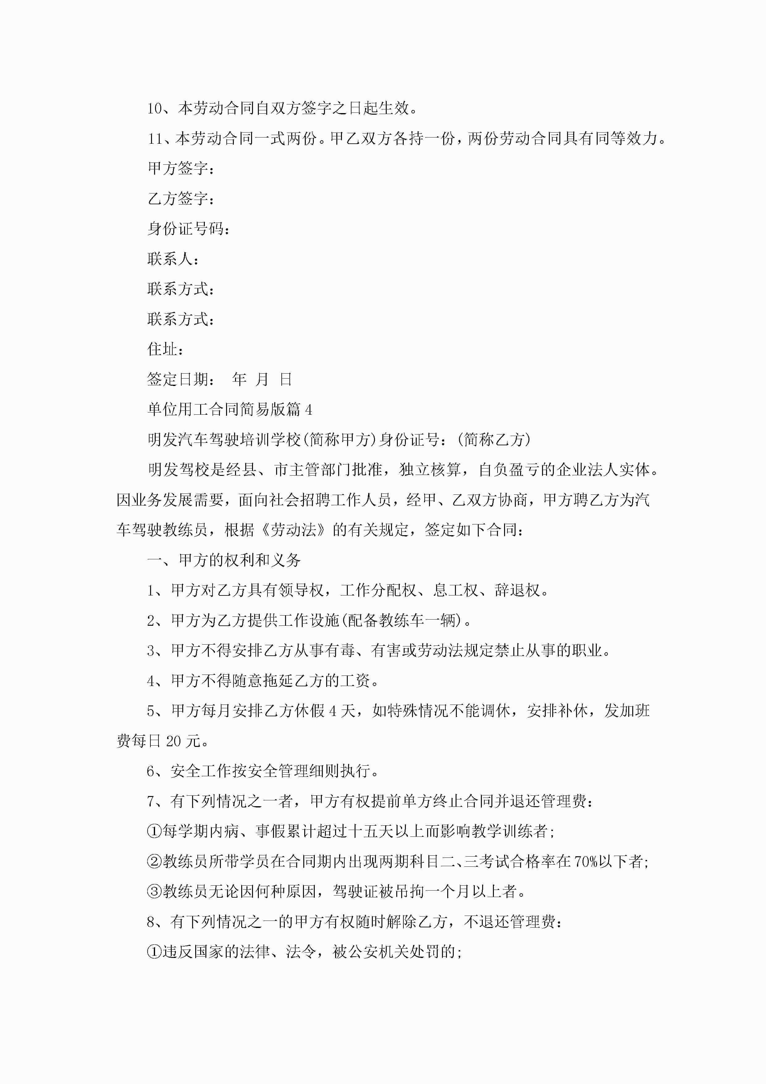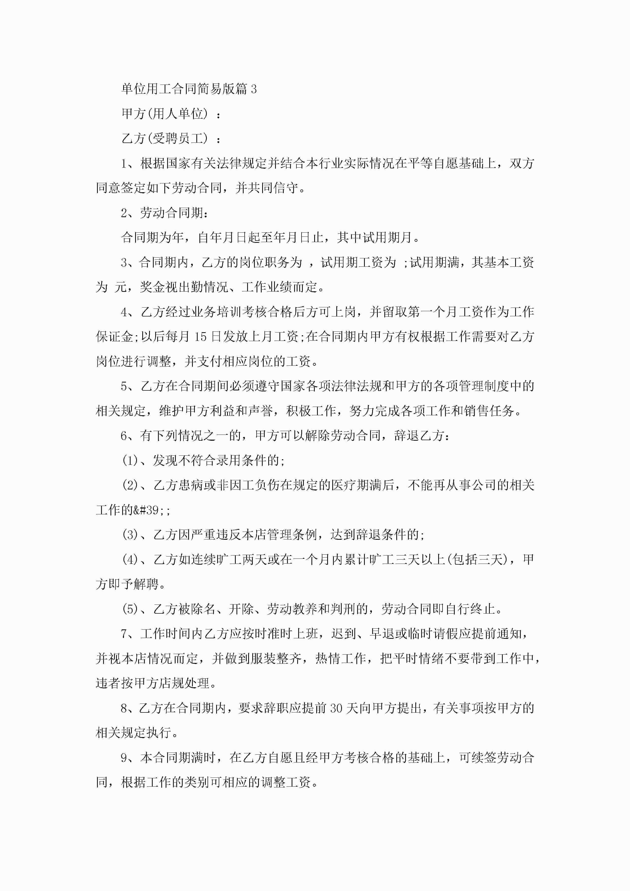 单位用工合同范文简易版jugei3月23日 01:36发布关注269 单位用工合同范文简易版此内容为付费资源,请付费后查看¥10.9 单篇文档限时特惠¥15个人会员开通企业会员开通立即下载无需登陆!可直接快捷下载单个模板付费资源© 版权声明THE ENDWord模板# 实用文档# 实用模板# 合同模板# 合同范本 如有问题,可点击最底部“联系我们”联系客服 分享QQ空间微博QQ好友海报分享复制链接收藏