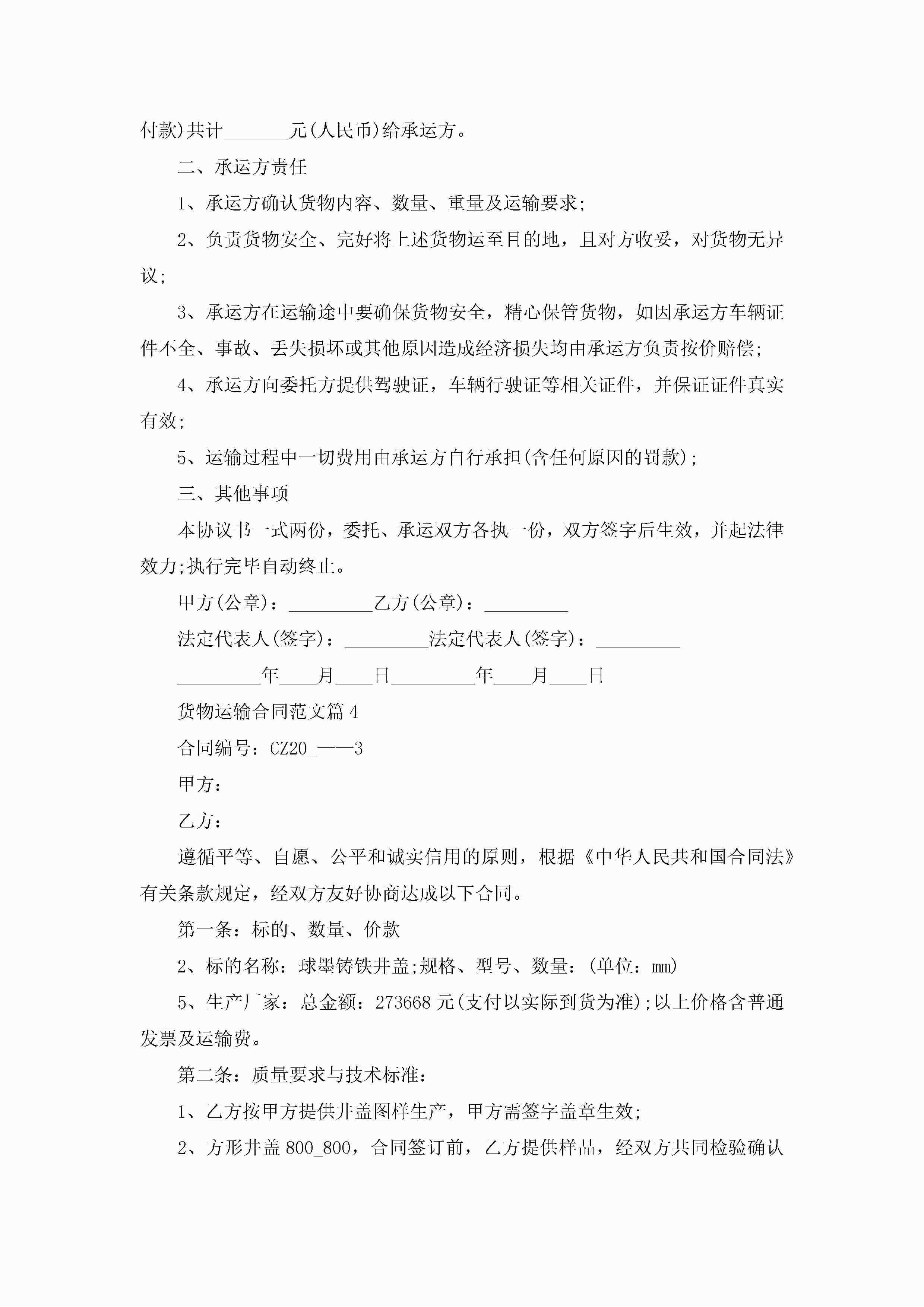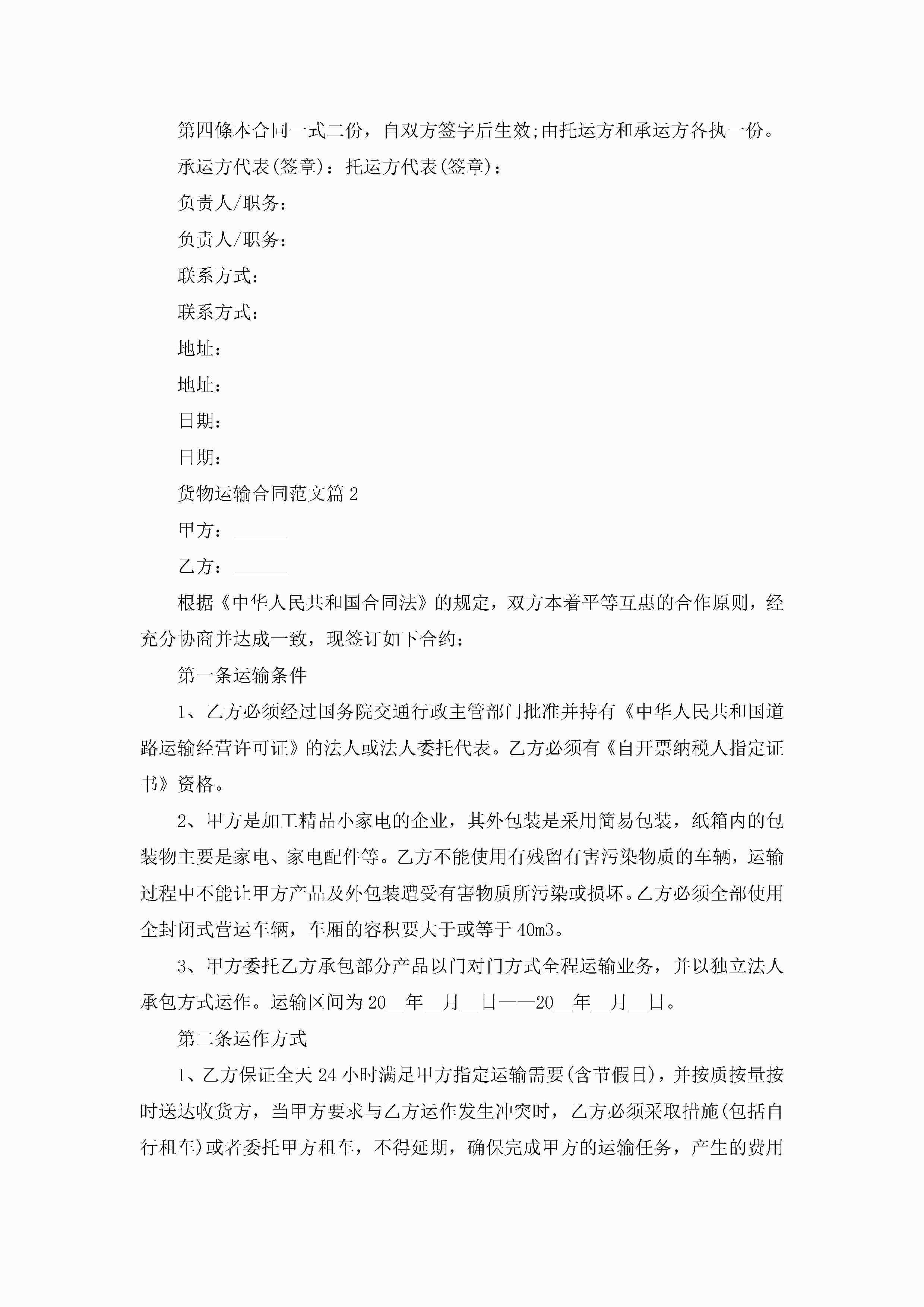 货物运输合同范文模板jugei3月23日 01:36发布关注282 货物运输合同范文模板此内容为付费资源,请付费后查看¥10.9 单篇文档限时特惠¥15个人会员开通企业会员开通立即下载无需登陆!可直接快捷下载单个模板付费资源© 版权声明THE ENDWord模板# 实用文档# 实用模板# 合同模板# 合同范本 如有问题,可点击最底部“联系我们”联系客服 分享QQ空间微博QQ好友海报分享复制链接收藏