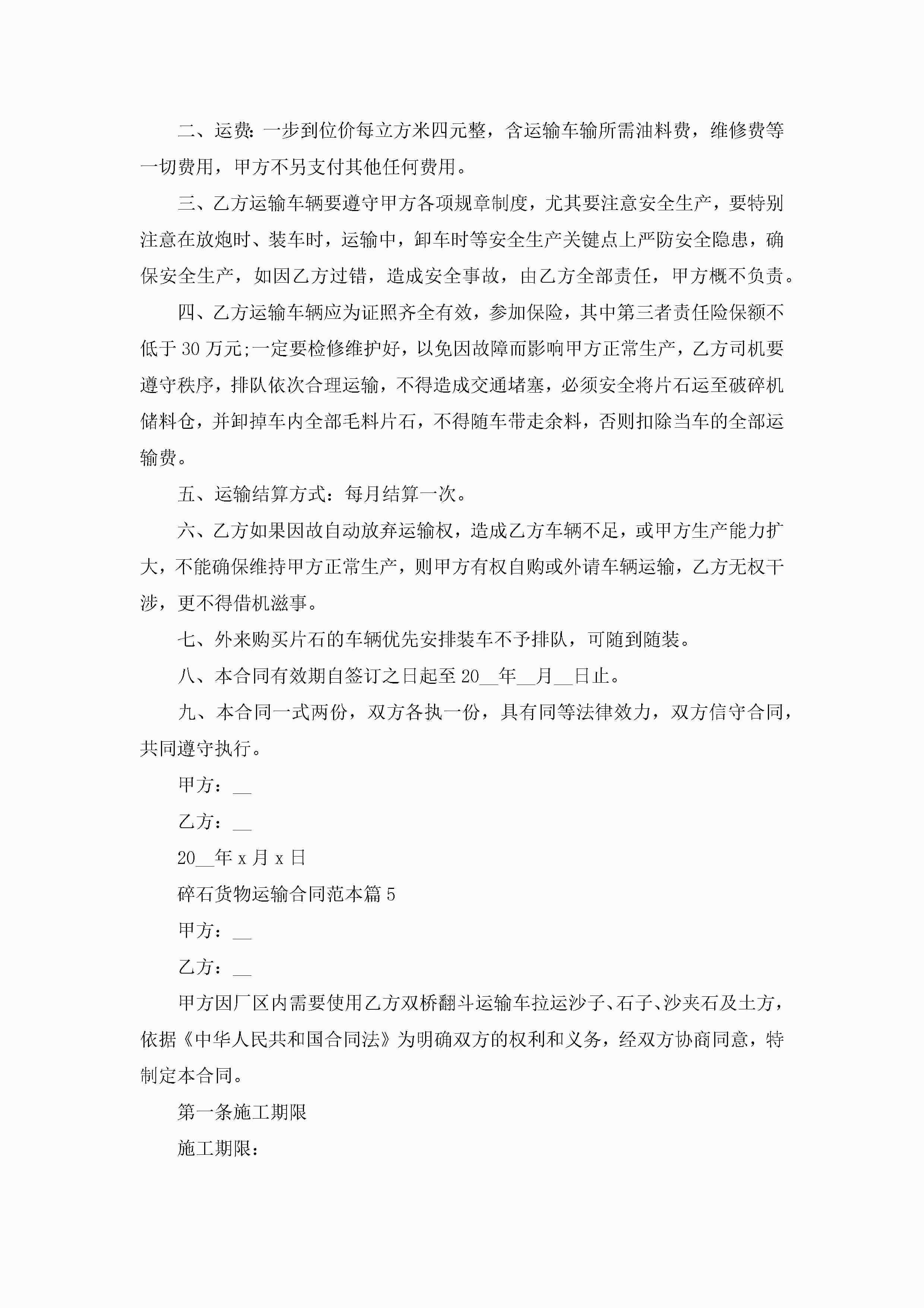 碎石货物运输合同最新范本jugei3月23日 01:36发布关注282 碎石货物运输合同最新范本此内容为付费资源,请付费后查看¥10.9 单篇文档限时特惠¥15个人会员开通企业会员开通立即下载无需登陆!可直接快捷下载单个模板付费资源© 版权声明THE ENDWord模板# 实用文档# 实用模板# 合同模板# 合同范本 如有问题,可点击最底部“联系我们”联系客服 分享QQ空间微博QQ好友海报分享复制链接收藏