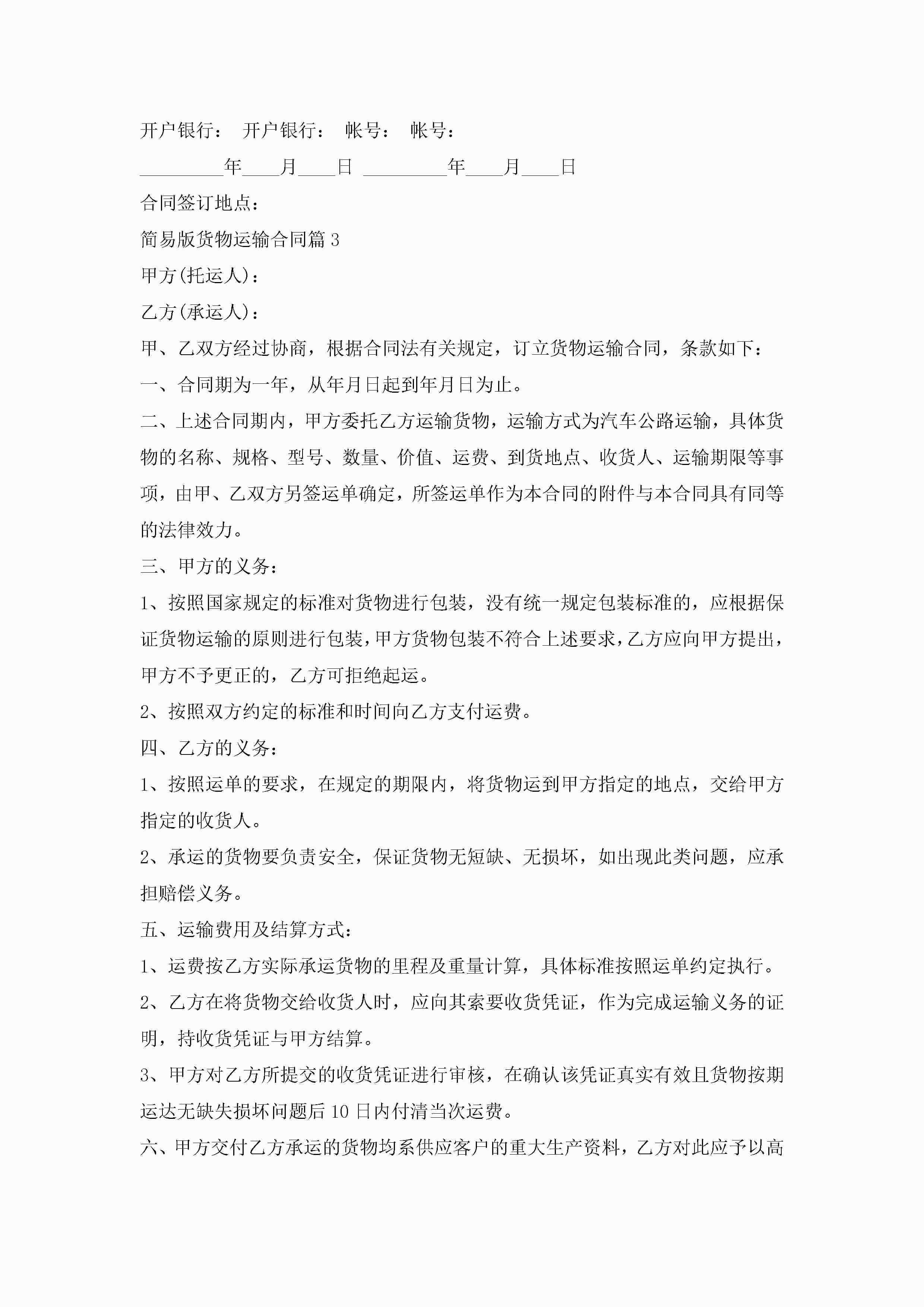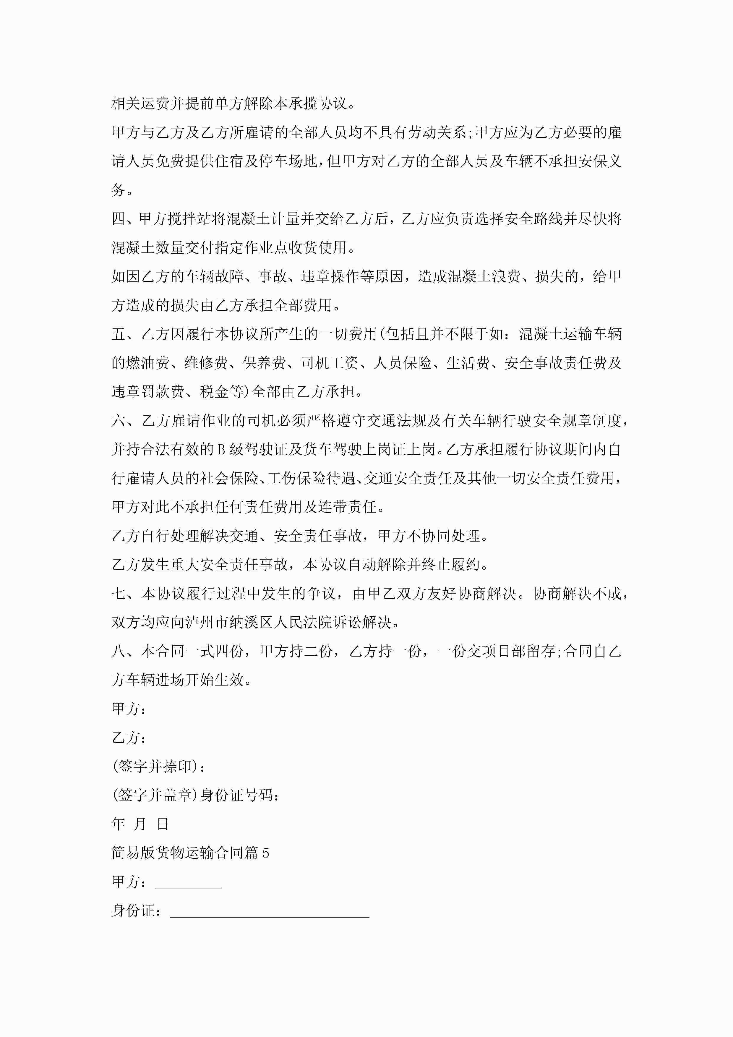简易版货物运输合同范文jugei3月23日 01:36发布关注266 简易版货物运输合同范文此内容为付费资源,请付费后查看¥10.9 单篇文档限时特惠¥15个人会员开通企业会员开通立即下载无需登陆!可直接快捷下载单个模板付费资源© 版权声明THE ENDWord模板# 实用文档# 实用模板# 合同模板# 合同范本 如有问题,可点击最底部“联系我们”联系客服 分享QQ空间微博QQ好友海报分享复制链接收藏