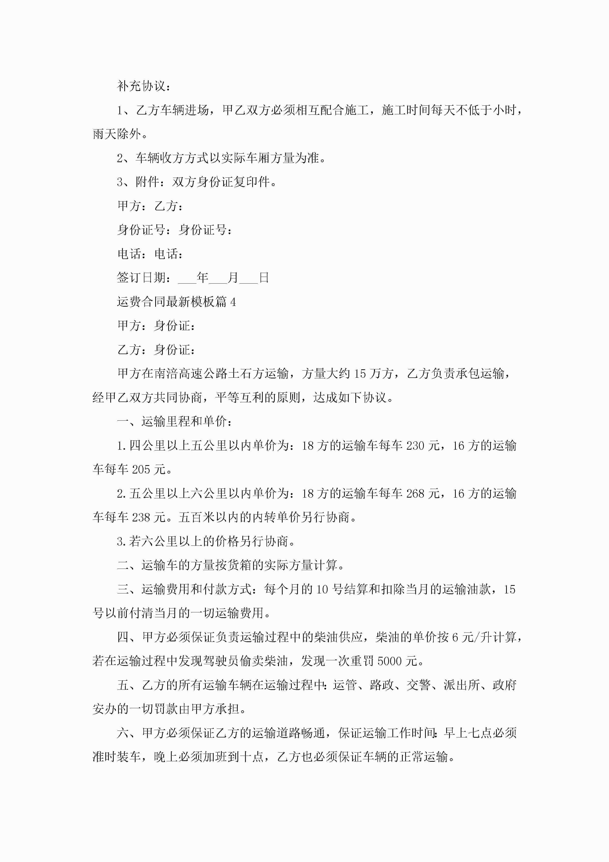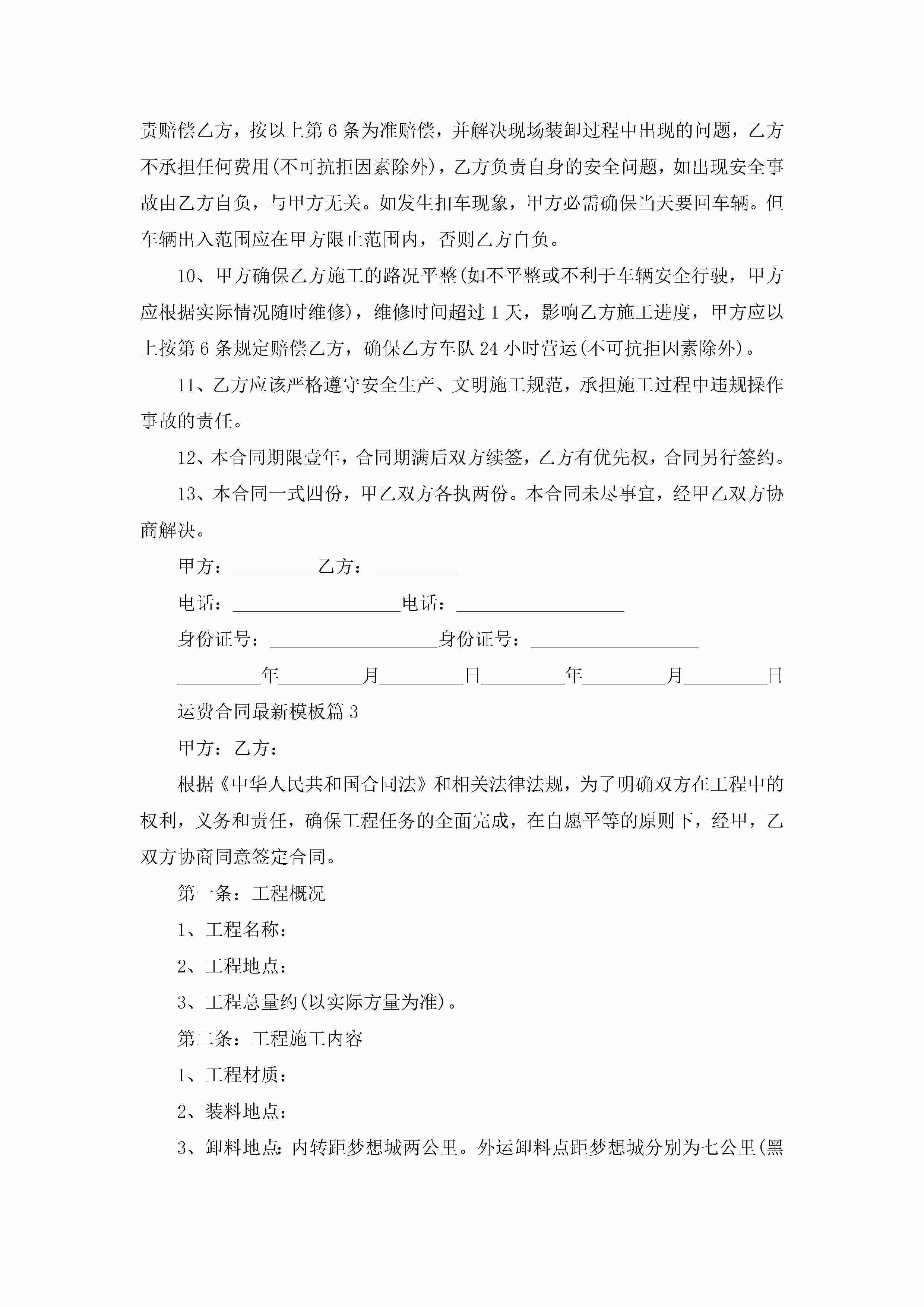 运费合同最新范文模板jugei3月23日 01:37发布关注223 运费合同最新范文模板此内容为付费资源,请付费后查看¥10.9 单篇文档限时特惠¥15个人会员开通企业会员开通立即下载无需登陆!可直接快捷下载单个模板付费资源© 版权声明THE ENDWord模板# 实用文档# 实用模板# 合同模板# 合同范本 如有问题,可点击最底部“联系我们”联系客服 分享QQ空间微博QQ好友海报分享复制链接收藏