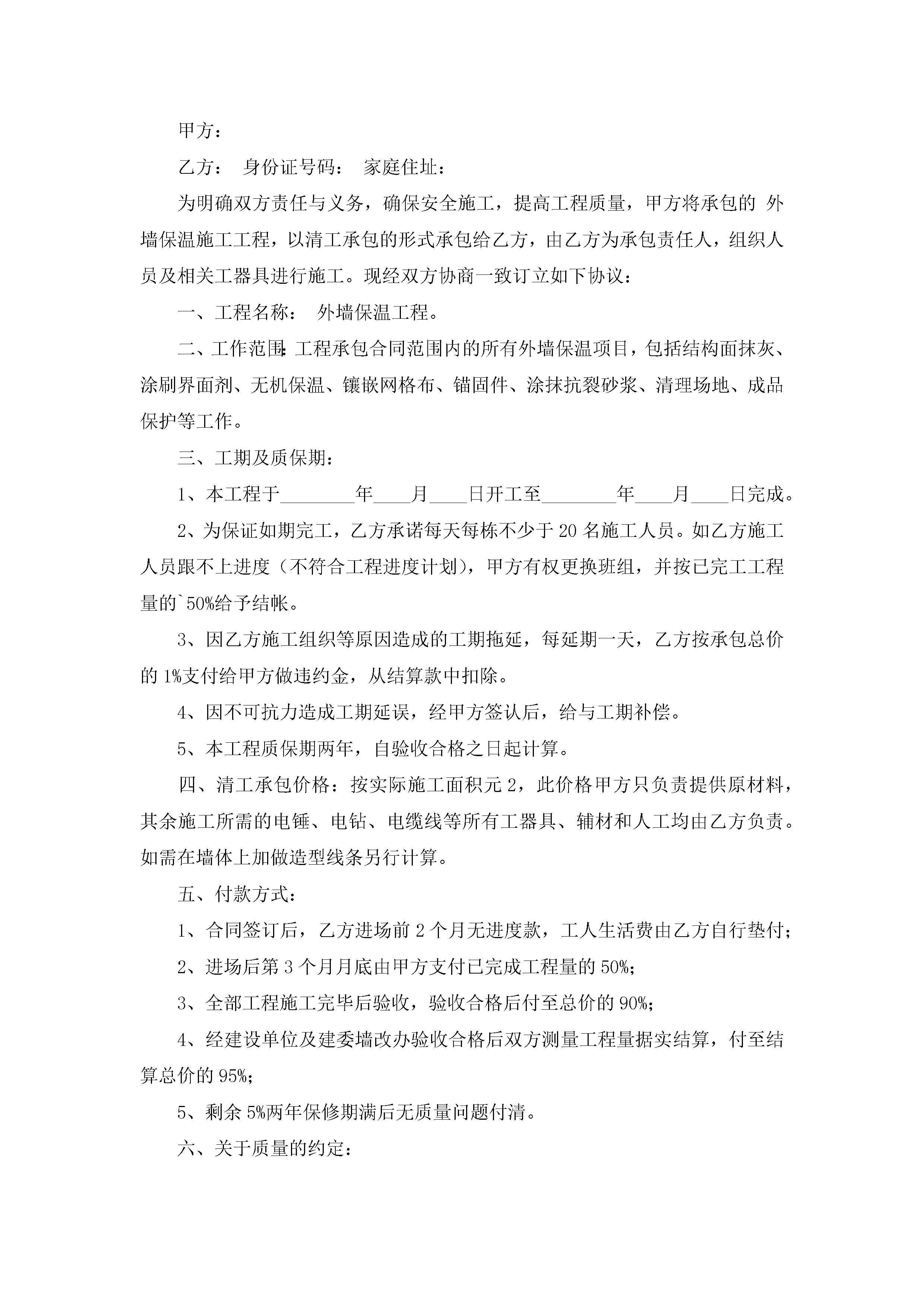 外墙保温合同电子可打印8篇jugei3月23日 01:37发布关注191 外墙保温合同电子可打印8篇此内容为付费资源,请付费后查看¥10.9 单篇文档限时特惠¥15个人会员开通企业会员开通立即下载无需登陆!可直接快捷下载单个模板付费资源© 版权声明THE ENDWord模板# 实用文档# 实用模板# 合同模板# 合同范本 如有问题,可点击最底部“联系我们”联系客服 分享QQ空间微博QQ好友海报分享复制链接收藏