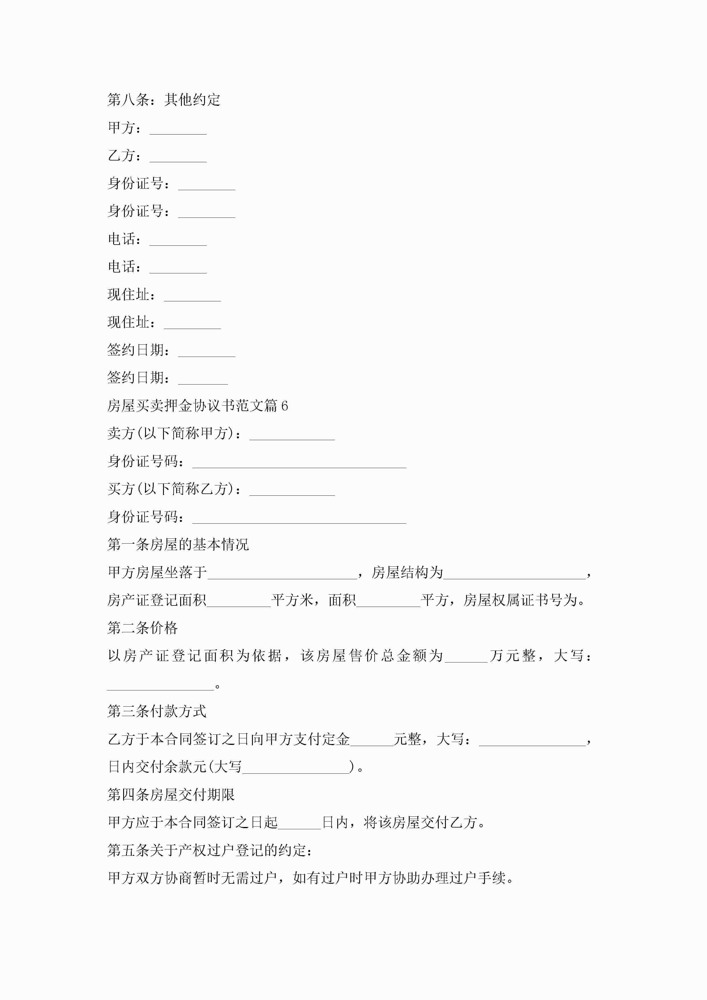 房屋买卖押金协议书范文模板jugei3月23日 01:37发布关注194 房屋买卖押金协议书范文模板此内容为付费资源,请付费后查看¥10.9 单篇文档限时特惠¥15个人会员开通企业会员开通立即下载无需登陆!可直接快捷下载单个模板付费资源© 版权声明THE ENDWord模板# 实用文档# 实用模板# 合同模板# 合同范本 如有问题,可点击最底部“联系我们”联系客服 分享QQ空间微博QQ好友海报分享复制链接收藏