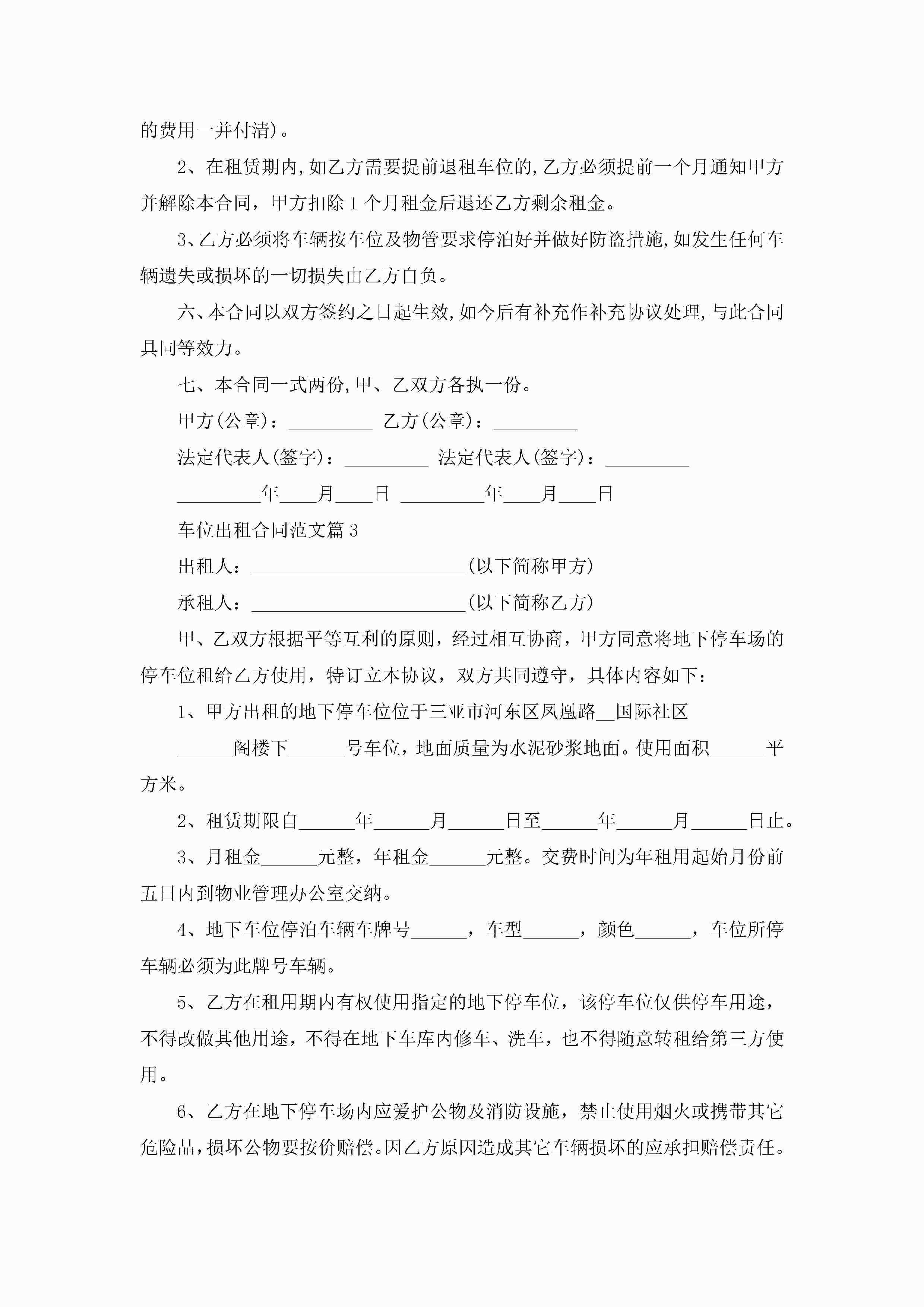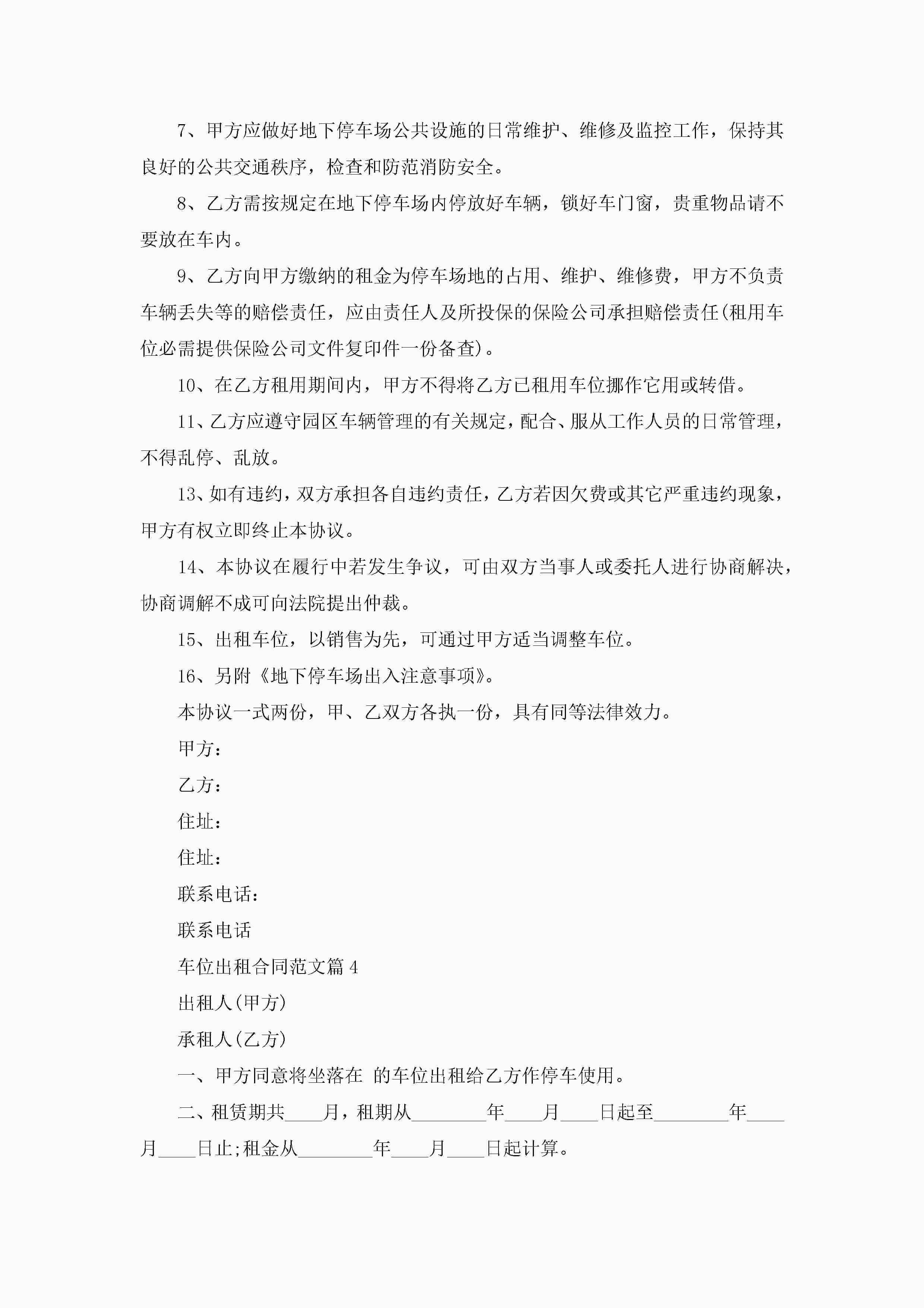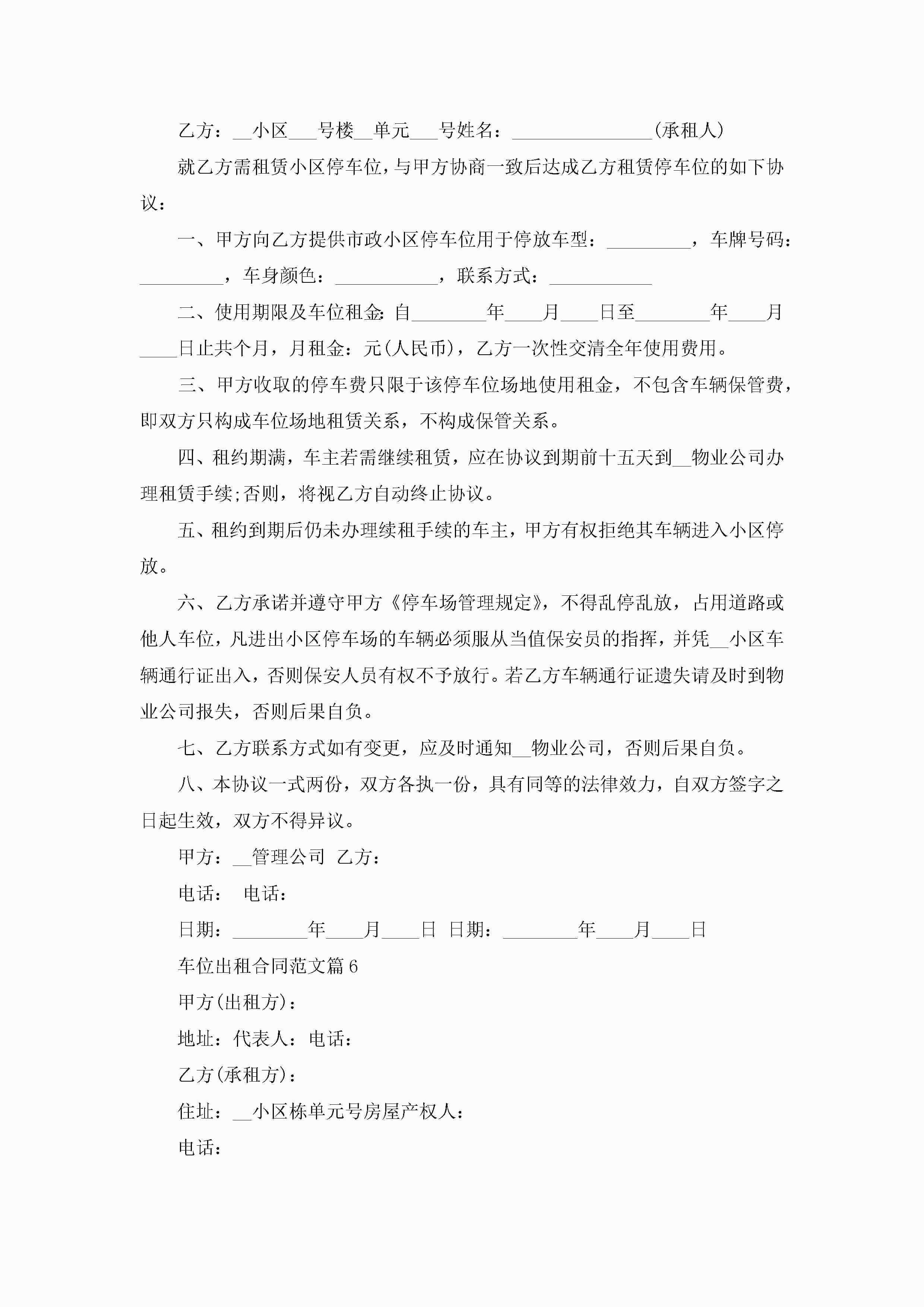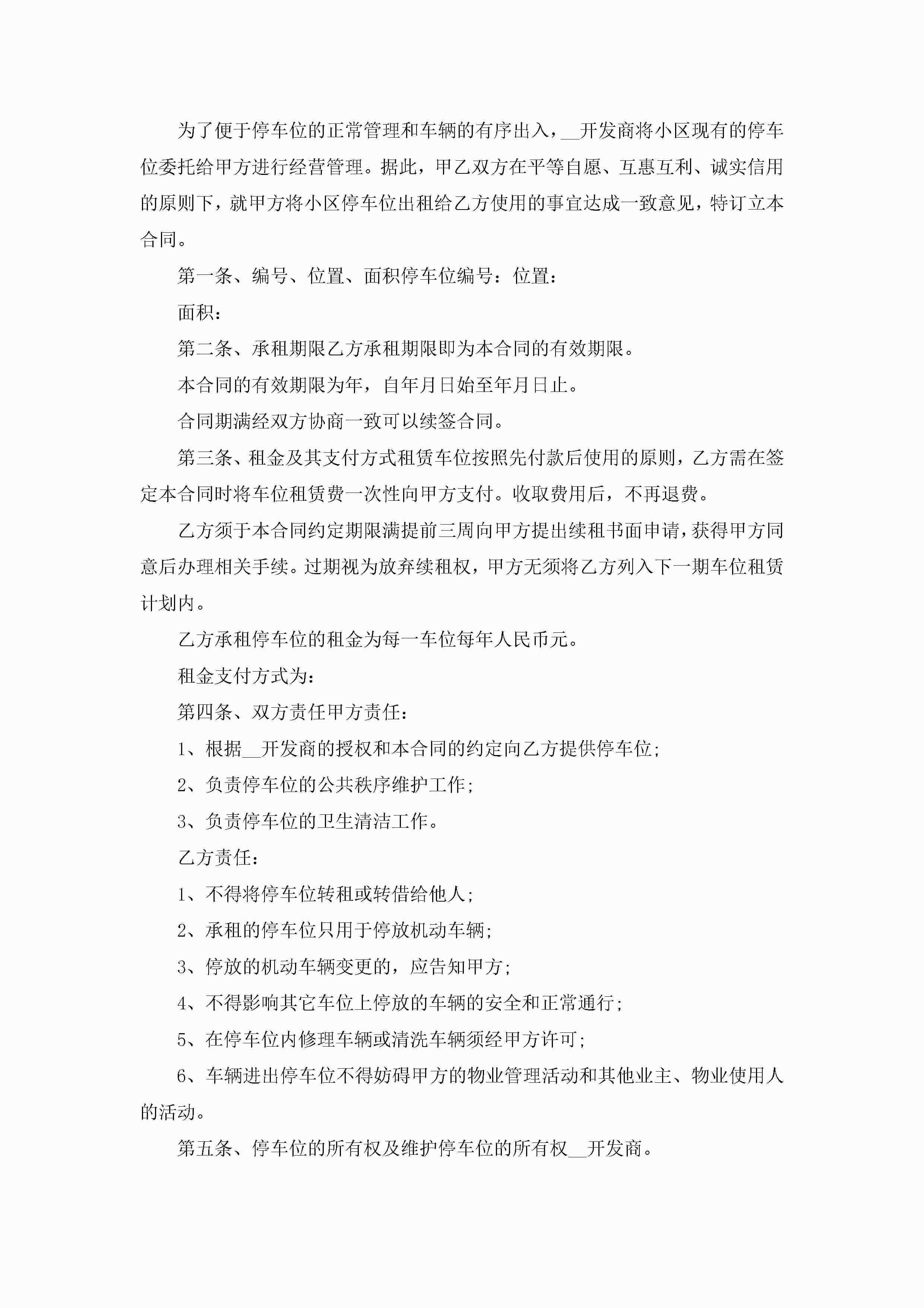 车位出租合同范文模板jugei3月23日 01:37发布关注187 车位出租合同范文模板此内容为付费资源,请付费后查看¥10.9 单篇文档限时特惠¥15个人会员开通企业会员开通立即下载无需登陆!可直接快捷下载单个模板付费资源© 版权声明THE ENDWord模板# 实用文档# 实用模板# 合同模板# 合同范本 如有问题,可点击最底部“联系我们”联系客服 分享QQ空间微博QQ好友海报分享复制链接收藏