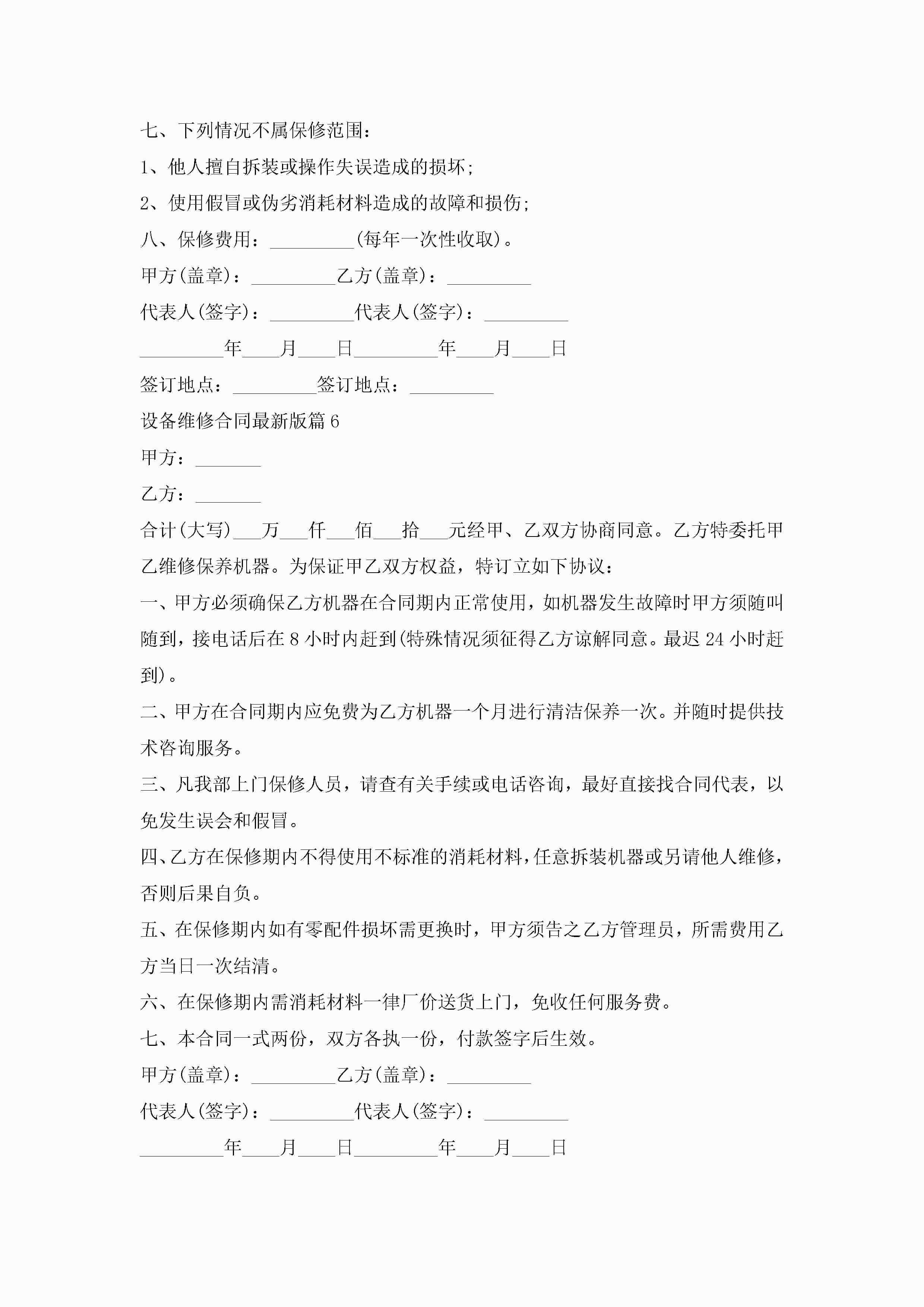 设备维修合同范文最新版jugei3月23日 01:37发布关注188 设备维修合同范文最新版此内容为付费资源,请付费后查看¥10.9 单篇文档限时特惠¥15个人会员开通企业会员开通立即下载无需登陆!可直接快捷下载单个模板付费资源© 版权声明THE ENDWord模板# 实用文档# 实用模板# 合同模板# 合同范本 如有问题,可点击最底部“联系我们”联系客服 分享QQ空间微博QQ好友海报分享复制链接收藏