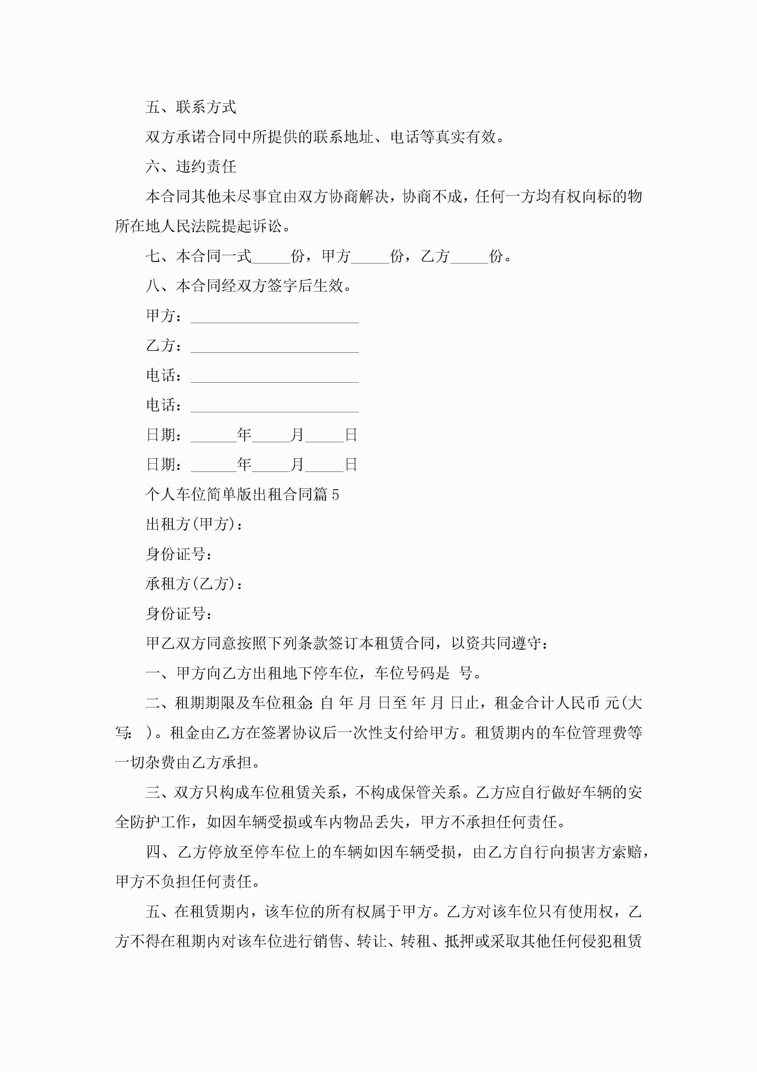 个人车位简单版出租合同范文jugei3月23日 01:37发布关注229 个人车位简单版出租合同范文此内容为付费资源,请付费后查看¥10.9 单篇文档限时特惠¥15个人会员开通企业会员开通立即下载无需登陆!可直接快捷下载单个模板付费资源© 版权声明THE ENDWord模板# 实用文档# 实用模板# 合同模板# 合同范本 如有问题,可点击最底部“联系我们”联系客服 分享QQ空间微博QQ好友海报分享复制链接收藏