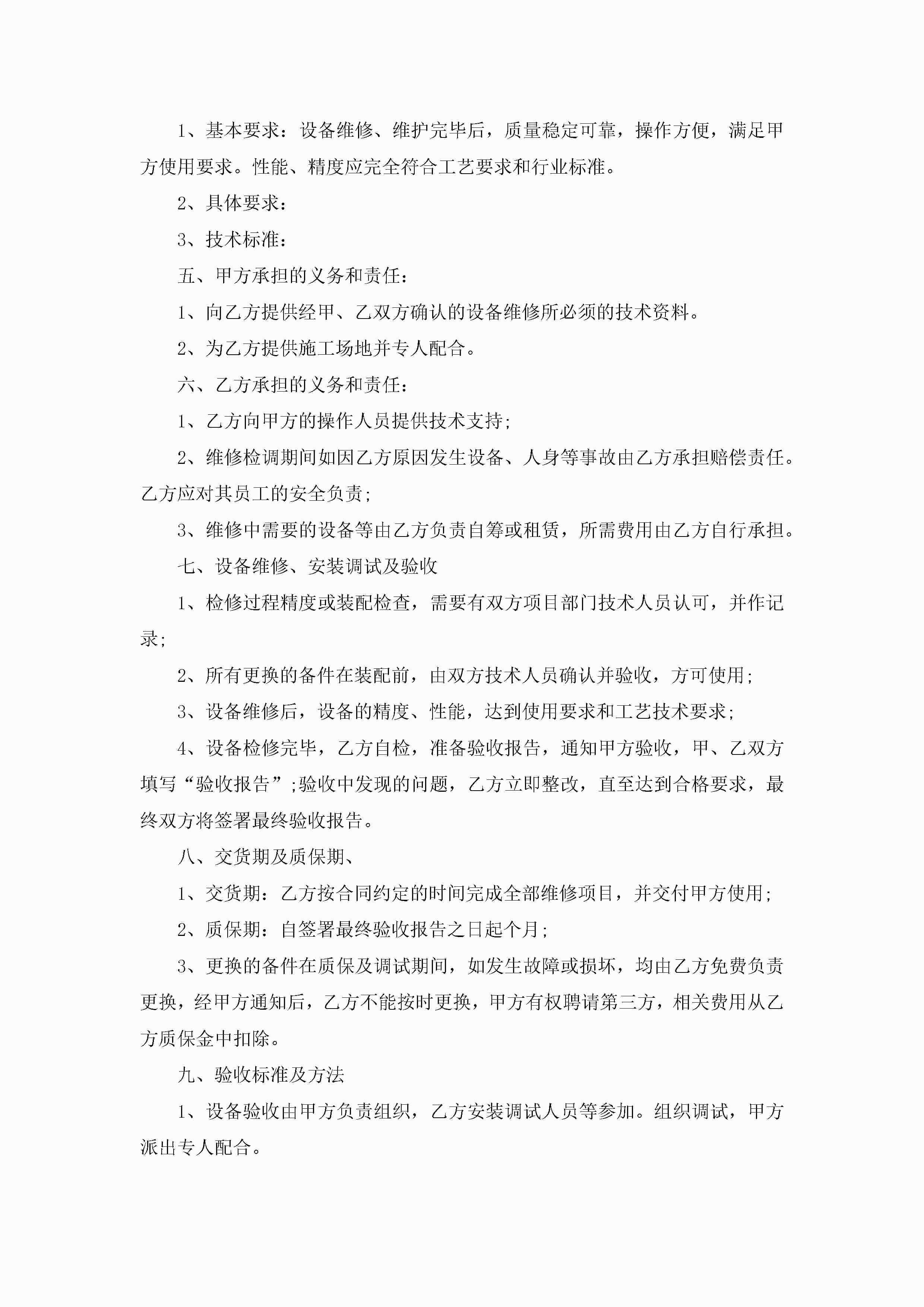 关于设备维修合同范文jugei3月23日 01:37发布关注233 关于设备维修合同范文此内容为付费资源,请付费后查看¥10.9 单篇文档限时特惠¥15个人会员开通企业会员开通立即下载无需登陆!可直接快捷下载单个模板付费资源© 版权声明THE ENDWord模板# 实用文档# 实用模板# 合同模板# 合同范本 如有问题,可点击最底部“联系我们”联系客服 分享QQ空间微博QQ好友海报分享复制链接收藏
