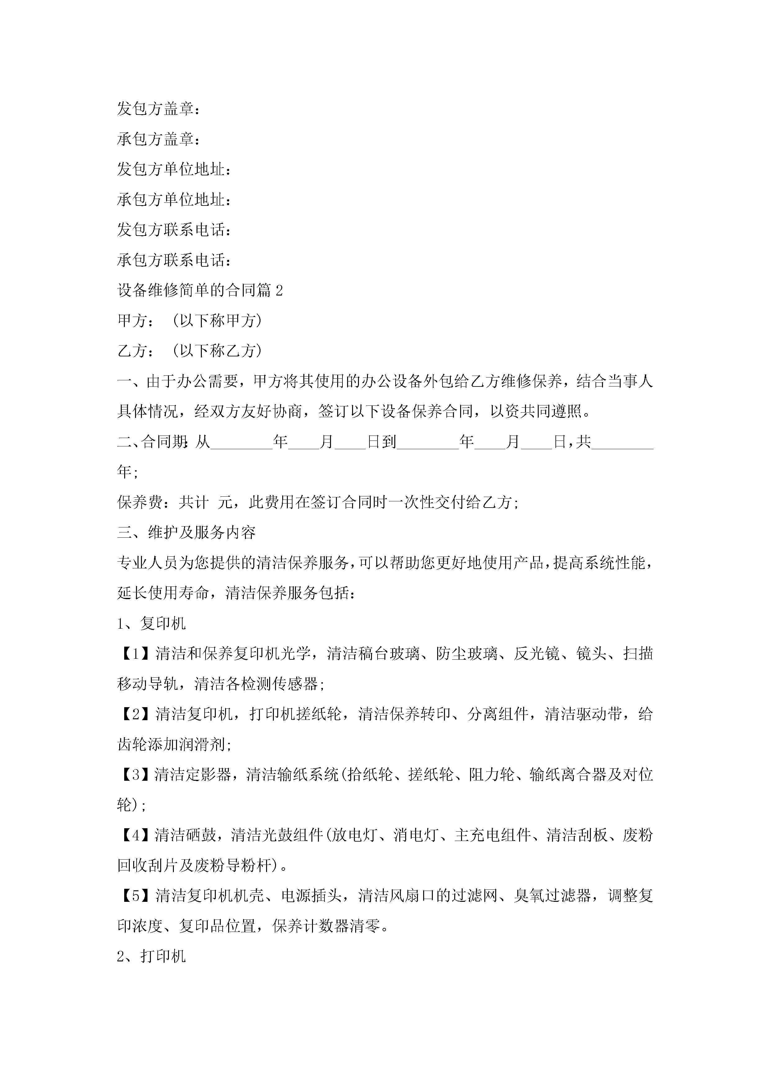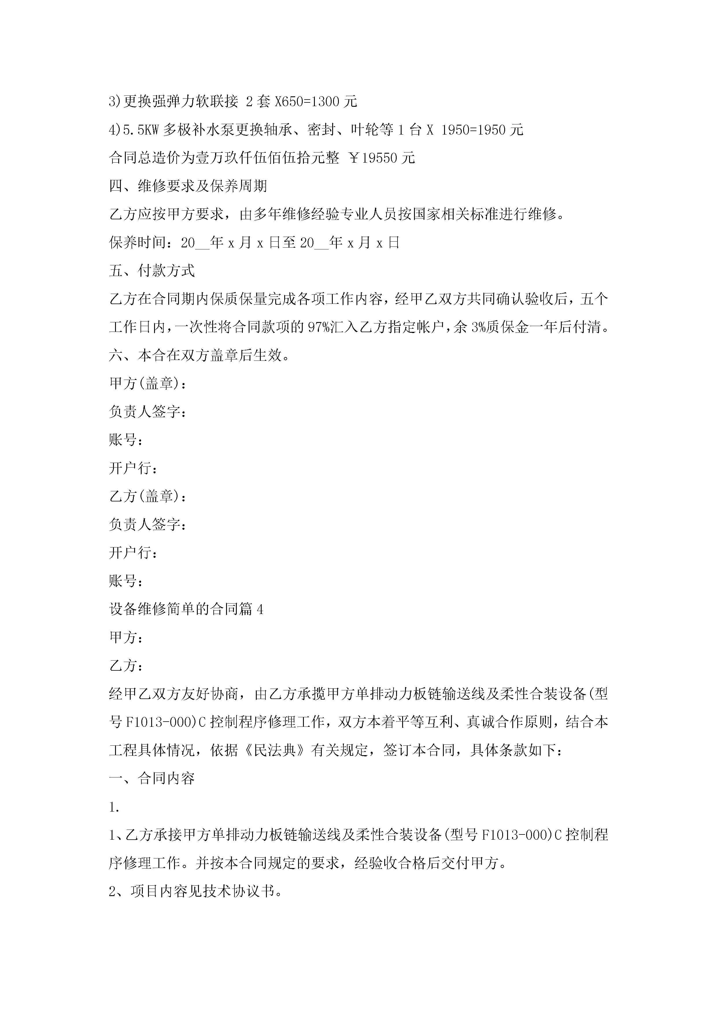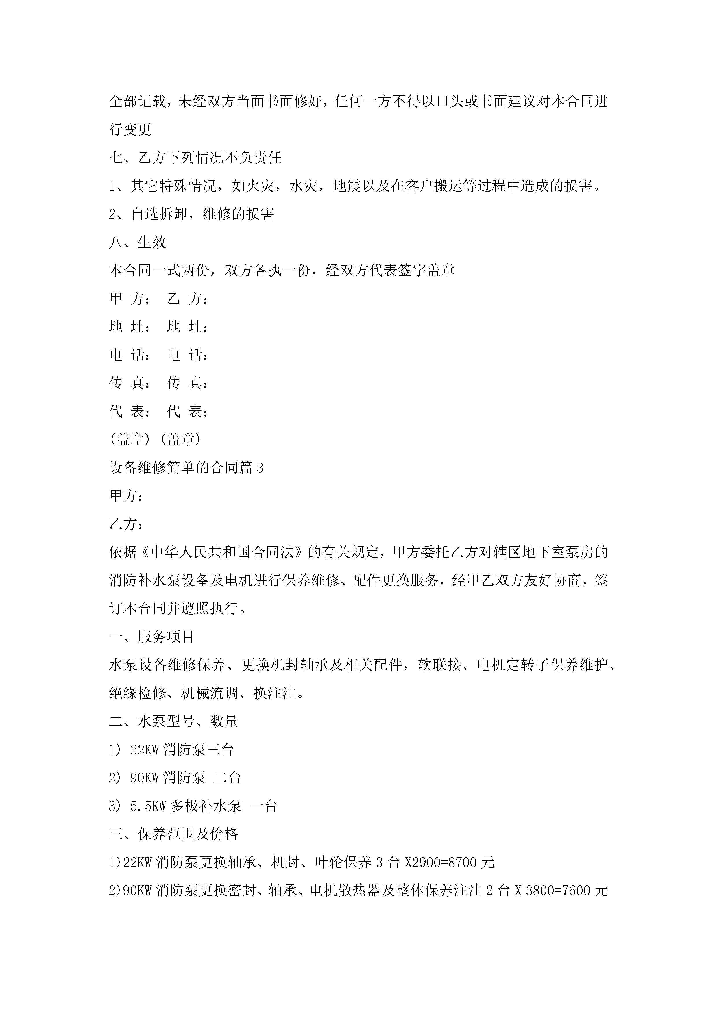 设备维修简单的合同范文jugei3月23日 01:37发布关注239 设备维修简单的合同范文此内容为付费资源,请付费后查看¥10.9 单篇文档限时特惠¥15个人会员开通企业会员开通立即下载无需登陆!可直接快捷下载单个模板付费资源© 版权声明THE ENDWord模板# 实用文档# 实用模板# 合同模板# 合同范本 如有问题,可点击最底部“联系我们”联系客服 分享QQ空间微博QQ好友海报分享复制链接收藏