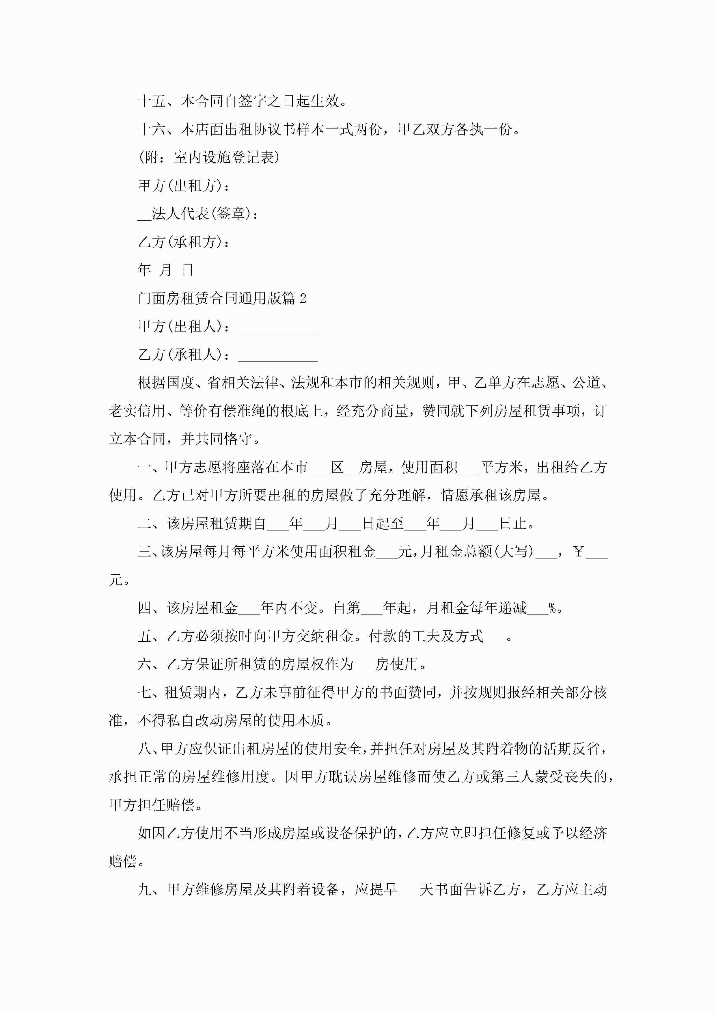 门面房租赁合同范文通用版jugei3月23日 01:37发布关注190 门面房租赁合同范文通用版此内容为付费资源,请付费后查看¥10.9 单篇文档限时特惠¥15个人会员开通企业会员开通立即下载无需登陆!可直接快捷下载单个模板付费资源© 版权声明THE ENDWord模板# 实用文档# 实用模板# 合同模板# 合同范本 如有问题,可点击最底部“联系我们”联系客服 分享QQ空间微博QQ好友海报分享复制链接收藏