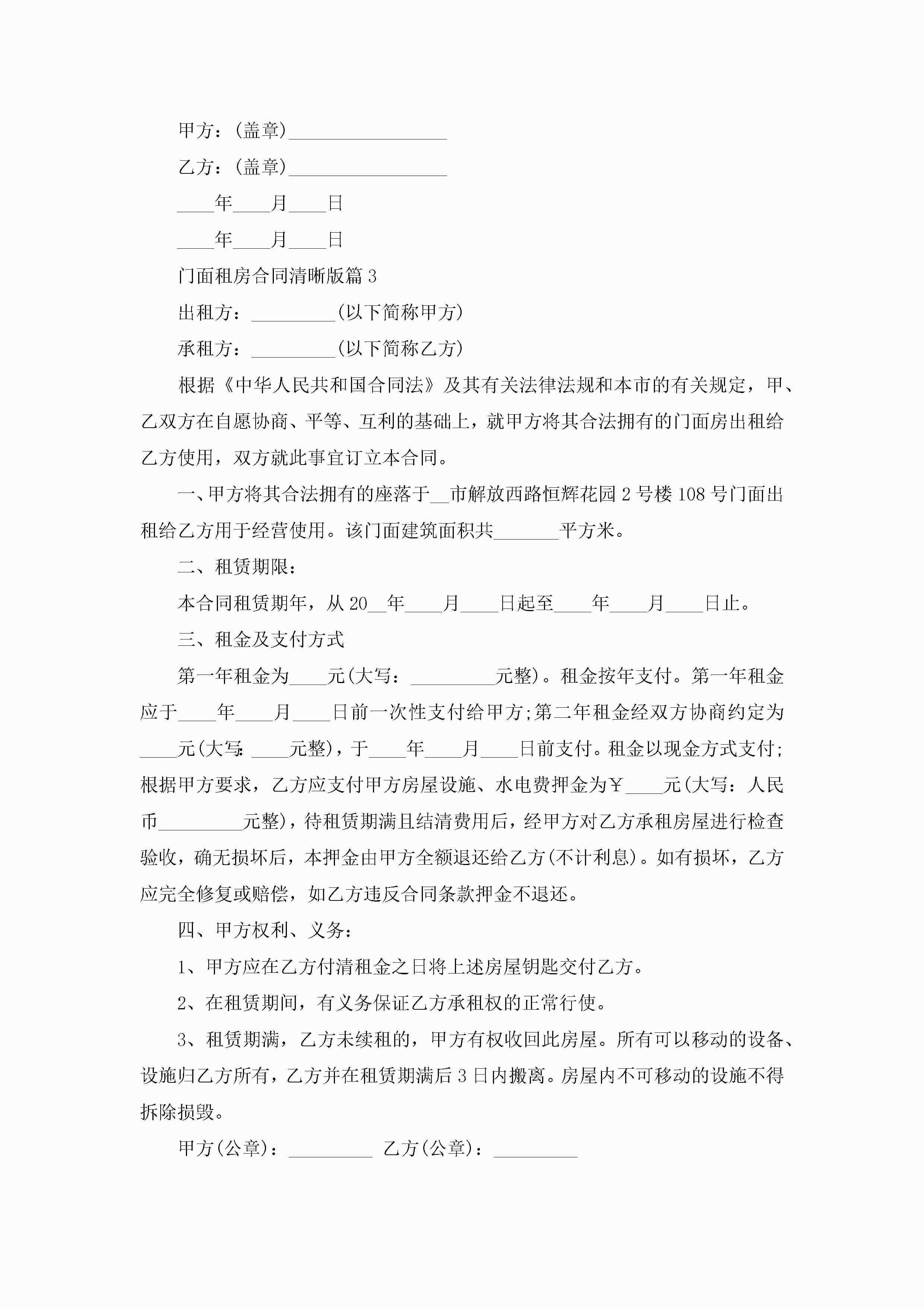 门面租房合同范文清晰版jugei3月23日 01:37发布关注237 门面租房合同范文清晰版此内容为付费资源,请付费后查看¥10.9 单篇文档限时特惠¥15个人会员开通企业会员开通立即下载无需登陆!可直接快捷下载单个模板付费资源© 版权声明THE ENDWord模板# 实用文档# 实用模板# 合同模板# 合同范本 如有问题,可点击最底部“联系我们”联系客服 分享QQ空间微博QQ好友海报分享复制链接收藏