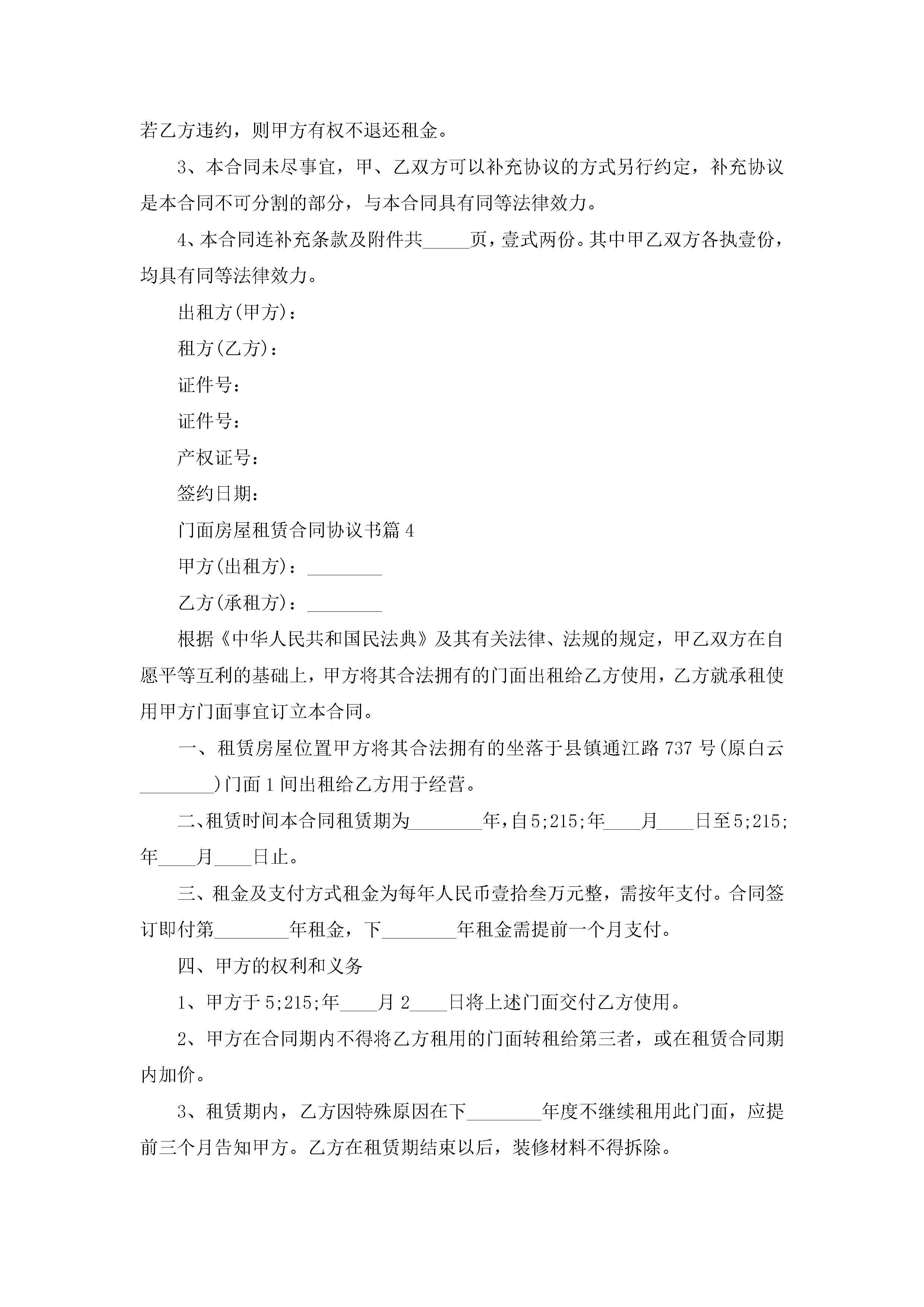 门面房屋租赁合同协议书范文jugei3月23日 01:37发布关注193 门面房屋租赁合同协议书范文此内容为付费资源,请付费后查看¥10.9 单篇文档限时特惠¥15个人会员开通企业会员开通立即下载无需登陆!可直接快捷下载单个模板付费资源© 版权声明THE ENDWord模板# 实用文档# 实用模板# 合同模板# 合同范本 如有问题,可点击最底部“联系我们”联系客服 分享QQ空间微博QQ好友海报分享复制链接收藏