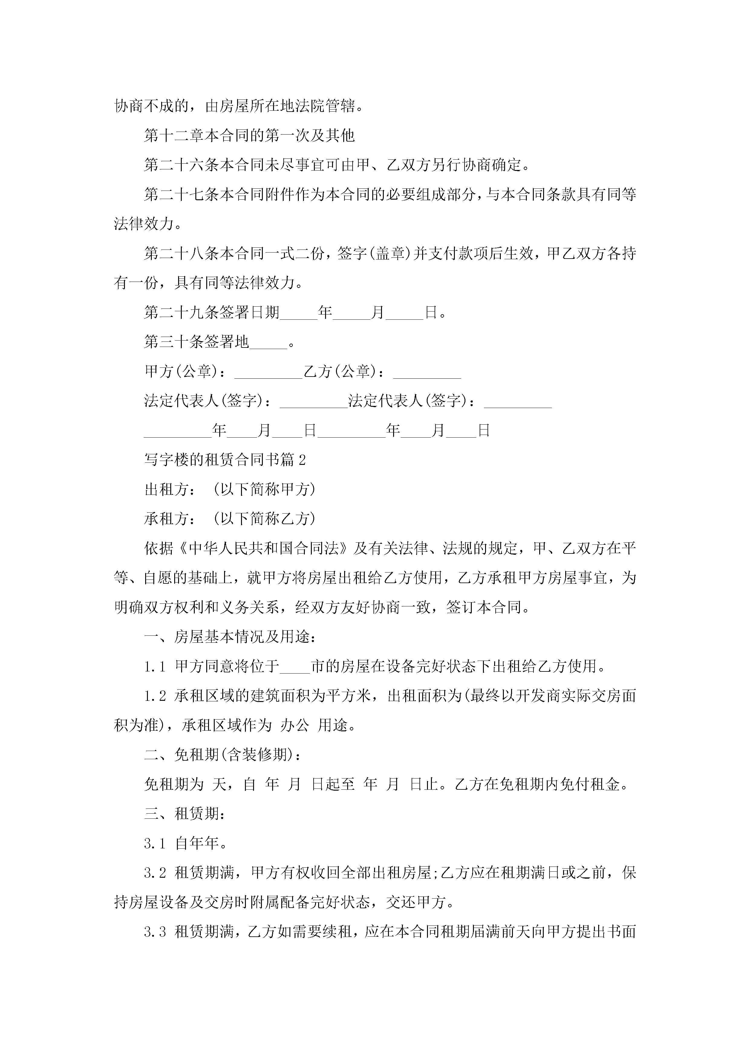 写字楼的租赁合同书范文jugei3月23日 01:37发布关注189 写字楼的租赁合同书范文此内容为付费资源,请付费后查看¥10.9 单篇文档限时特惠¥15个人会员开通企业会员开通立即下载无需登陆!可直接快捷下载单个模板付费资源© 版权声明THE ENDWord模板# 实用文档# 实用模板# 合同模板# 合同范本 如有问题,可点击最底部“联系我们”联系客服 分享QQ空间微博QQ好友海报分享复制链接收藏