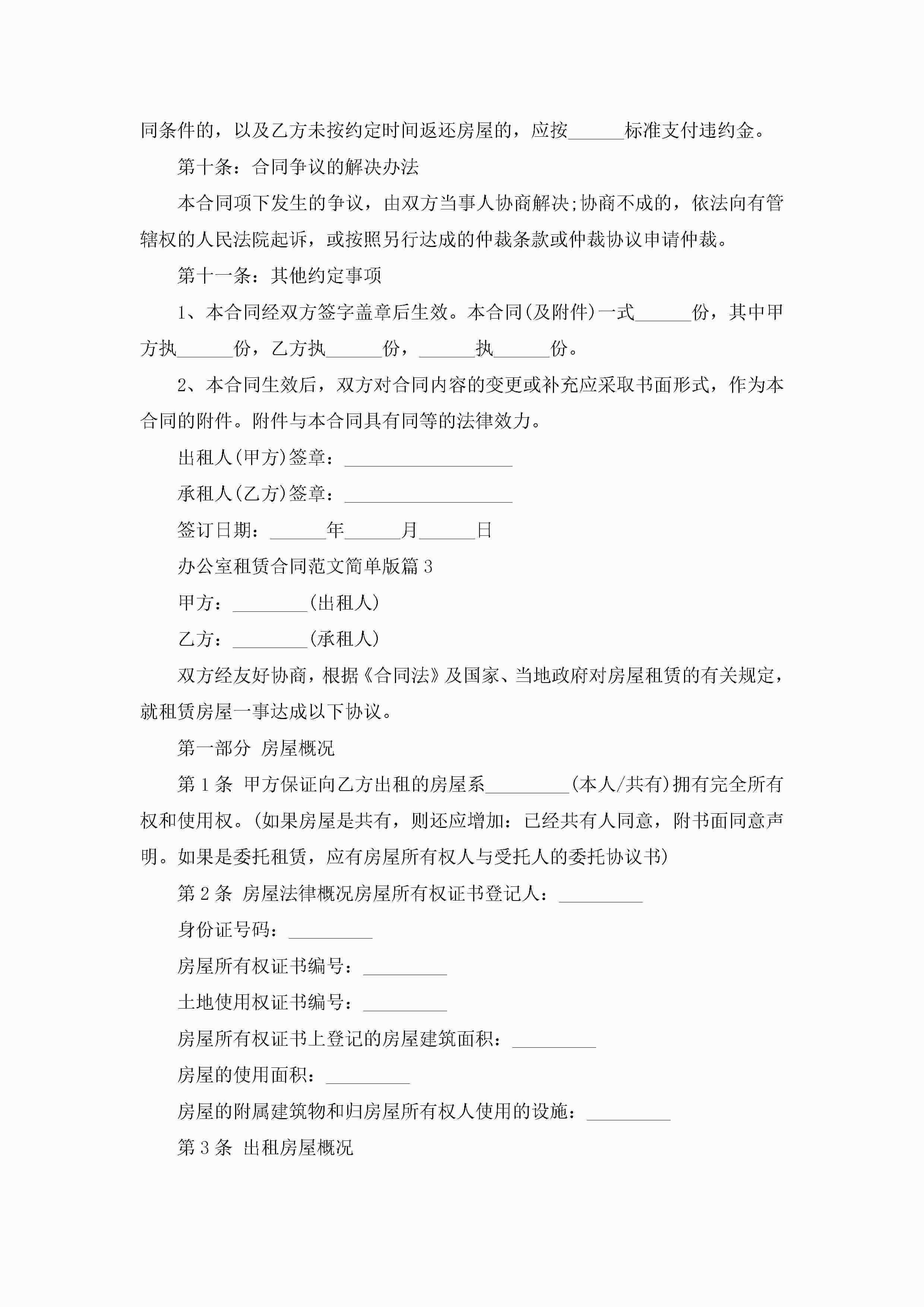 办公室租赁合同最新范文简单版jugei3月23日 01:37发布关注191 办公室租赁合同最新范文简单版此内容为付费资源,请付费后查看¥10.9 单篇文档限时特惠¥15个人会员开通企业会员开通立即下载无需登陆!可直接快捷下载单个模板付费资源© 版权声明THE ENDWord模板# 实用文档# 实用模板# 合同模板# 合同范本 如有问题,可点击最底部“联系我们”联系客服 分享QQ空间微博QQ好友海报分享复制链接收藏