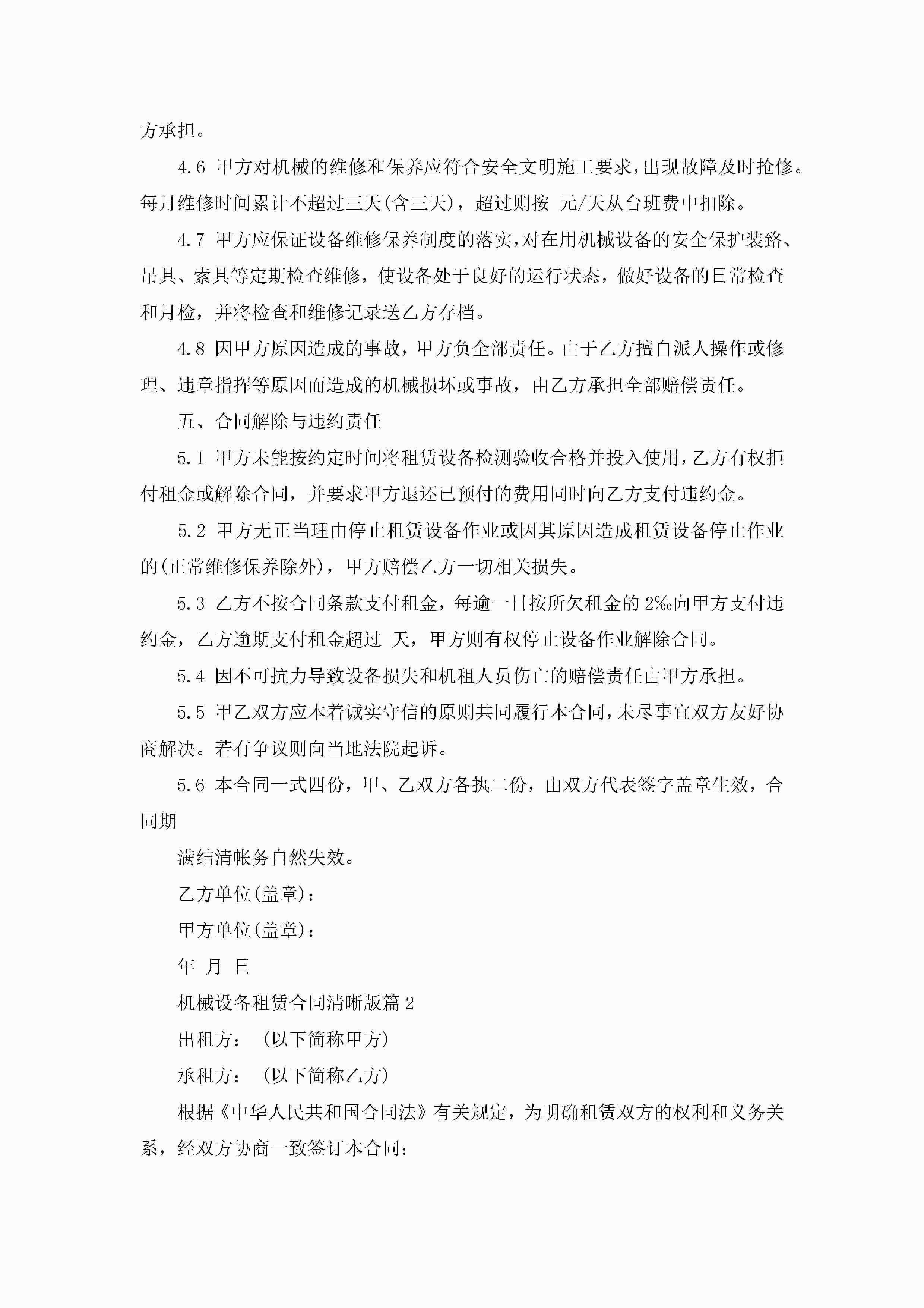 机械设备租赁合同范文清晰版jugei3月23日 01:37发布关注183 机械设备租赁合同范文清晰版此内容为付费资源,请付费后查看¥10.9 单篇文档限时特惠¥15个人会员开通企业会员开通立即下载无需登陆!可直接快捷下载单个模板付费资源© 版权声明THE ENDWord模板# 实用文档# 实用模板# 合同模板# 合同范本 如有问题,可点击最底部“联系我们”联系客服 分享QQ空间微博QQ好友海报分享复制链接收藏