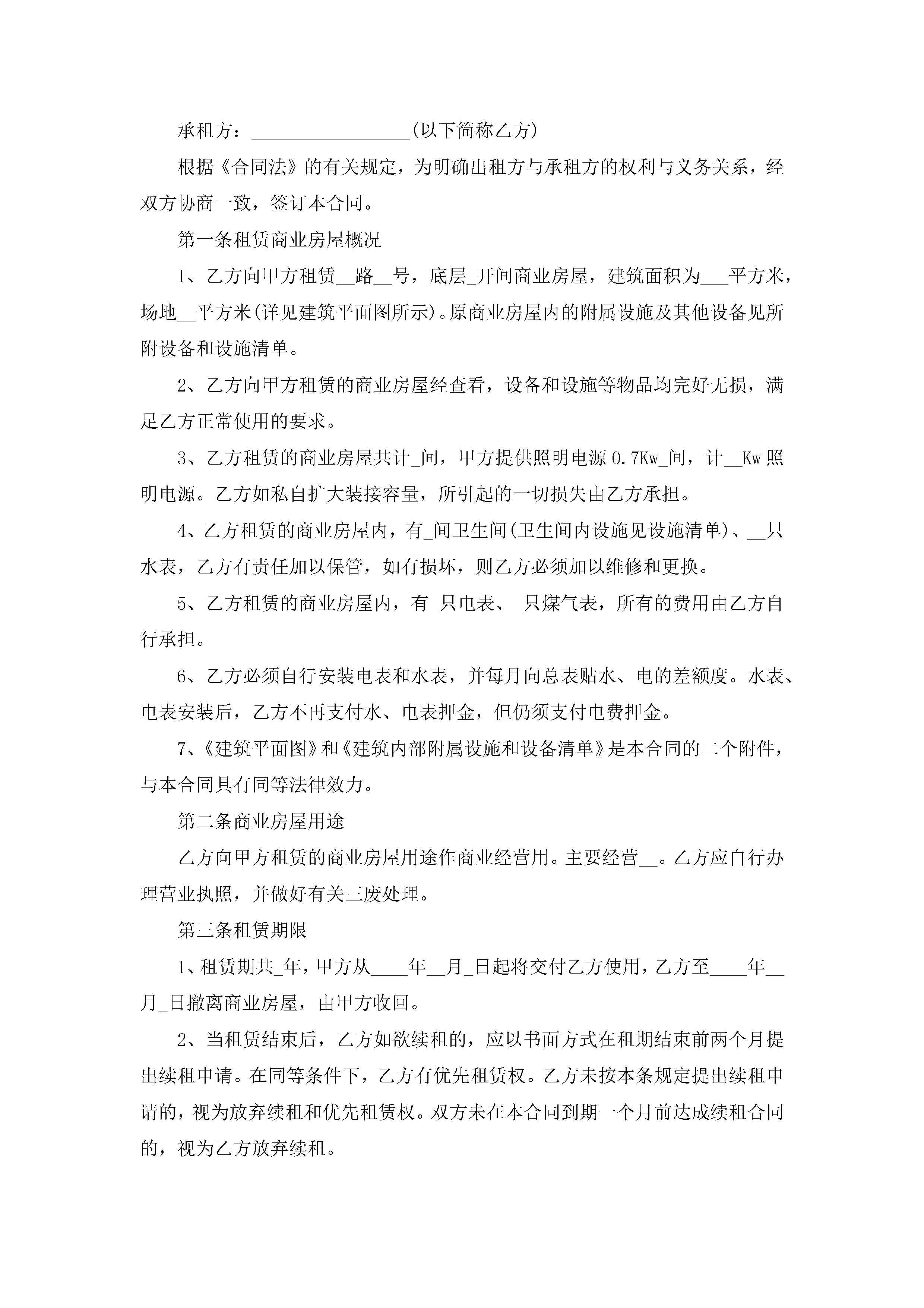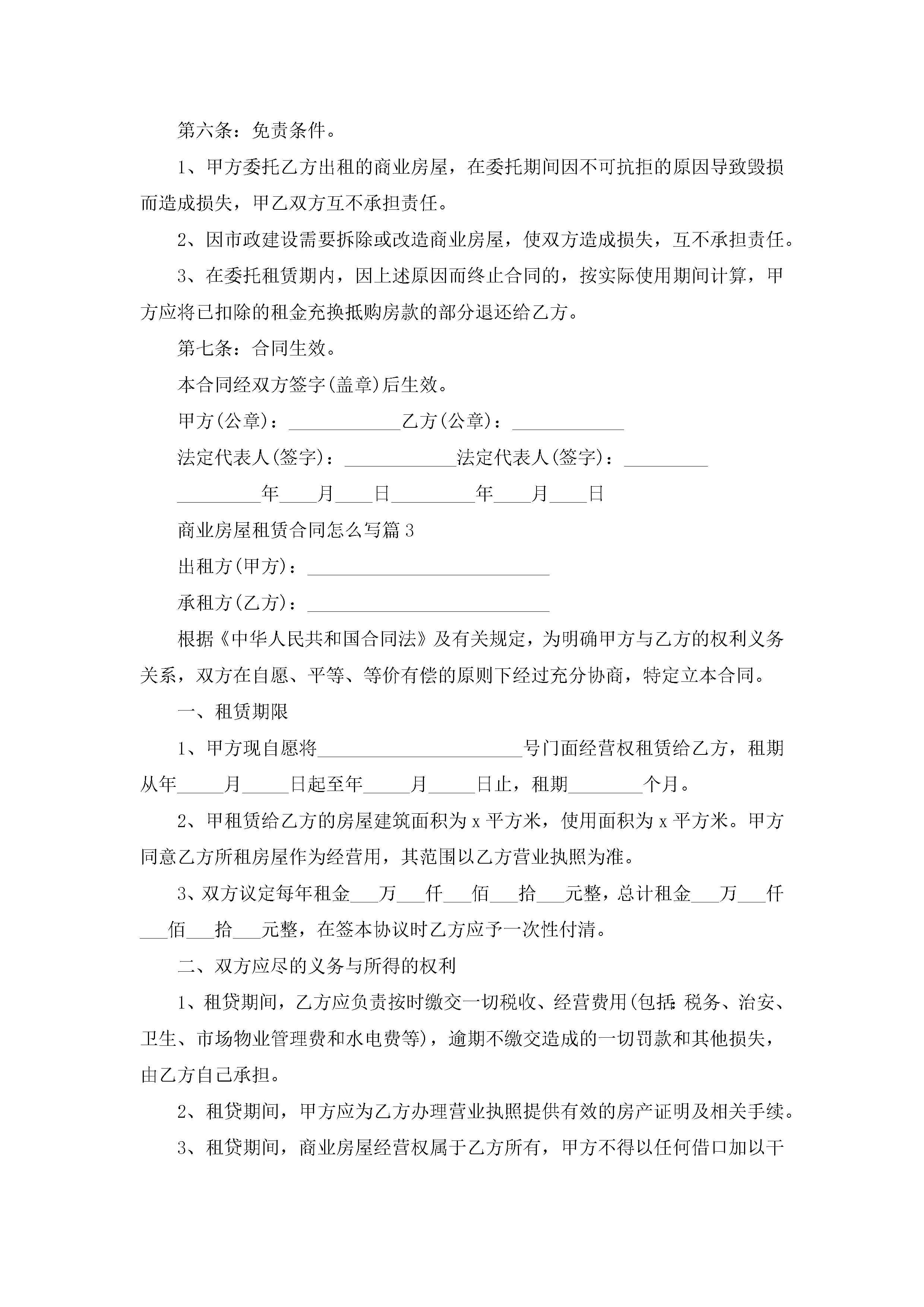 商业房屋租赁合同范文怎么写jugei3月23日 01:37发布关注250 商业房屋租赁合同范文怎么写此内容为付费资源,请付费后查看¥10.9 单篇文档限时特惠¥15个人会员开通企业会员开通立即下载无需登陆!可直接快捷下载单个模板付费资源© 版权声明THE ENDWord模板# 实用文档# 实用模板# 合同模板# 合同范本 如有问题,可点击最底部“联系我们”联系客服 分享QQ空间微博QQ好友海报分享复制链接收藏