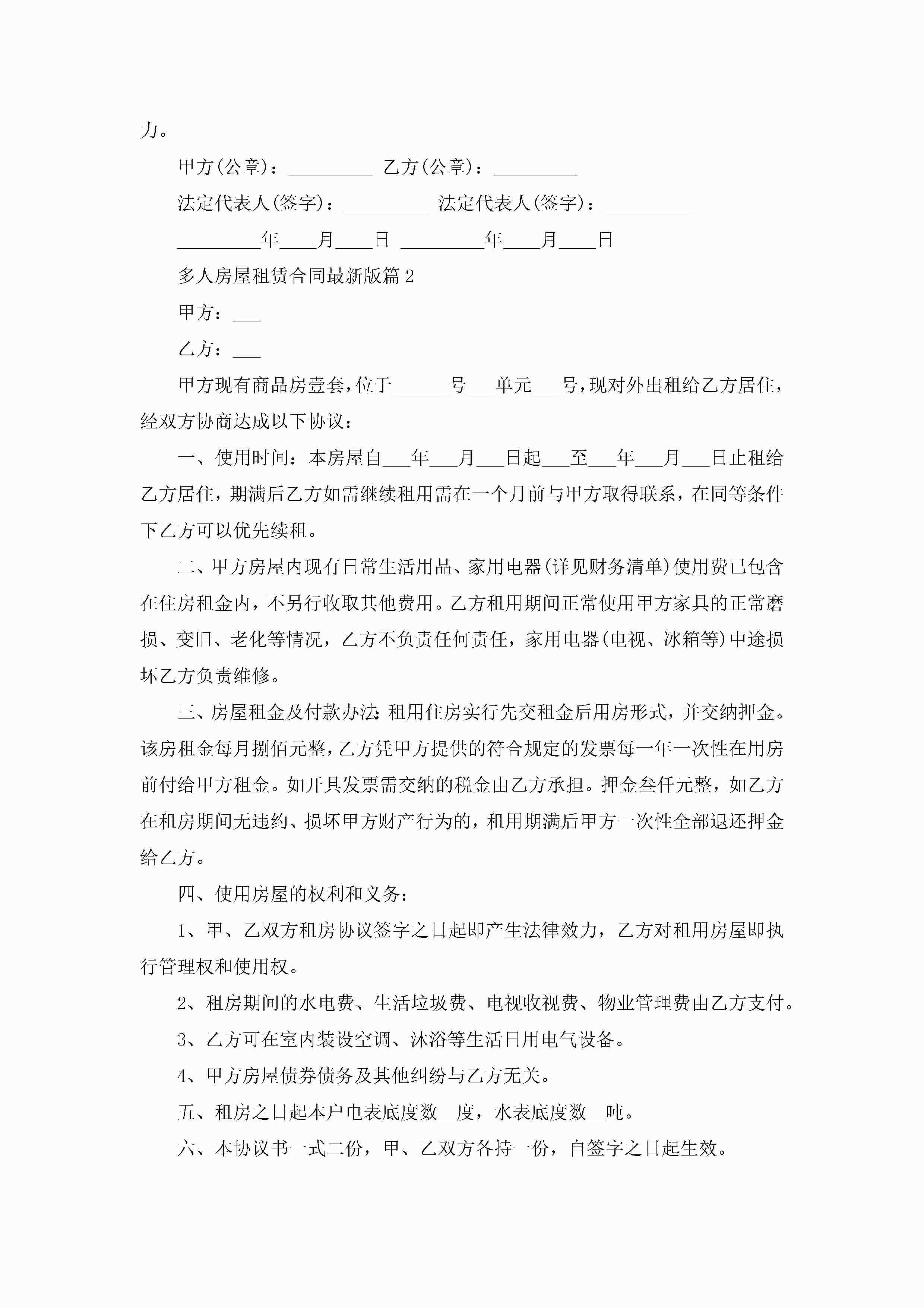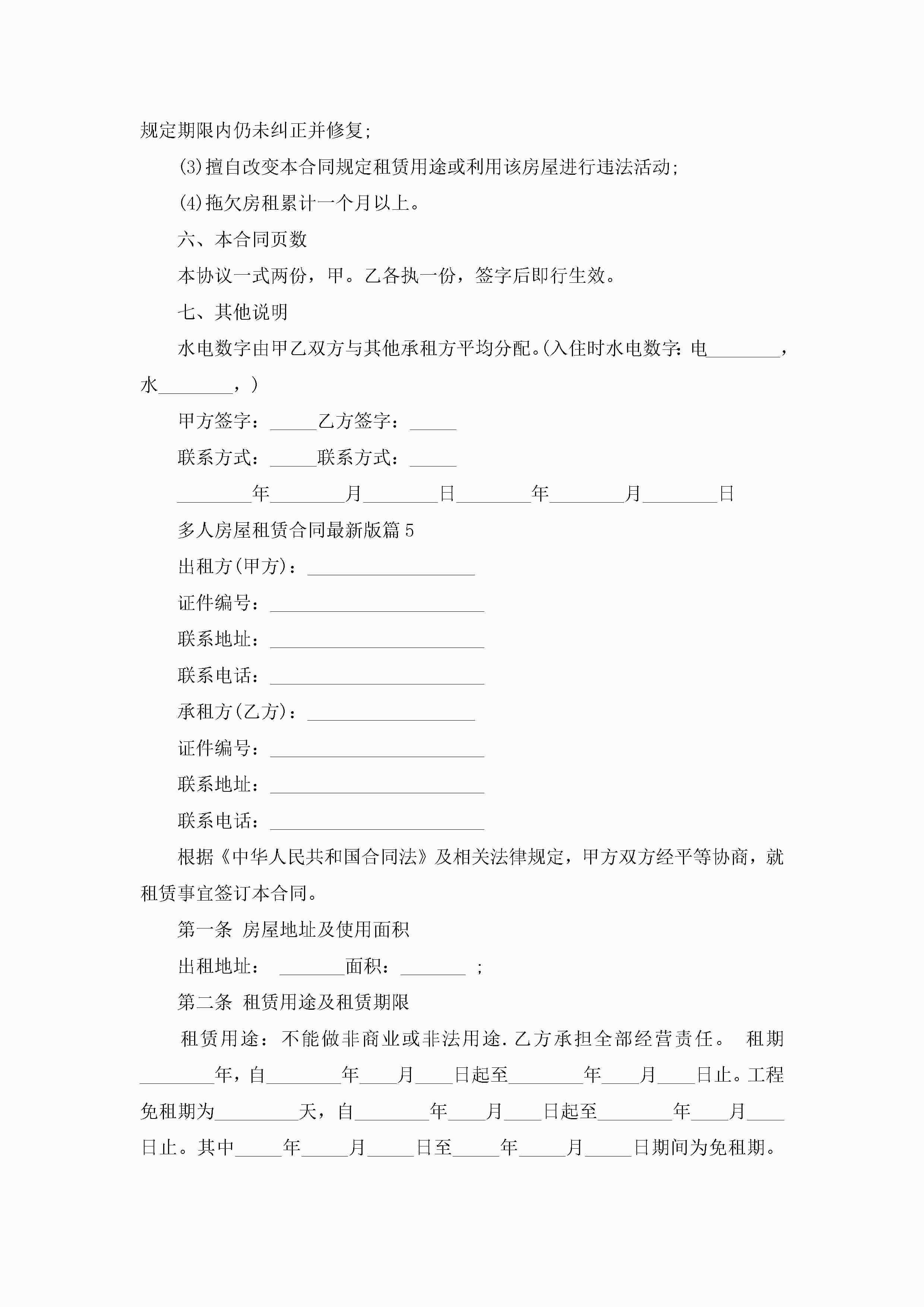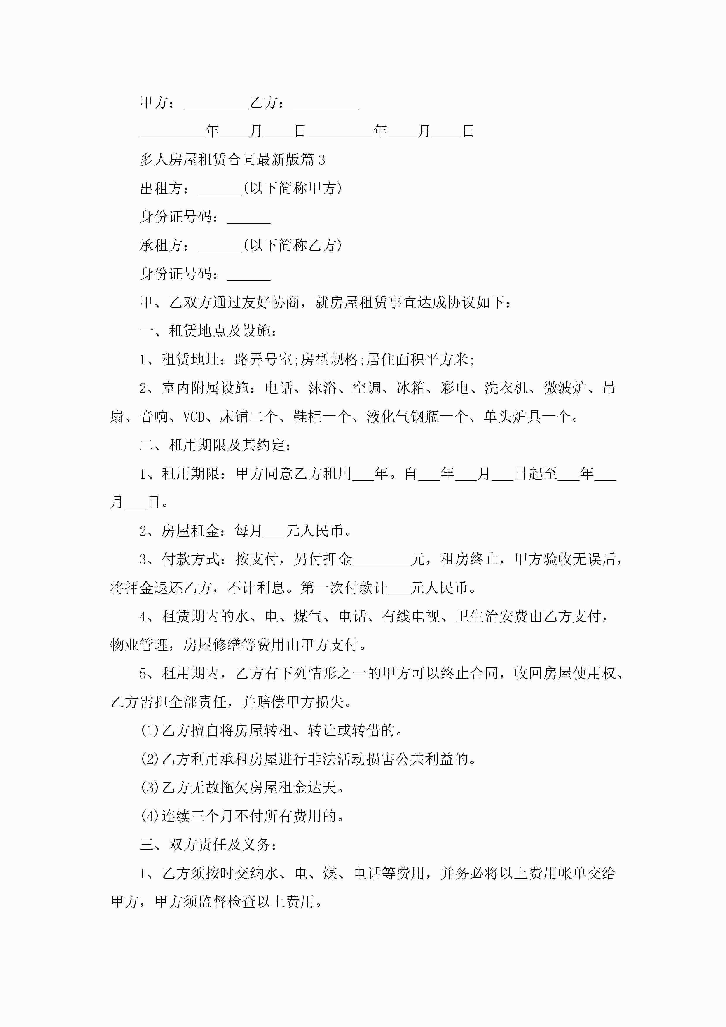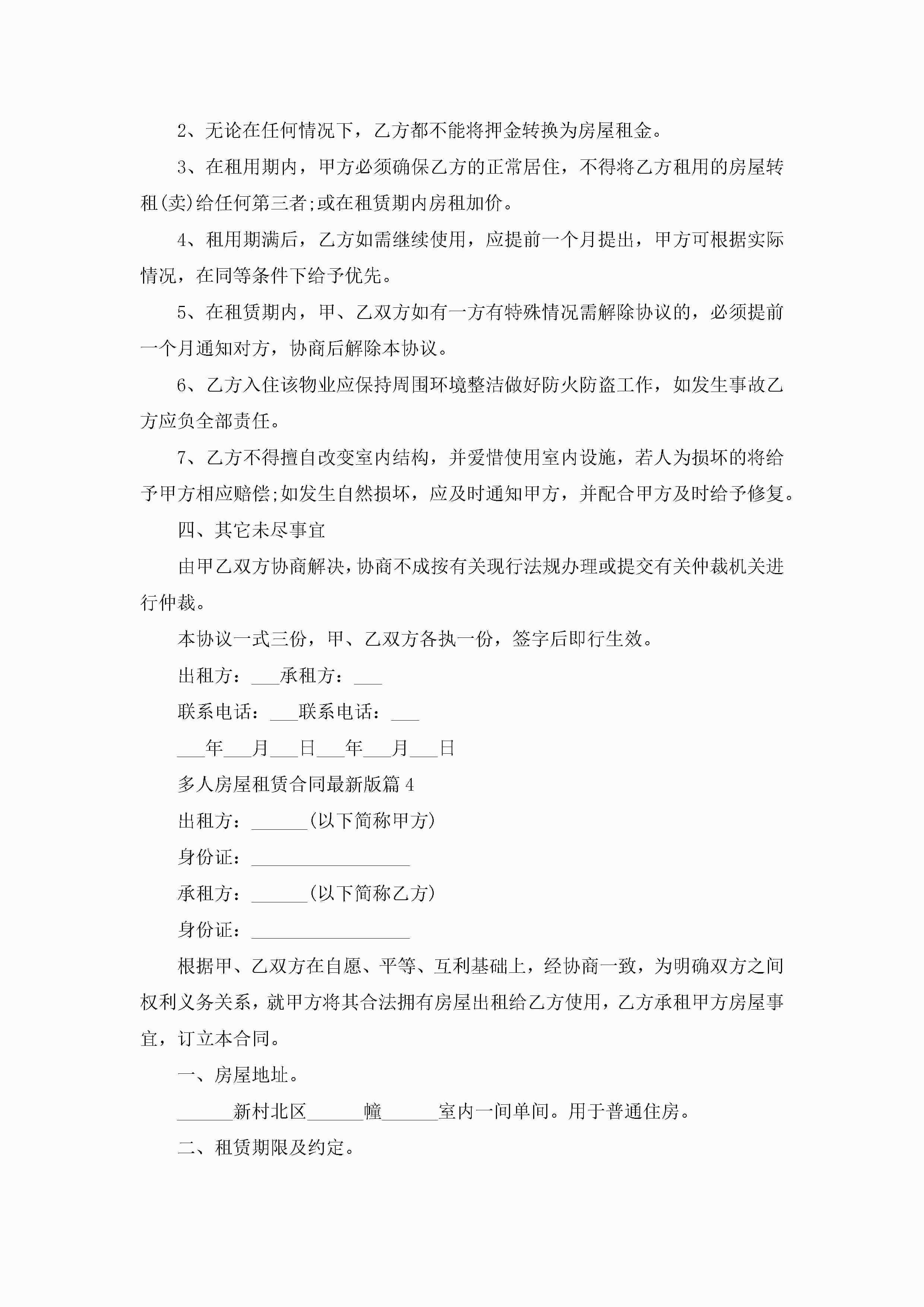 多人房屋租赁合同最新范文版jugei3月23日 01:37发布关注244 多人房屋租赁合同最新范文版此内容为付费资源,请付费后查看¥10.9 单篇文档限时特惠¥15个人会员开通企业会员开通立即下载无需登陆!可直接快捷下载单个模板付费资源© 版权声明THE ENDWord模板# 实用文档# 实用模板# 合同模板# 合同范本 如有问题,可点击最底部“联系我们”联系客服 分享QQ空间微博QQ好友海报分享复制链接收藏