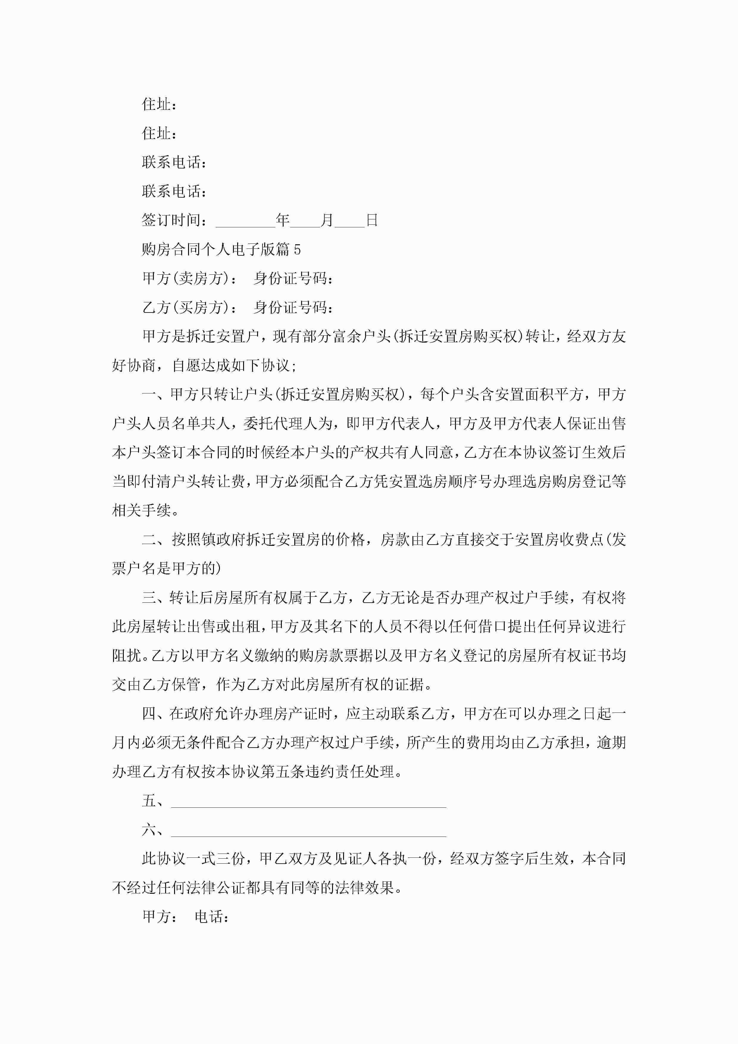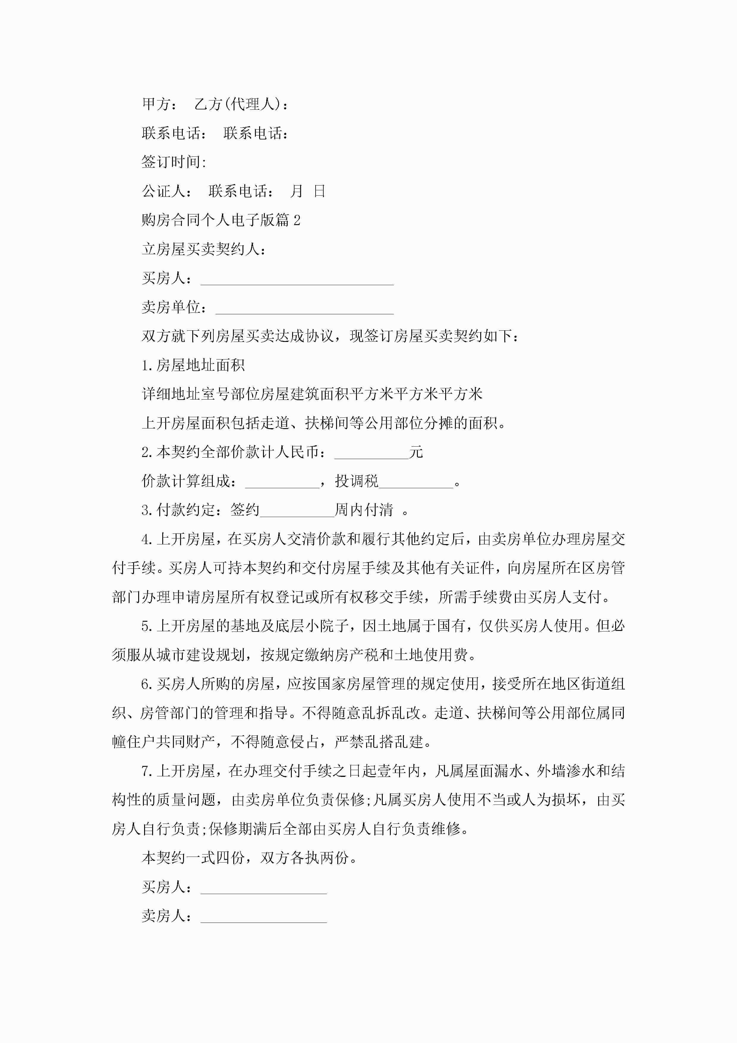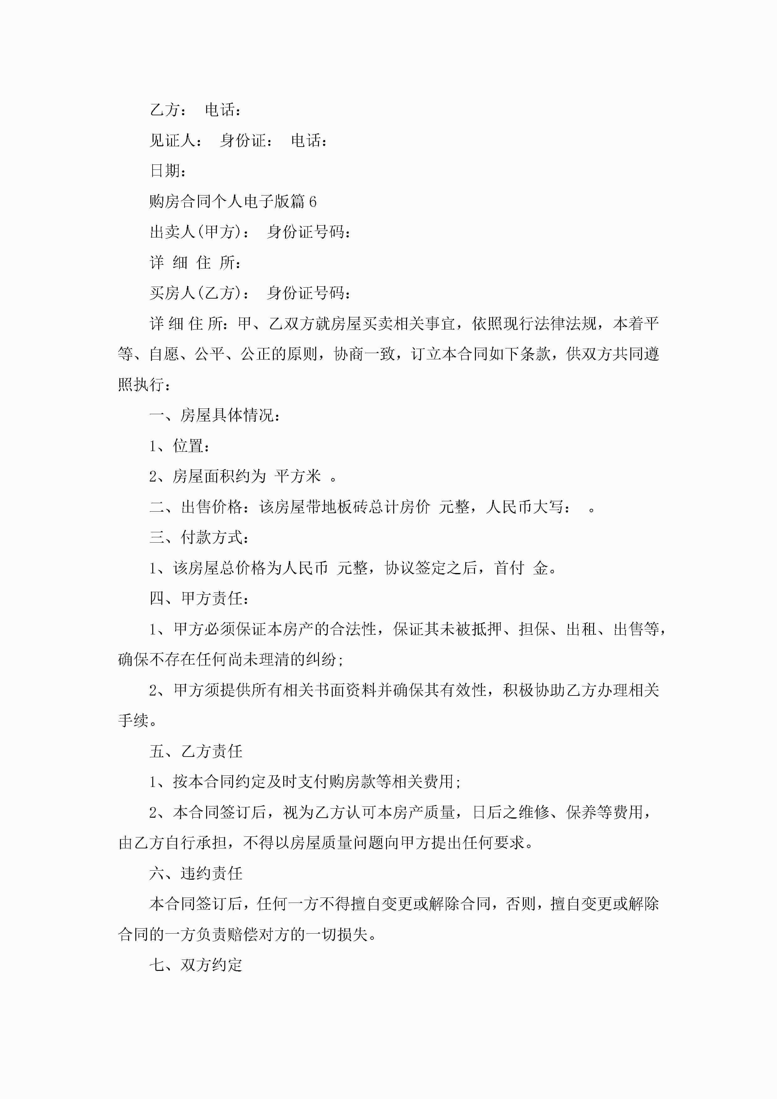 购房合同个人范文电子版jugei3月23日 01:37发布关注190 购房合同个人范文电子版此内容为付费资源,请付费后查看¥10.9 单篇文档限时特惠¥15个人会员开通企业会员开通立即下载无需登陆!可直接快捷下载单个模板付费资源© 版权声明THE ENDWord模板# 实用文档# 实用模板# 合同模板# 合同范本 如有问题,可点击最底部“联系我们”联系客服 分享QQ空间微博QQ好友海报分享复制链接收藏