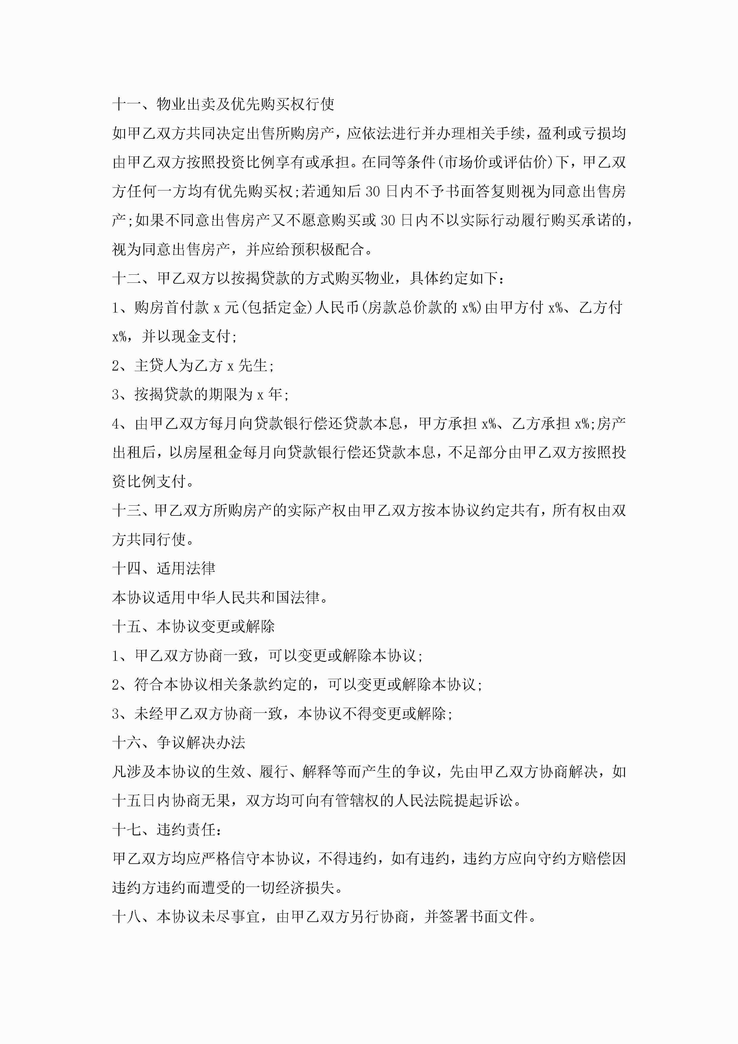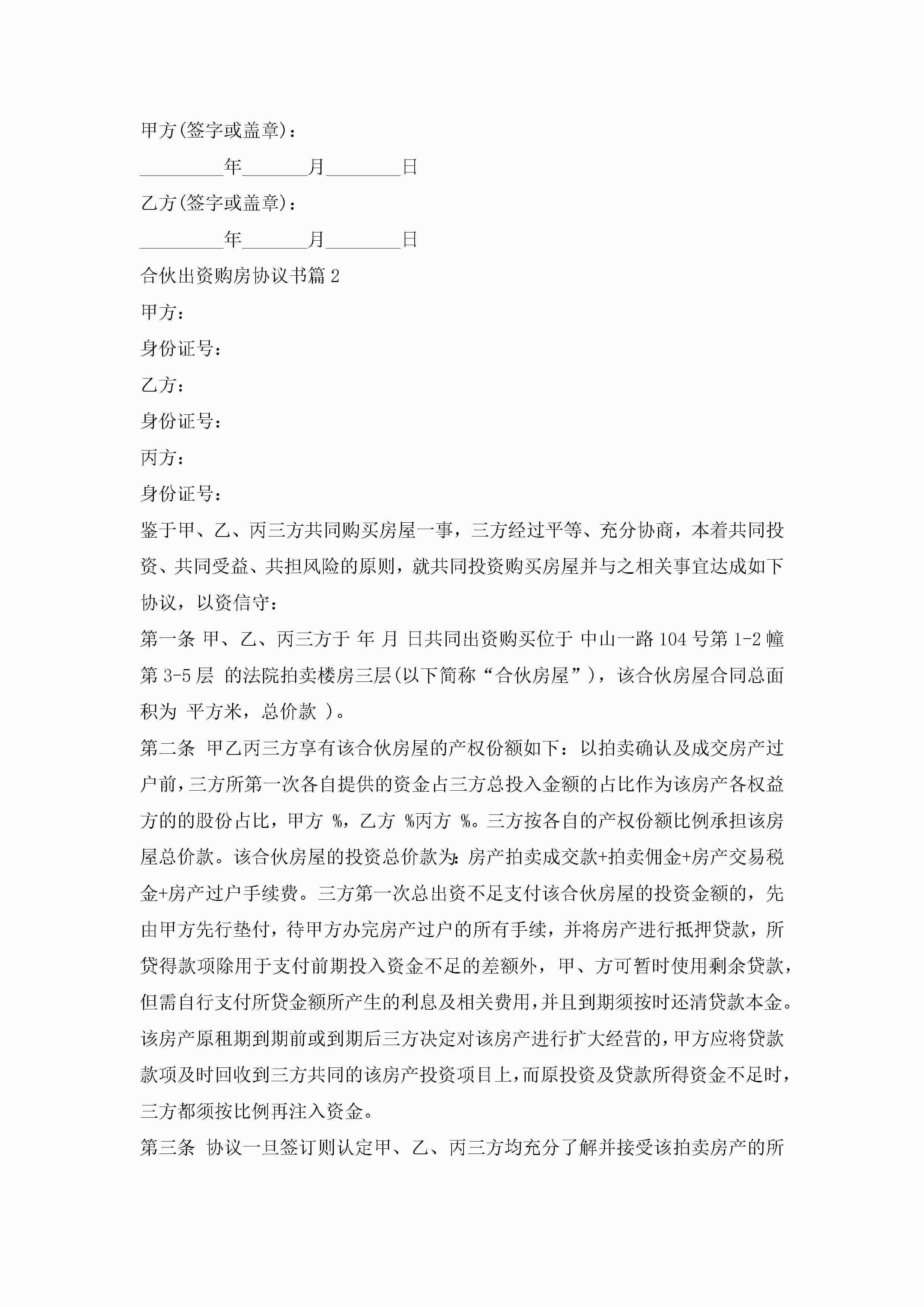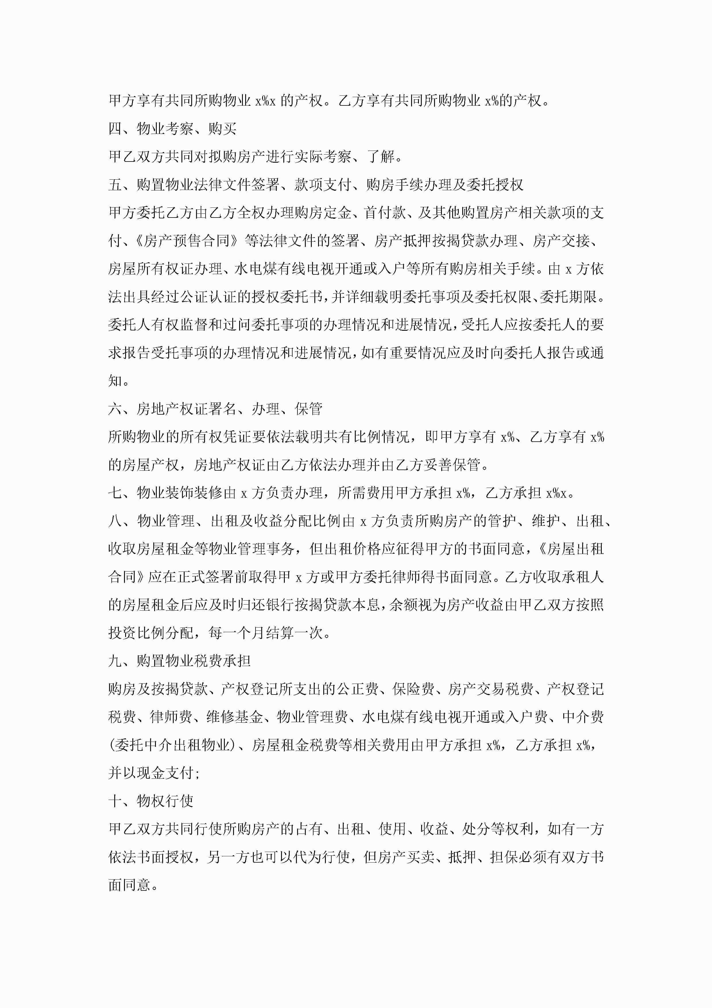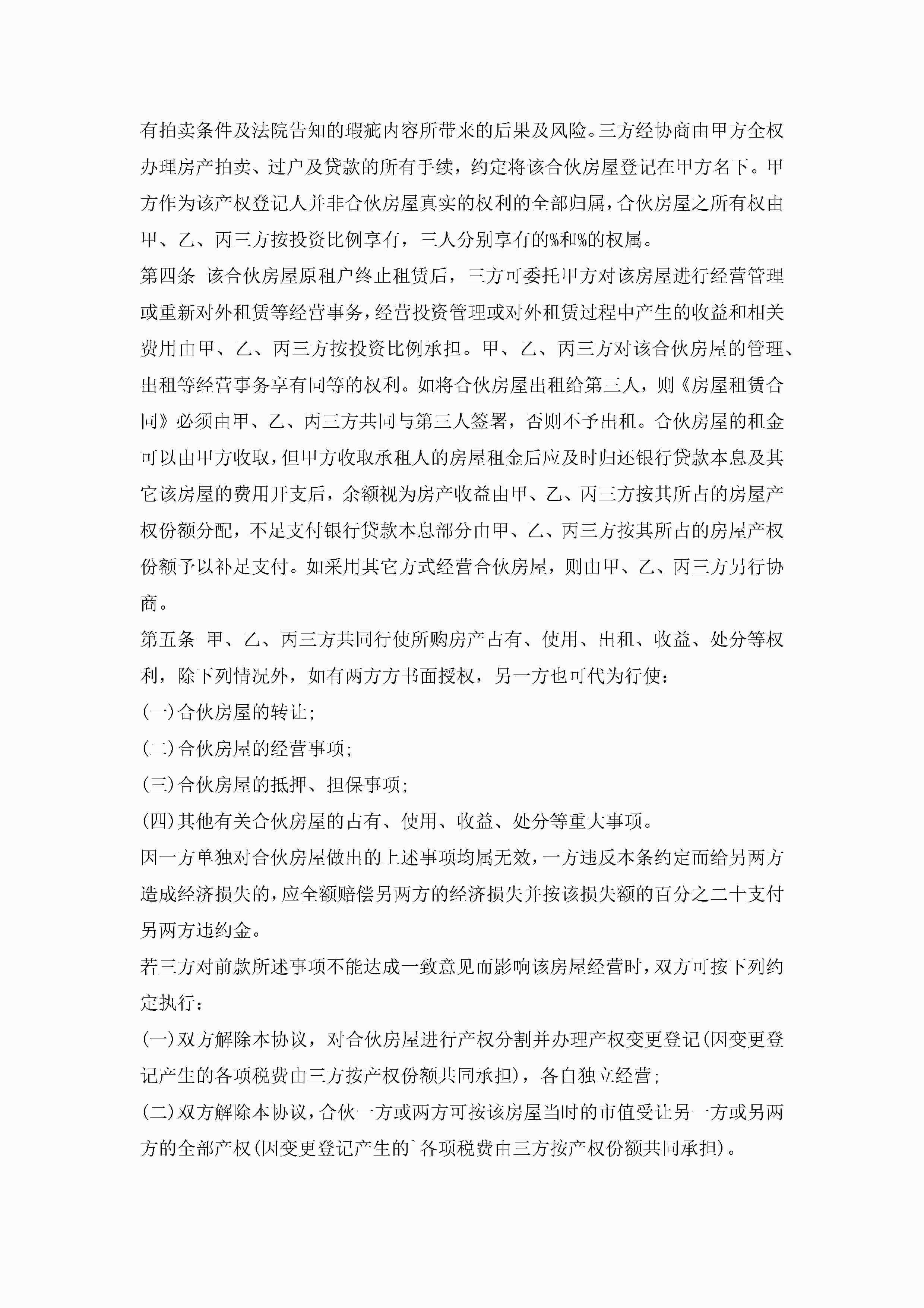 合伙出资购房协议书范文jugei3月23日 01:37发布关注191 合伙出资购房协议书范文此内容为付费资源,请付费后查看¥10.9 单篇文档限时特惠¥15个人会员开通企业会员开通立即下载无需登陆!可直接快捷下载单个模板付费资源© 版权声明THE ENDWord模板# 实用文档# 实用模板# 合同模板# 合同范本 如有问题,可点击最底部“联系我们”联系客服 分享QQ空间微博QQ好友海报分享复制链接收藏