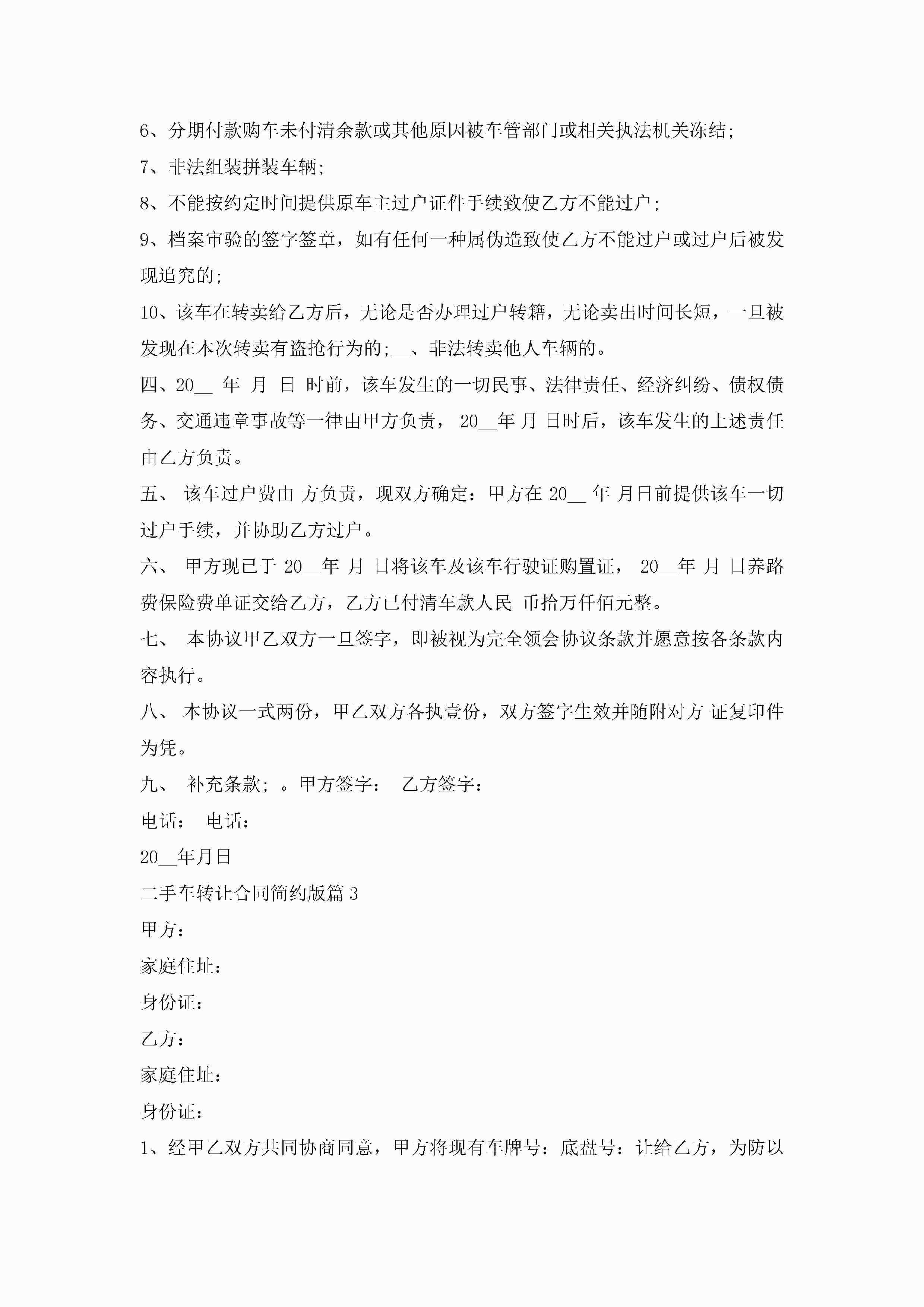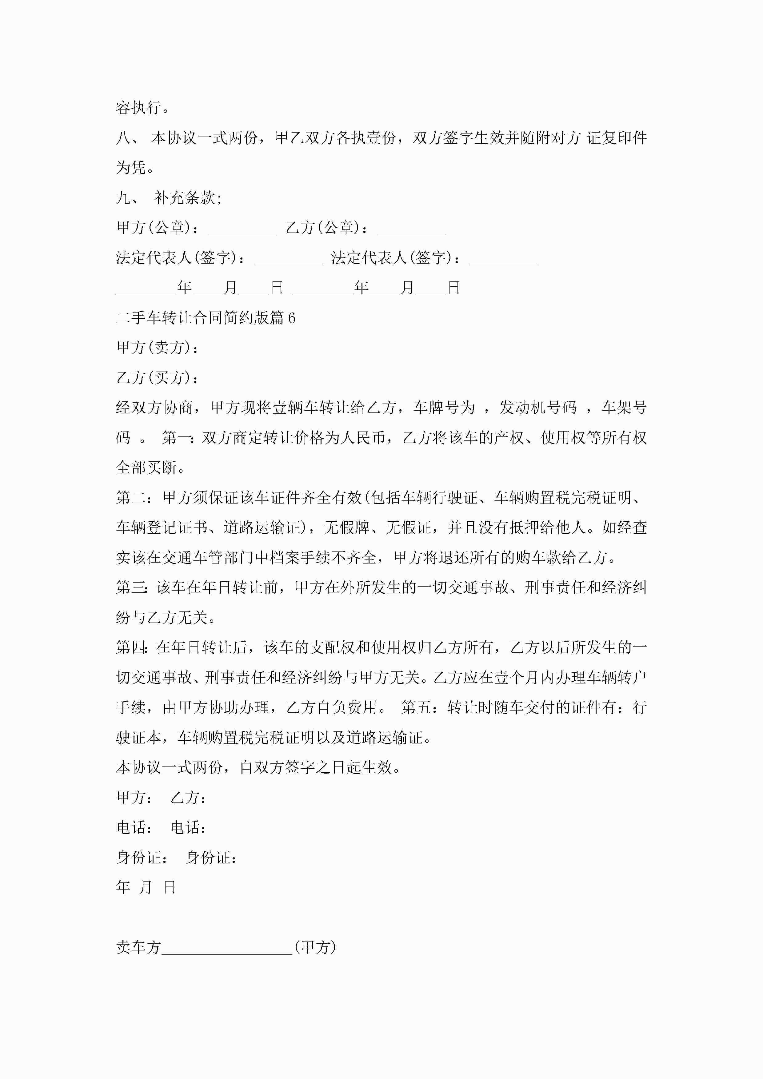 二手车转让合同范文简约版jugei3月23日 01:37发布关注197 二手车转让合同范文简约版此内容为付费资源,请付费后查看¥10.9 单篇文档限时特惠¥15个人会员开通企业会员开通立即下载无需登陆!可直接快捷下载单个模板付费资源© 版权声明THE ENDWord模板# 实用文档# 实用模板# 合同模板# 合同范本 如有问题,可点击最底部“联系我们”联系客服 分享QQ空间微博QQ好友海报分享复制链接收藏