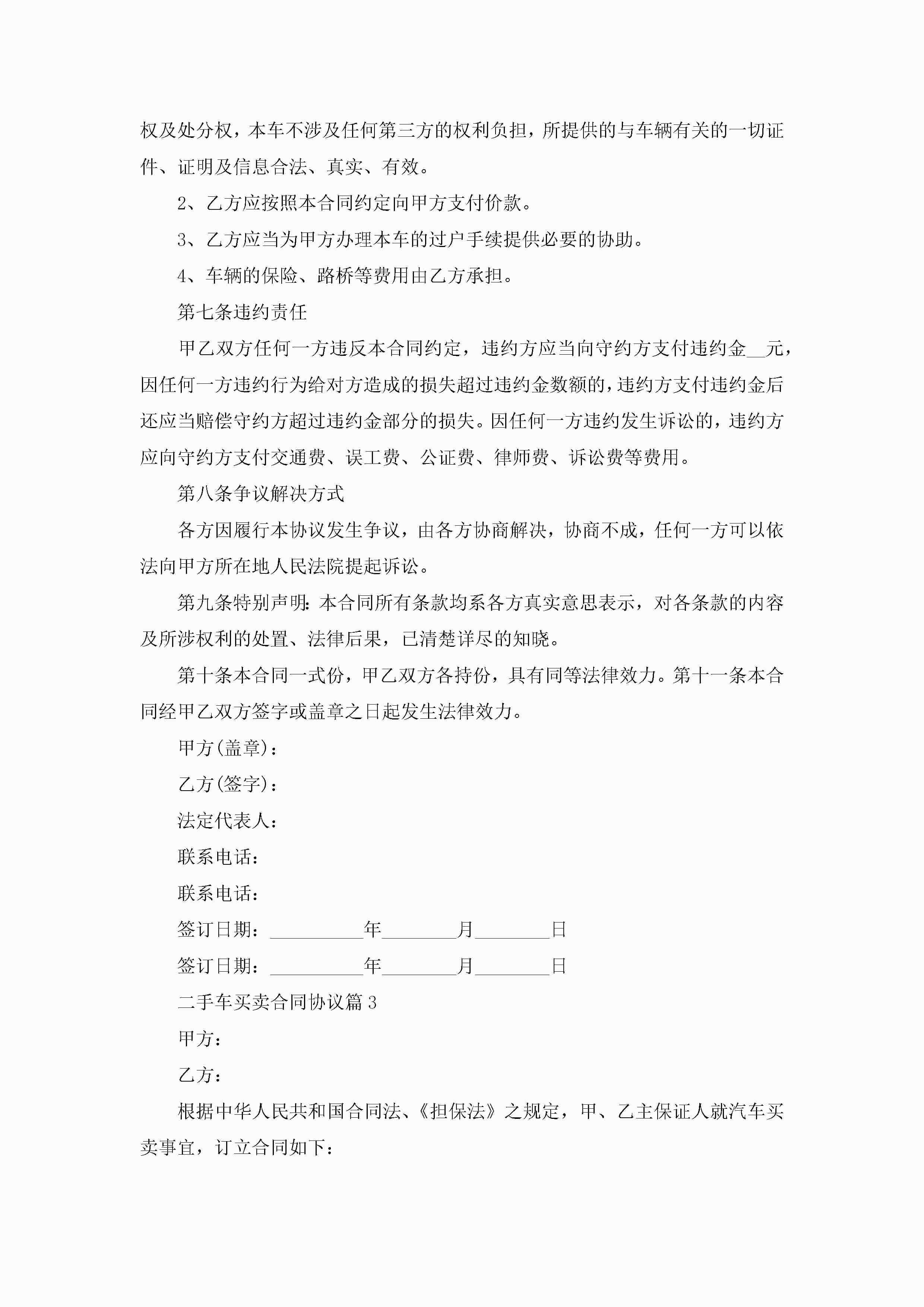 二手车买卖合同协议范文jugei3月23日 01:37发布关注265 二手车买卖合同协议范文此内容为付费资源,请付费后查看¥10.9 单篇文档限时特惠¥15个人会员开通企业会员开通立即下载无需登陆!可直接快捷下载单个模板付费资源© 版权声明THE ENDWord模板# 实用文档# 实用模板# 合同模板# 合同范本 如有问题,可点击最底部“联系我们”联系客服 分享QQ空间微博QQ好友海报分享复制链接收藏