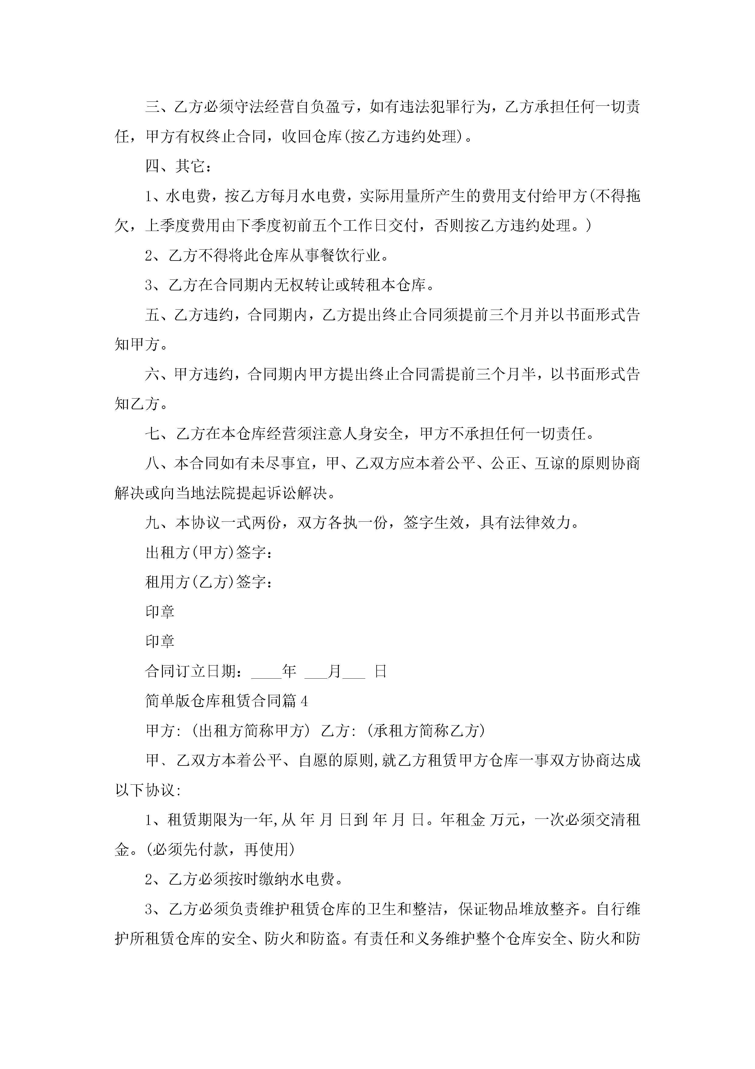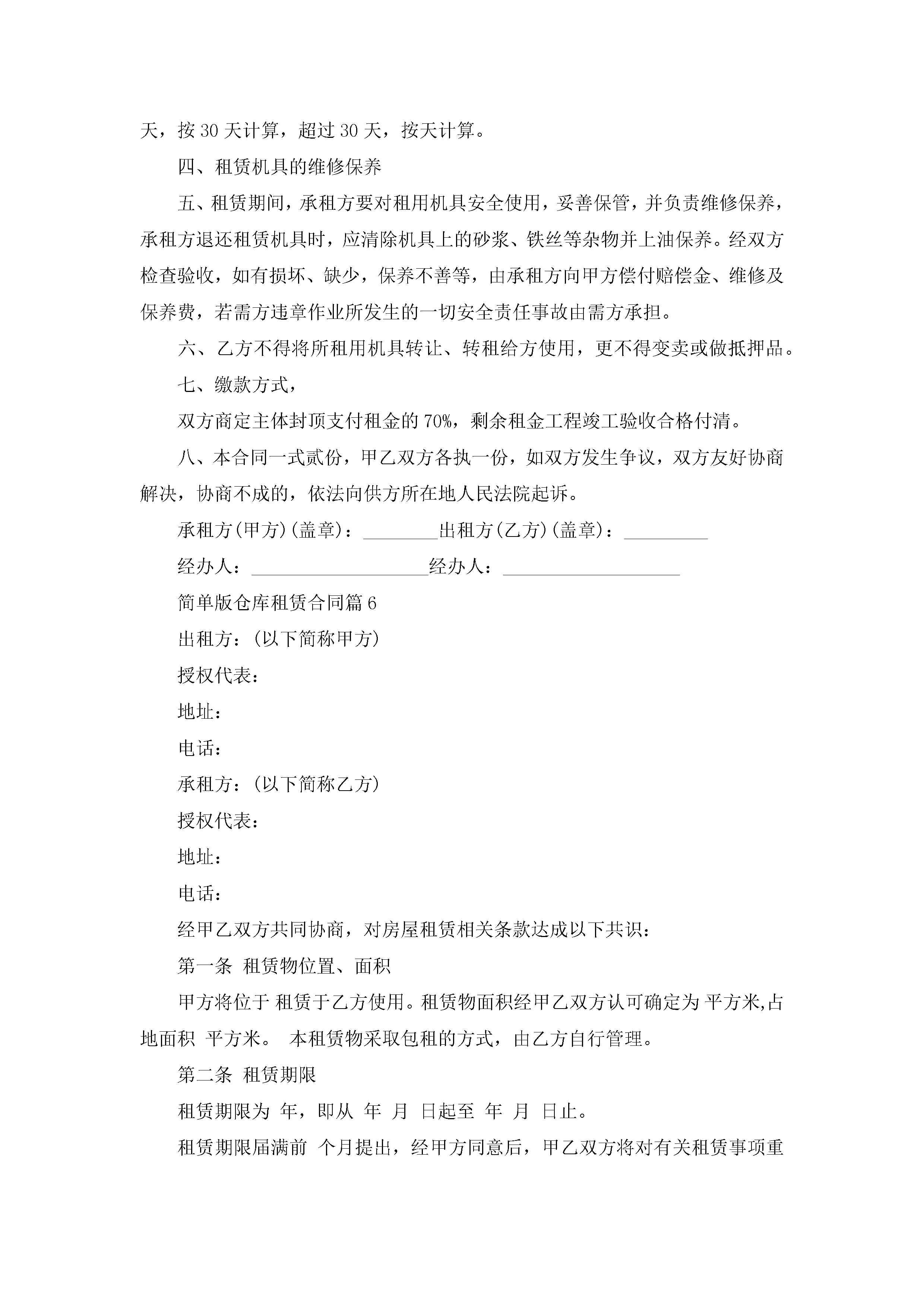 简单版仓库租赁合同范文jugei3月23日 01:37发布关注190 简单版仓库租赁合同范文此内容为付费资源,请付费后查看¥10.9 单篇文档限时特惠¥15个人会员开通企业会员开通立即下载无需登陆!可直接快捷下载单个模板付费资源© 版权声明THE ENDWord模板# 实用文档# 实用模板# 合同模板# 合同范本 如有问题,可点击最底部“联系我们”联系客服 分享QQ空间微博QQ好友海报分享复制链接收藏