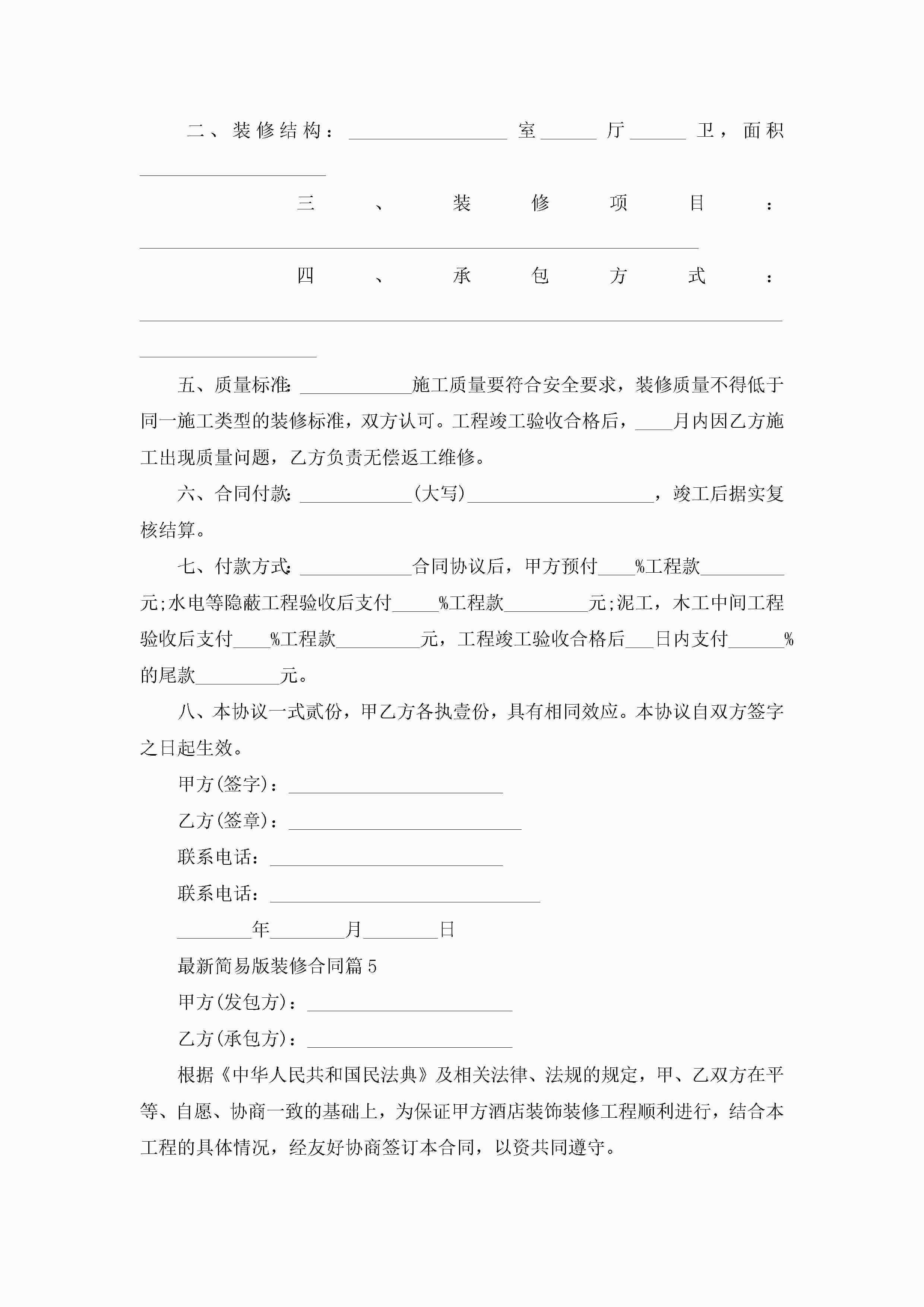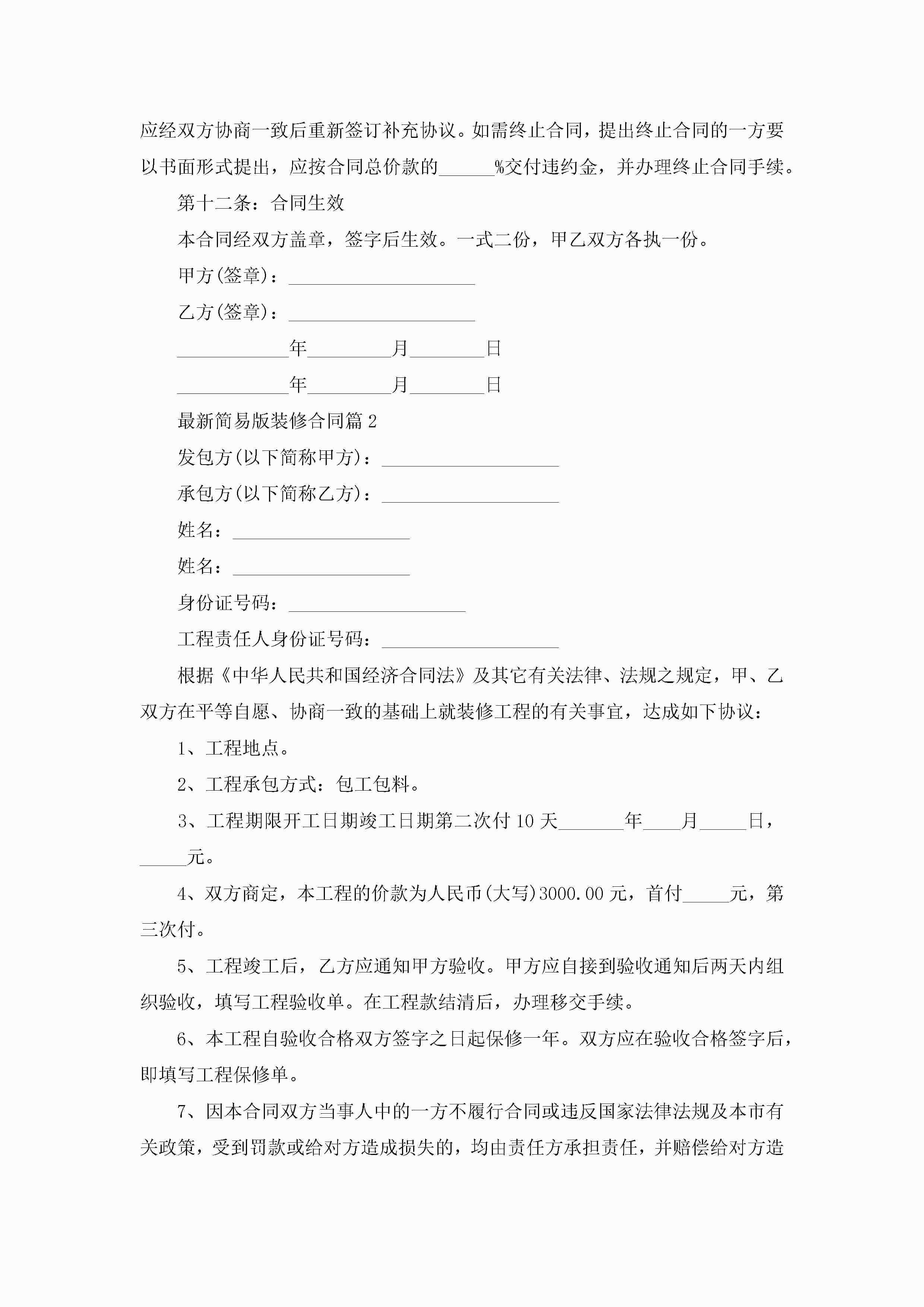最新简易版装修合同范文jugei3月23日 01:37发布关注184 最新简易版装修合同范文此内容为付费资源,请付费后查看¥10.9 单篇文档限时特惠¥15个人会员开通企业会员开通立即下载无需登陆!可直接快捷下载单个模板付费资源© 版权声明THE ENDWord模板# 实用文档# 实用模板# 合同模板# 合同范本 如有问题,可点击最底部“联系我们”联系客服 分享QQ空间微博QQ好友海报分享复制链接收藏