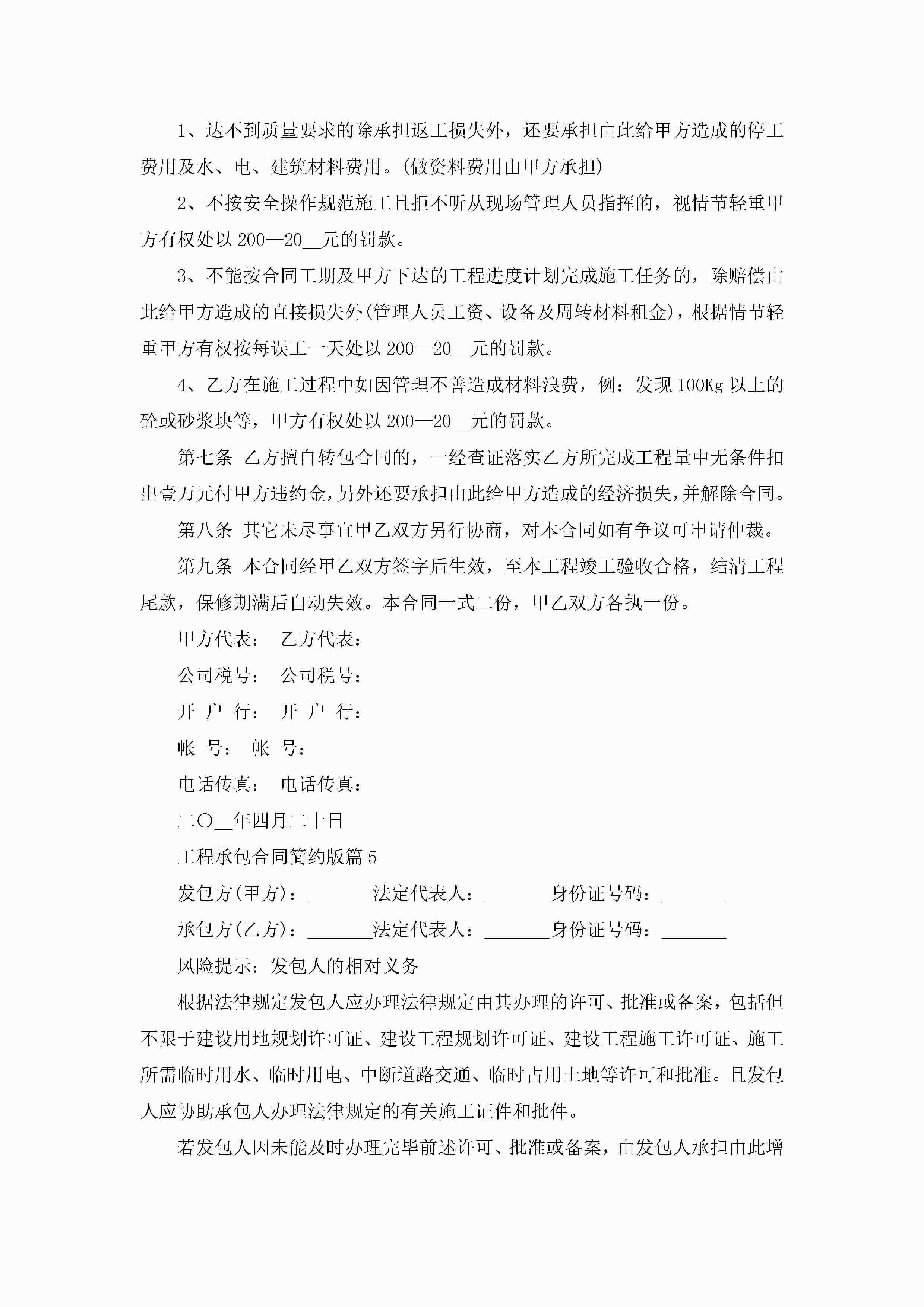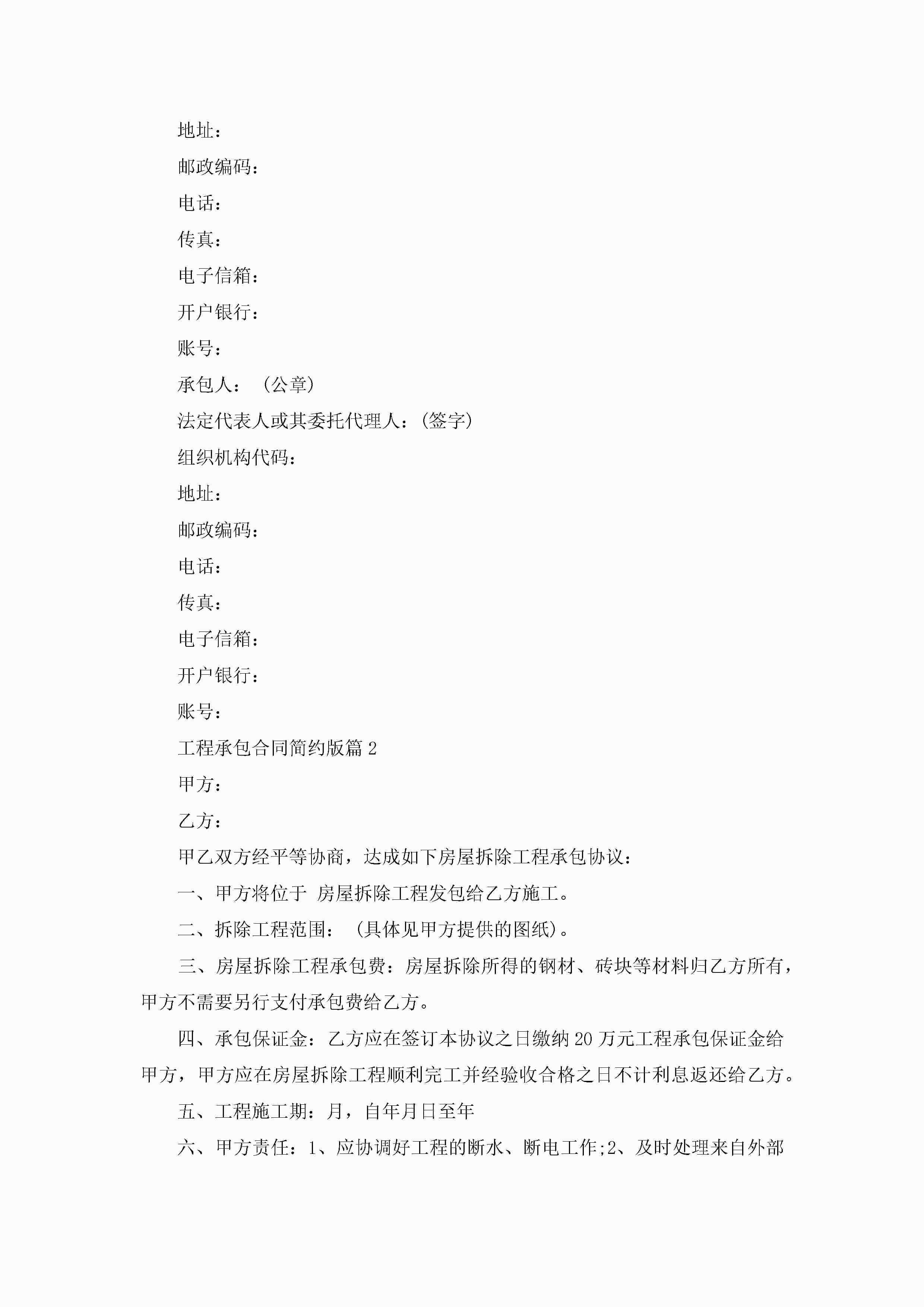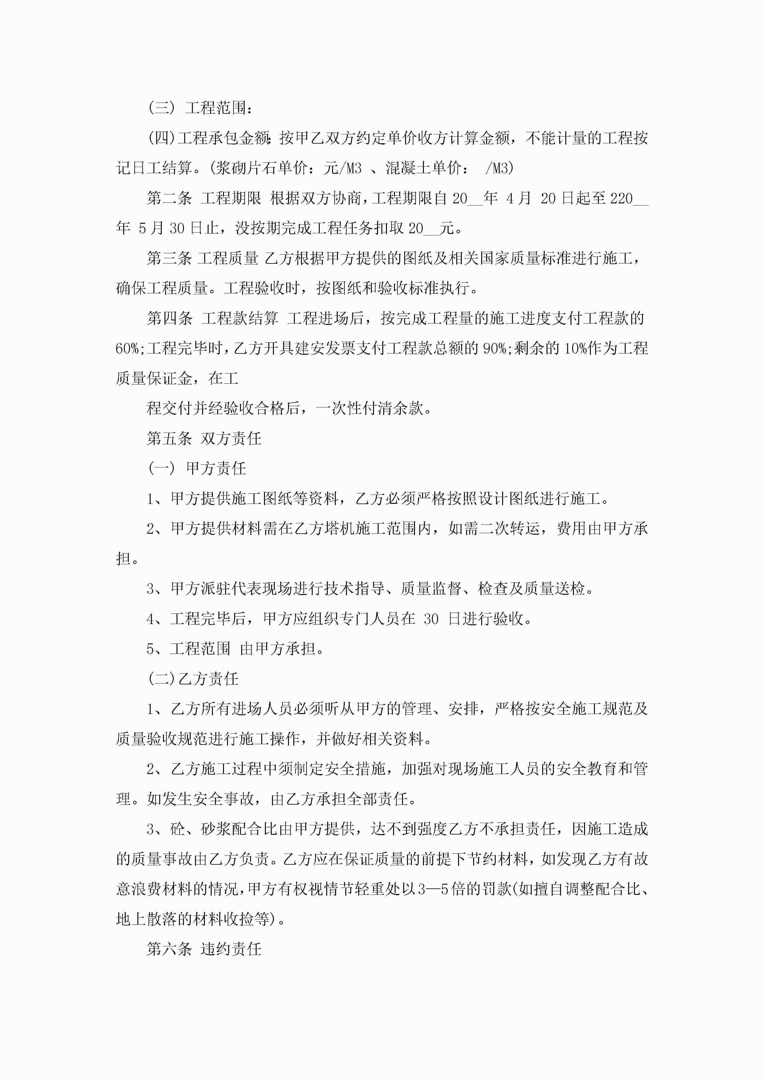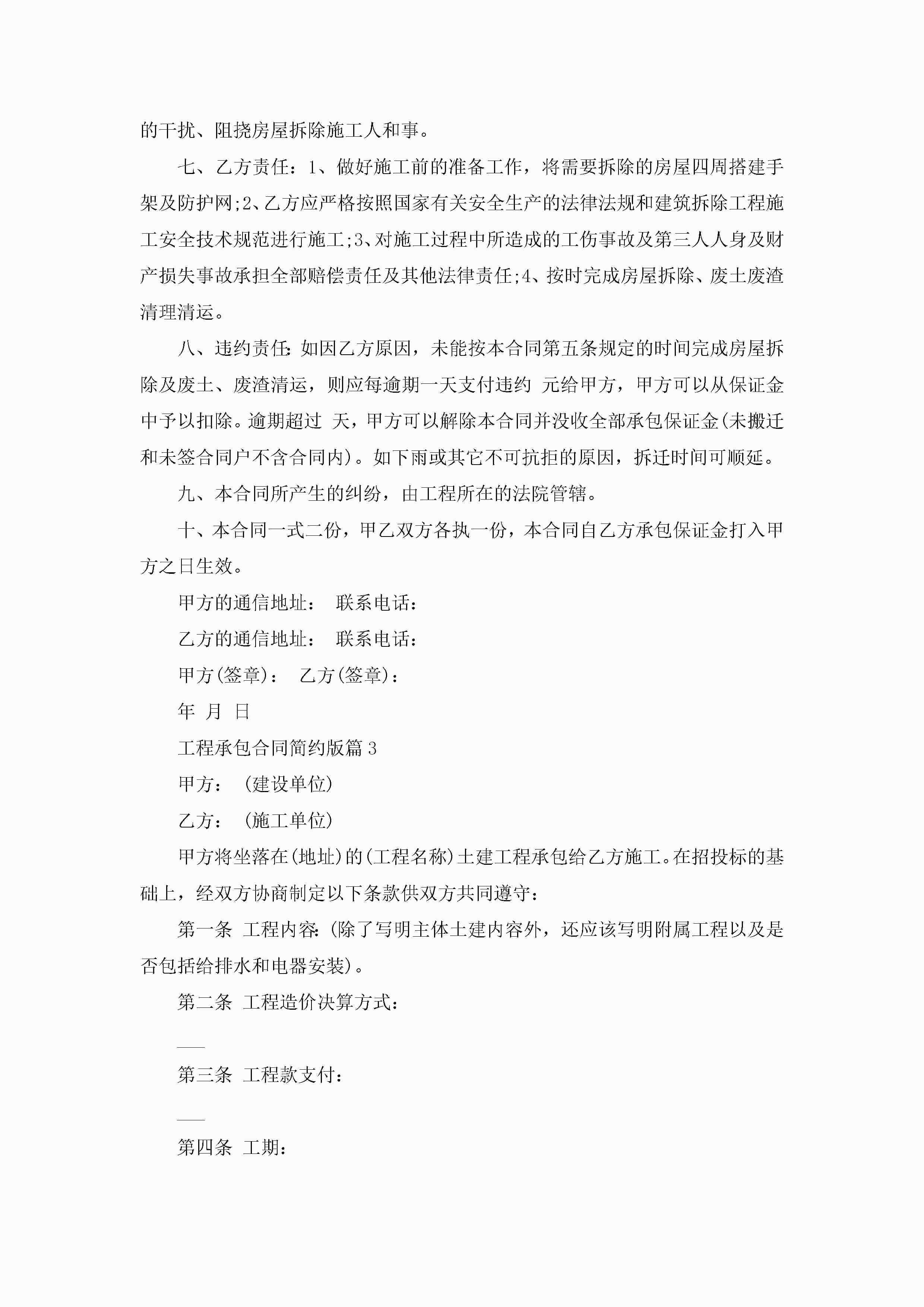 工程承包合同范文简约版jugei3月23日 01:37发布关注367 工程承包合同范文简约版此内容为付费资源,请付费后查看¥10.9 单篇文档限时特惠¥15个人会员开通企业会员开通立即下载无需登陆!可直接快捷下载单个模板付费资源© 版权声明THE ENDWord模板# 实用文档# 实用模板# 合同模板# 合同范本 如有问题,可点击最底部“联系我们”联系客服 分享QQ空间微博QQ好友海报分享复制链接收藏