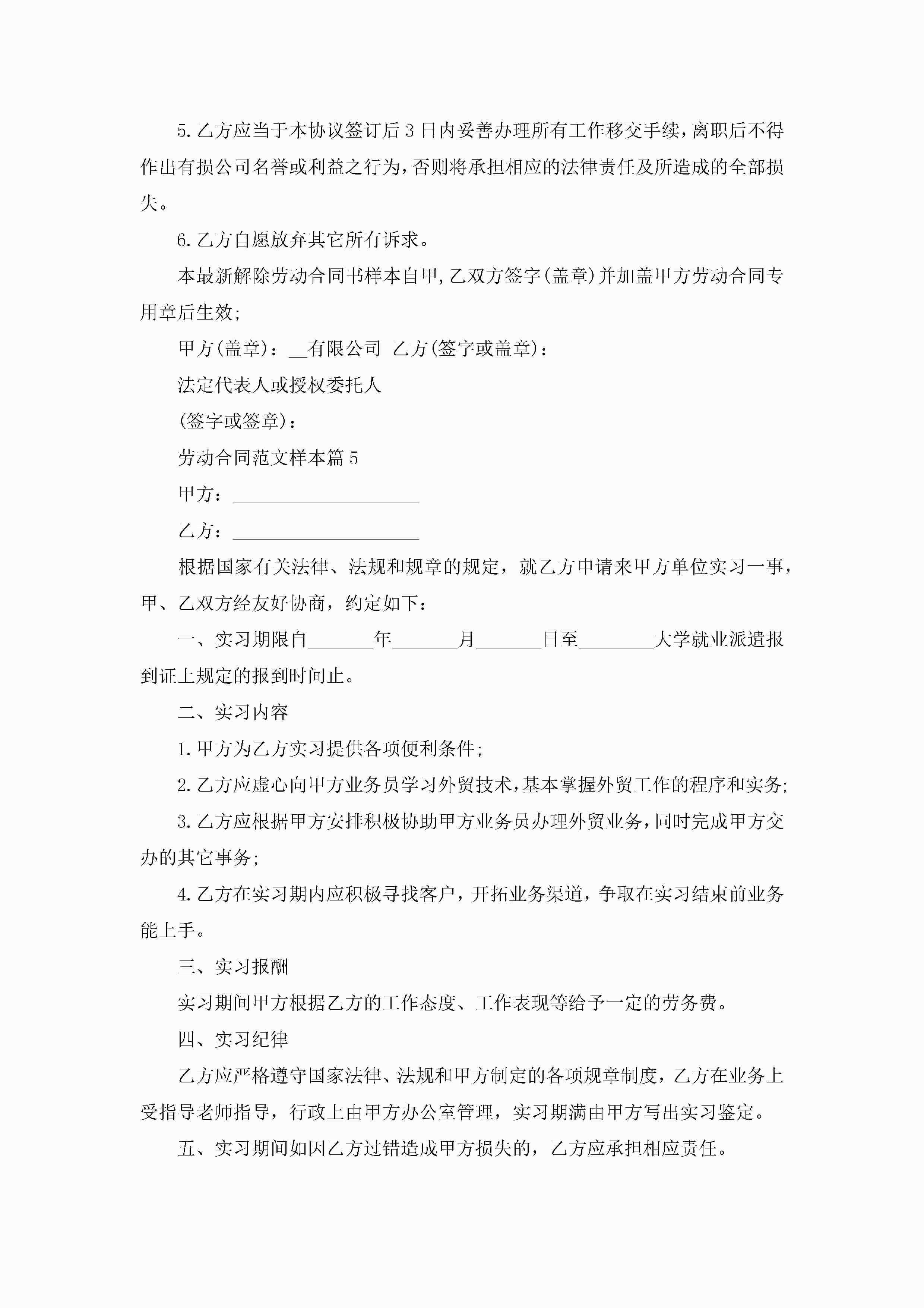 劳动合同最新范文样本jugei3月23日 01:37发布关注207 劳动合同最新范文样本此内容为付费资源,请付费后查看¥10.9 单篇文档限时特惠¥15个人会员开通企业会员开通立即下载无需登陆!可直接快捷下载单个模板付费资源© 版权声明THE ENDWord模板# 实用文档# 实用模板# 合同模板# 合同范本 如有问题,可点击最底部“联系我们”联系客服 分享QQ空间微博QQ好友海报分享复制链接收藏
