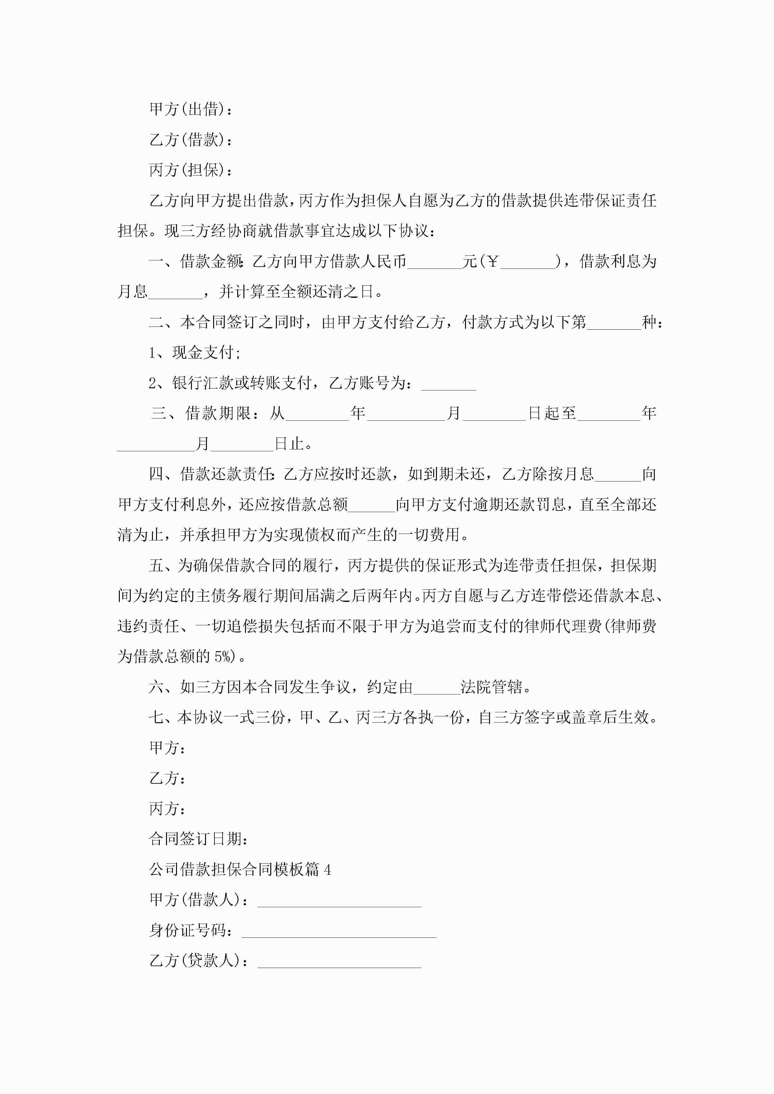 公司借款担保合同范文模板jugei3月23日 01:37发布关注191 公司借款担保合同范文模板此内容为付费资源,请付费后查看¥10.9 单篇文档限时特惠¥15个人会员开通企业会员开通立即下载无需登陆!可直接快捷下载单个模板付费资源© 版权声明THE ENDWord模板# 实用文档# 实用模板# 合同模板# 合同范本 如有问题,可点击最底部“联系我们”联系客服 分享QQ空间微博QQ好友海报分享复制链接收藏