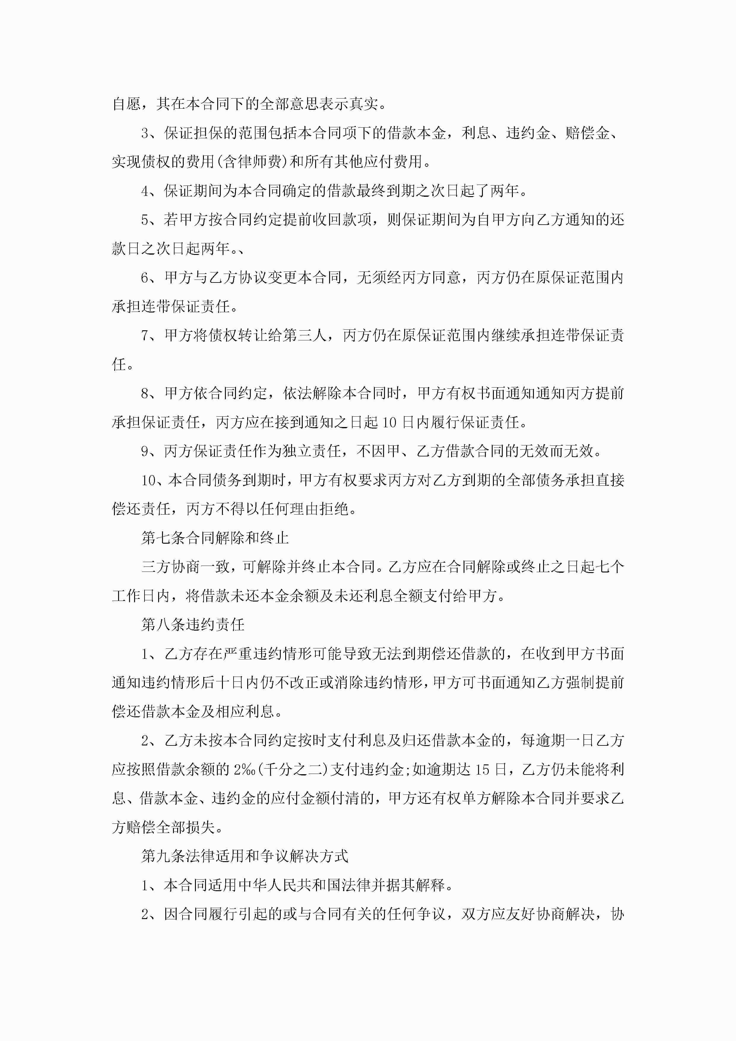 借款担保合同范文模板jugei3月23日 01:37发布关注195 借款担保合同范文模板此内容为付费资源,请付费后查看¥10.9 单篇文档限时特惠¥15个人会员开通企业会员开通立即下载无需登陆!可直接快捷下载单个模板付费资源© 版权声明THE ENDWord模板# 实用文档# 实用模板# 合同模板# 合同范本 如有问题,可点击最底部“联系我们”联系客服 分享QQ空间微博QQ好友海报分享复制链接收藏