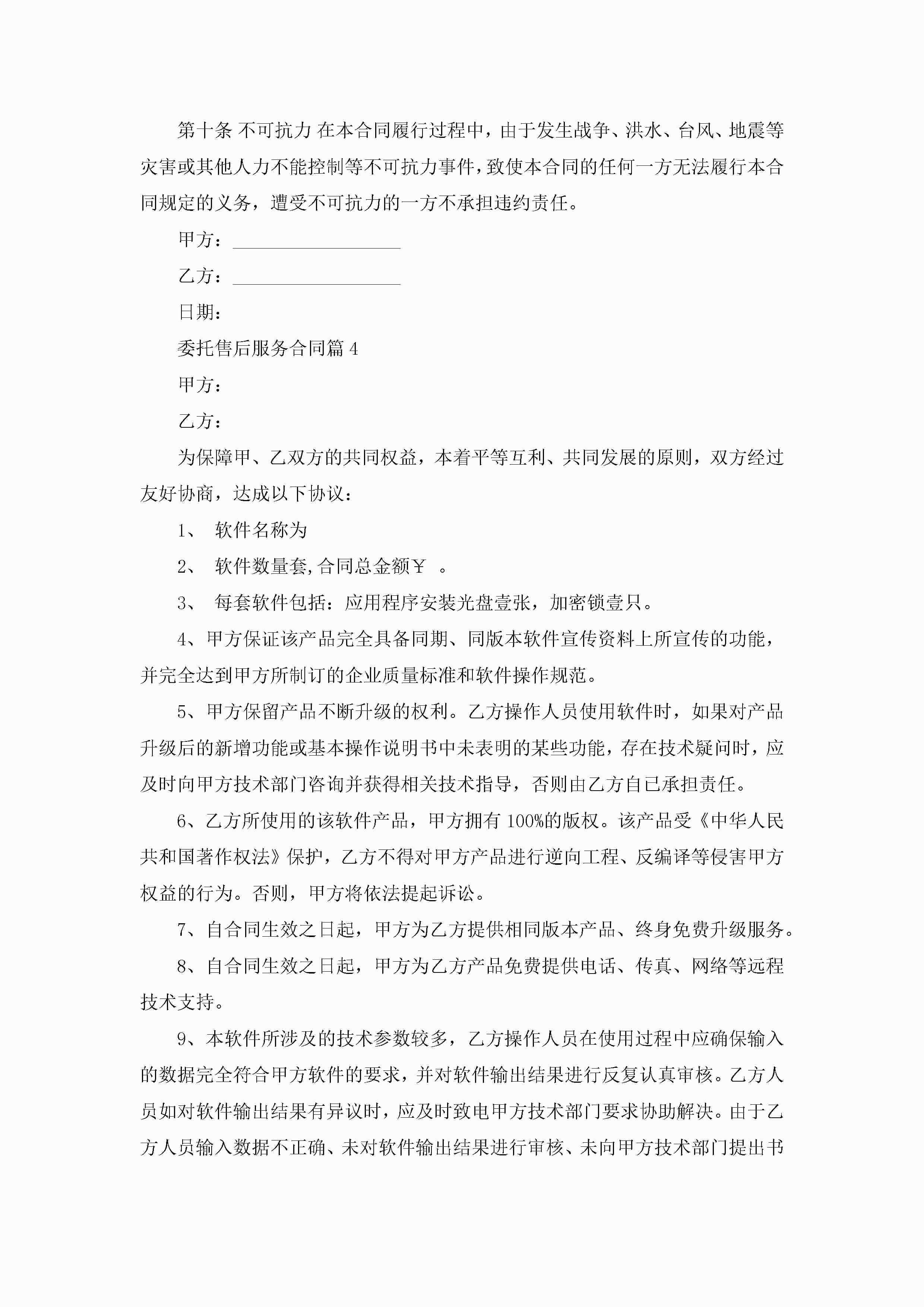 委托售后服务合同范文jugei3月23日 01:37发布关注194 委托售后服务合同范文此内容为付费资源,请付费后查看¥10.9 单篇文档限时特惠¥15个人会员开通企业会员开通立即下载无需登陆!可直接快捷下载单个模板付费资源© 版权声明THE ENDWord模板# 实用文档# 实用模板# 合同模板# 合同范本 如有问题,可点击最底部“联系我们”联系客服 分享QQ空间微博QQ好友海报分享复制链接收藏